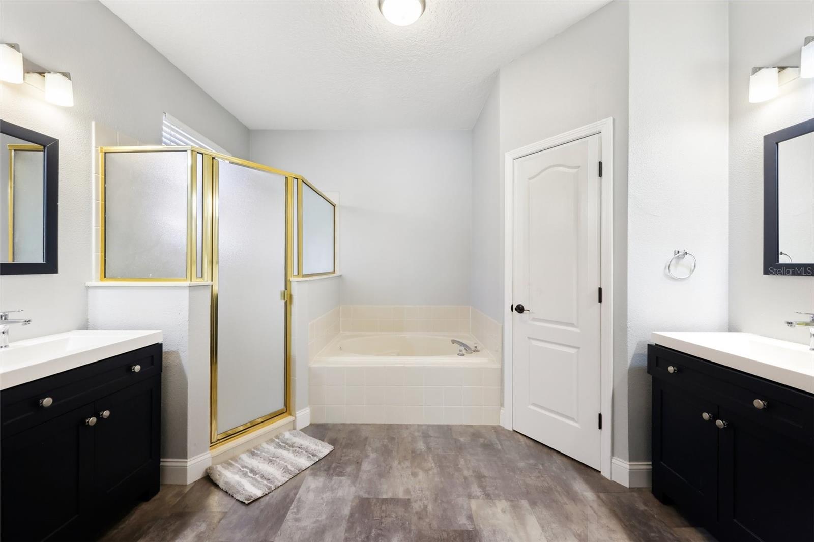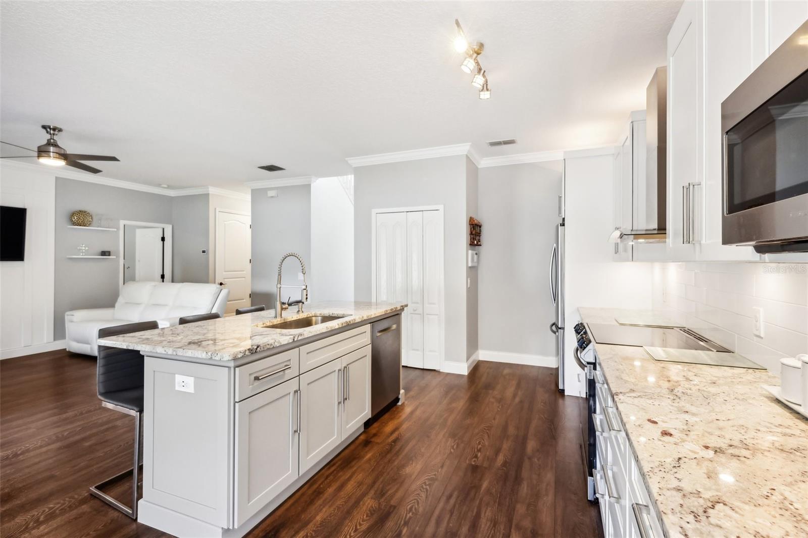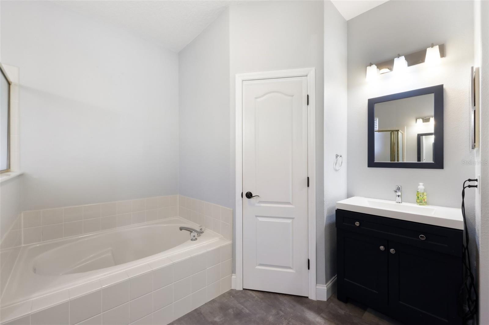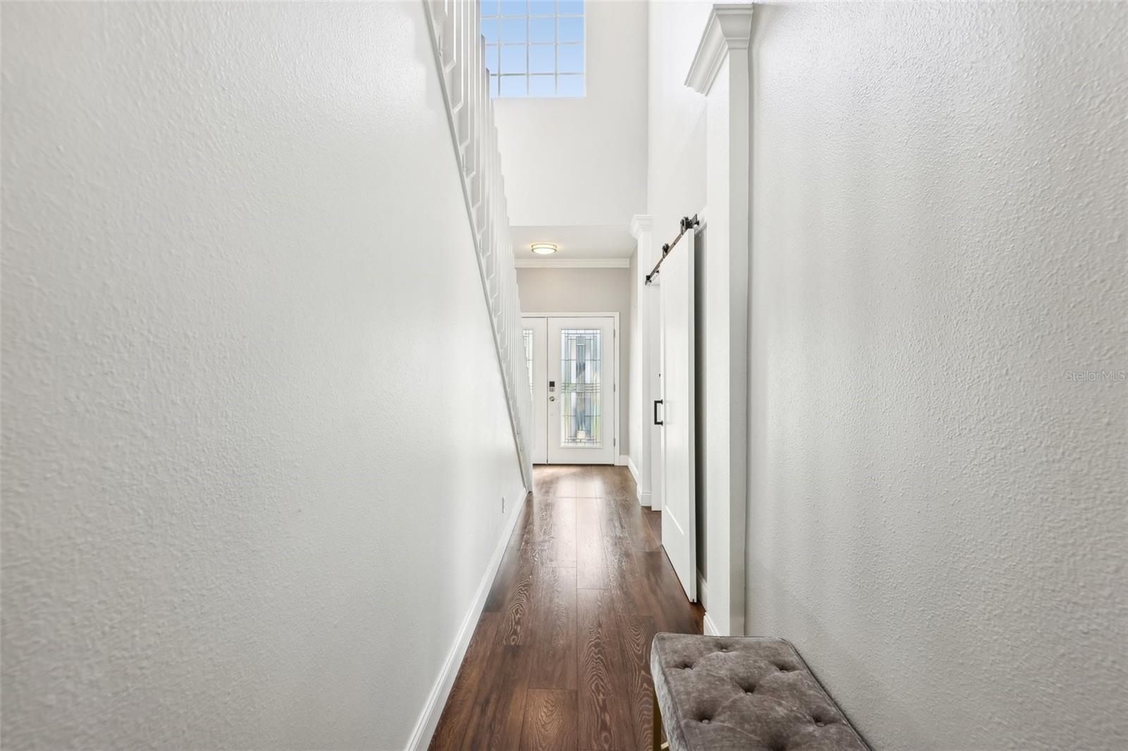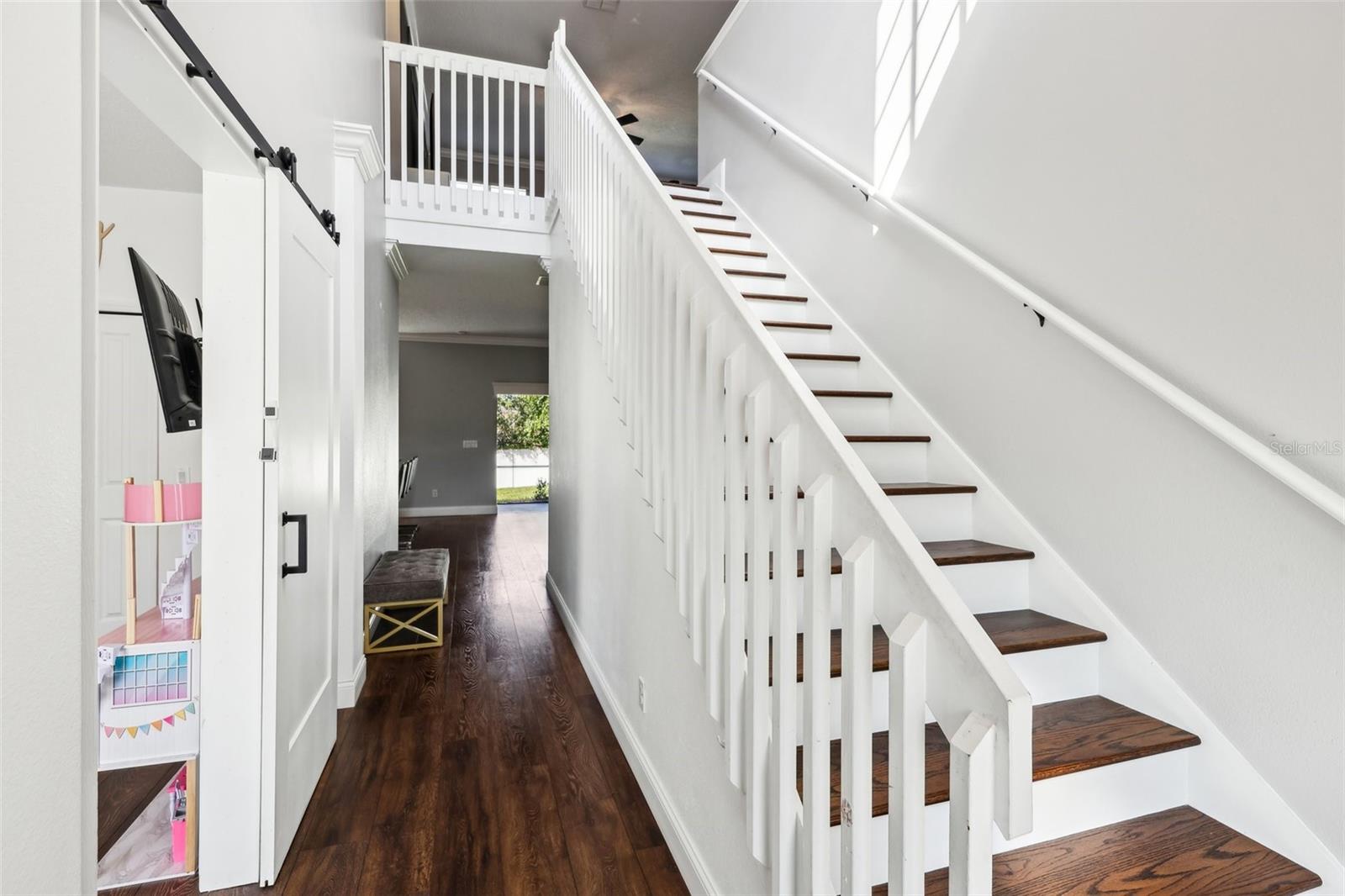Walking distance from Bentley Elementary and Mike Kirby park as well as close proximity to SR 417 and 1-4 make this house in a gated community a great place to call home. Calabria Cove, is a. beautifully updated 5 BEDROOM 3.5 BATHROOM home offers the perfect blend of style, warmth, and modern living. Step through the grand double doors and into a space where soaring ceilings, crown molding, and an abundance of natural light create an inviting atmosphere that feels like home from the moment you arrive. The thoughtfully designed layout offers flexibility to suit your lifestyle. The formal dining room is a versatile space—whether you envision it as a home office, a second downstairs bedroom, or a cozy flex area, the choice is yours. Just down the hall, an additional large bedroom with a chic barn door provides even more options for a guest suite, creative studio, or media room. At the heart of the home, renovated chef’s kitchen is a true showstopper—boasting brand-new cabinets, sleek countertops, a spacious island, stainless steel appliances, and a charming breakfast nook that’s perfect for casual dining or morning coffee. The main-level primary suite is a private retreat, featuring a spa-like ensuite with dual vanities, a soaking tub, and a separate shower for the ultimate in comfort. Upstairs, a spacious second family room offers a perfect hangout or study space, complete with a built-in niche ideal for a home office or homework station. Three additional generously sized bedrooms and a full bath complete the upper level, making it easy to accommodate family and guests alike. This home has been thoughtfully refreshed throughout—new light fixtures, fans, and bathroom vanities (all replaced within the last two years), updated laminate flooring, custom wood steps on the staircase, and fresh exterior paint that gives the home a crisp, modern look. The roof is only three years old, and all toilets have been updated, ensuring peace of mind for years to come. Outside, enjoy the screened lanai and fully fenced backyard—your own private retreat with no rear neighbors. Whether it’s quiet mornings, afternoon gatherings, or laid-back weekends, this outdoor space was designed for relaxation. With only 37 homes, Calabria Cove offers a rare boutique community vibe, all while keeping you close to top-rated schools, shopping, dining, and major highways for an easy commute. Don’t miss your chance to experience the lifestyle this home offers—schedule your private tour