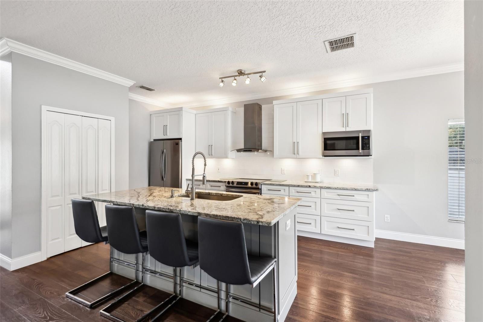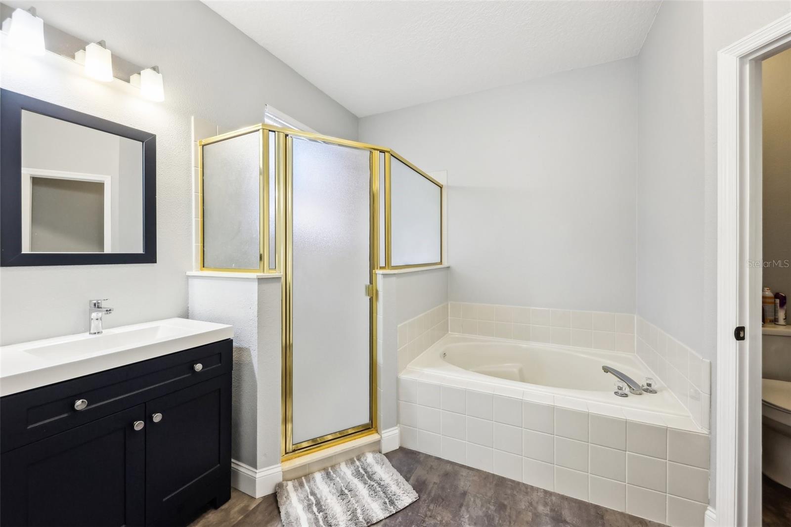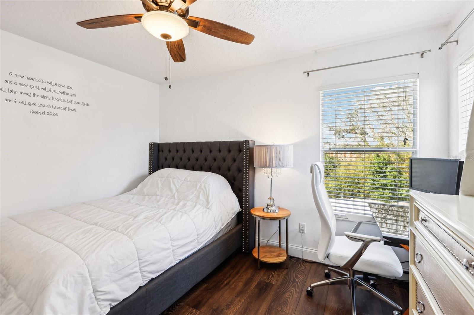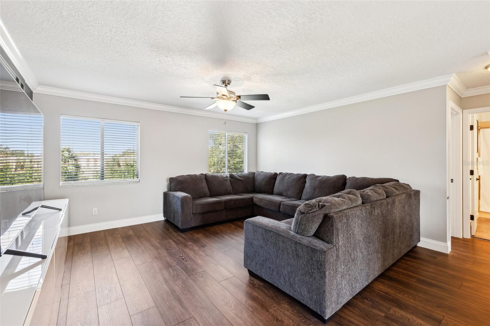 Walking distance from Bentley Elementary and Mike Kirby park as well as close proximity to SR 417 and 1-4 make this house in a gated community a great place to call home. Calabria Cove, is a. beautifully updated 5 BEDROOM 3.5 BATHROOM home offers the perfect blend of style, warmth, and modern living. Step through the grand double doors and into a space where soaring ceilings, crown molding, and an abundance of natural light create an inviting atmosphere that feels like home from the moment you arrive. The thoughtfully designed layout offers flexibility to suit your lifestyle. The formal dining room is a versatile space—whether you envision it as a home office, a second downstairs bedroom, or a cozy flex area, the choice is yours. Just down the hall, an additional large bedroom with a chic barn door provides even more options for a guest suite, creative studio, or media room. At the heart of the home, renovated chef’s kitchen is a true showstopper—boasting brand-new cabinets, sleek countertops, a spacious island, stainless steel appliances, and a charming breakfast nook that’s perfect for casual dining or morning coffee. The main-level primary suite is a private retreat, featuring a spa-like ensuite with dual vanities, a soaking tub, and a separate shower for the ultimate in comfort. Upstairs, a spacious second family room offers a perfect hangout or study space, complete with a built-in niche ideal for a home office or homework station. Three additional generously sized bedrooms and a full bath complete the upper level, making it easy to accommodate family and guests alike. This home has been thoughtfully refreshed throughout—new light fixtures, fans, and bathroom vanities (all replaced within the last two years), updated laminate flooring, custom wood steps on the staircase, and fresh exterior paint that gives the home a crisp, modern look. The roof is only three years old, and all toilets have been updated, ensuring peace of mind for years to come. Outside, enjoy the screened lanai and fully fenced backyard—your own private retreat with no rear neighbors. Whether it’s quiet mornings, afternoon gatherings, or laid-back weekends, this outdoor space was designed for relaxation. With only 37 homes, Calabria Cove offers a rare boutique community vibe, all while keeping you close to top-rated schools, shopping, dining, and major highways for an easy commute. Don’t miss your chance to experience the lifestyle this home offers—schedule your private tour