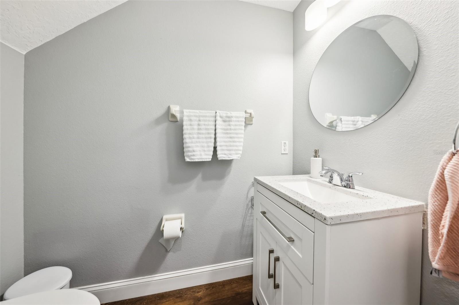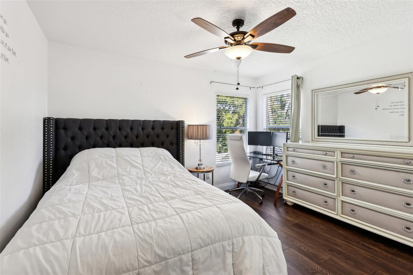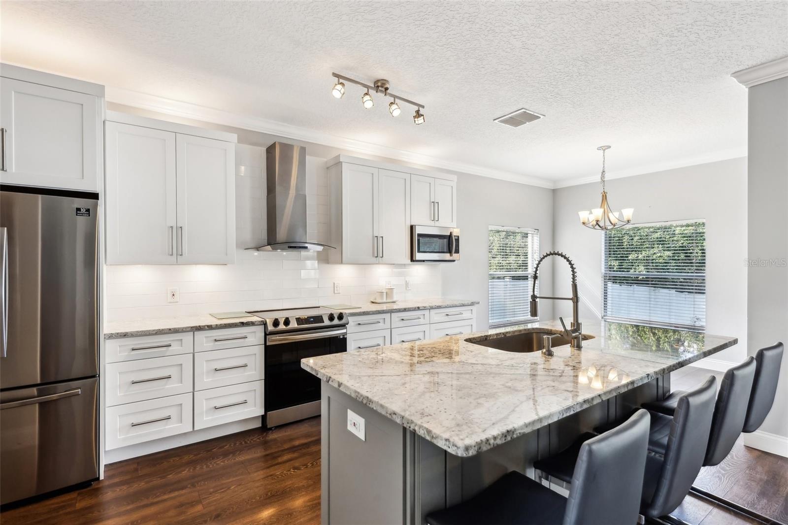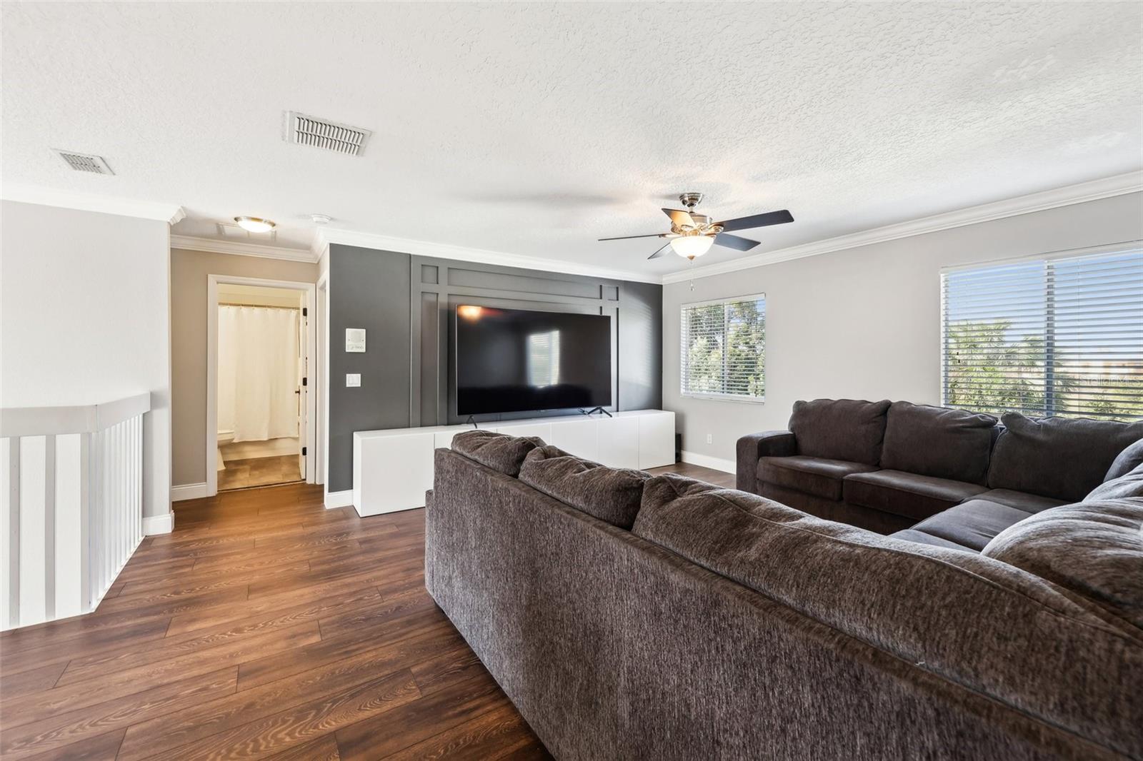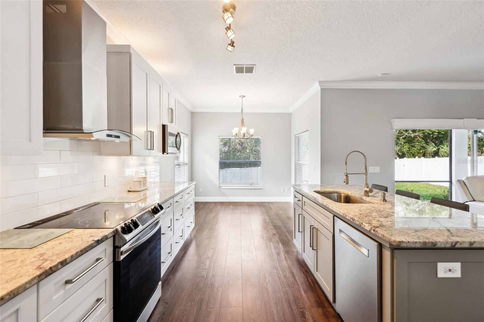 Walking distance from Bentley Elementary and Mike Kirby park as well as close proximity to SR 417 and 1-4 make this house in a gated community a great place to call home. Calabria Cove, is a. beautifully updated 5 BEDROOM 3.5 BATHROOM home offers the perfect blend of style, warmth, and modern living. Step through the grand double doors and into a space where soaring ceilings, crown molding, and an abundance of natural light create an inviting atmosphere that feels like home from the moment you arrive. The thoughtfully designed layout offers flexibility to suit your lifestyle. The formal dining room is a versatile space—whether you envision it as a home office, a second downstairs bedroom, or a cozy flex area, the choice is yours. Just down the hall, an additional large bedroom with a chic barn door provides even more options for a guest suite, creative studio, or media room. At the heart of the home, renovated chef’s kitchen is a true showstopper—boasting brand-new cabinets, sleek countertops, a spacious island, stainless steel appliances, and a charming breakfast nook that’s perfect for casual dining or morning coffee. The main-level primary suite is a private retreat, featuring a spa-like ensuite with dual vanities, a soaking tub, and a separate shower for the ultimate in comfort. Upstairs, a spacious second family room offers a perfect hangout or study space, complete with a built-in niche ideal for a home office or homework station. Three additional generously sized bedrooms and a full bath complete the upper level, making it easy to accommodate family and guests alike. This home has been thoughtfully refreshed throughout—new light fixtures, fans, and bathroom vanities (all replaced within the last two years), updated laminate flooring, custom wood steps on the staircase, and fresh exterior paint that gives the home a crisp, modern look. The roof is only three years old, and all toilets have been updated, ensuring peace of mind for years to come. Outside, enjoy the screened lanai and fully fenced backyard—your own private retreat with no rear neighbors. Whether it’s quiet mornings, afternoon gatherings, or laid-back weekends, this outdoor space was designed for relaxation. With only 37 homes, Calabria Cove offers a rare boutique community vibe, all while keeping you close to top-rated schools, shopping, dining, and major highways for an easy commute. Don’t miss your chance to experience the lifestyle this home offers—schedule your private tour