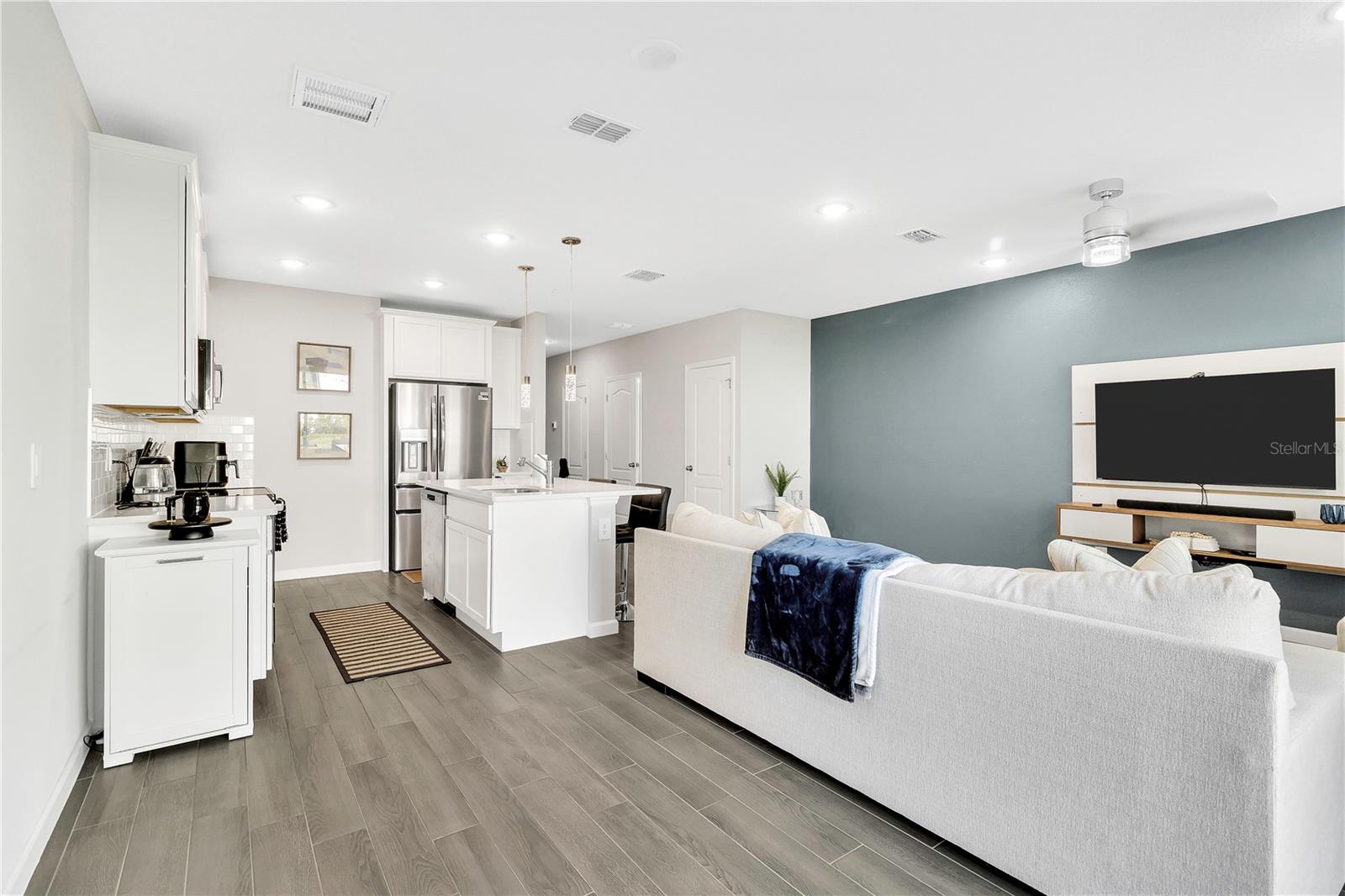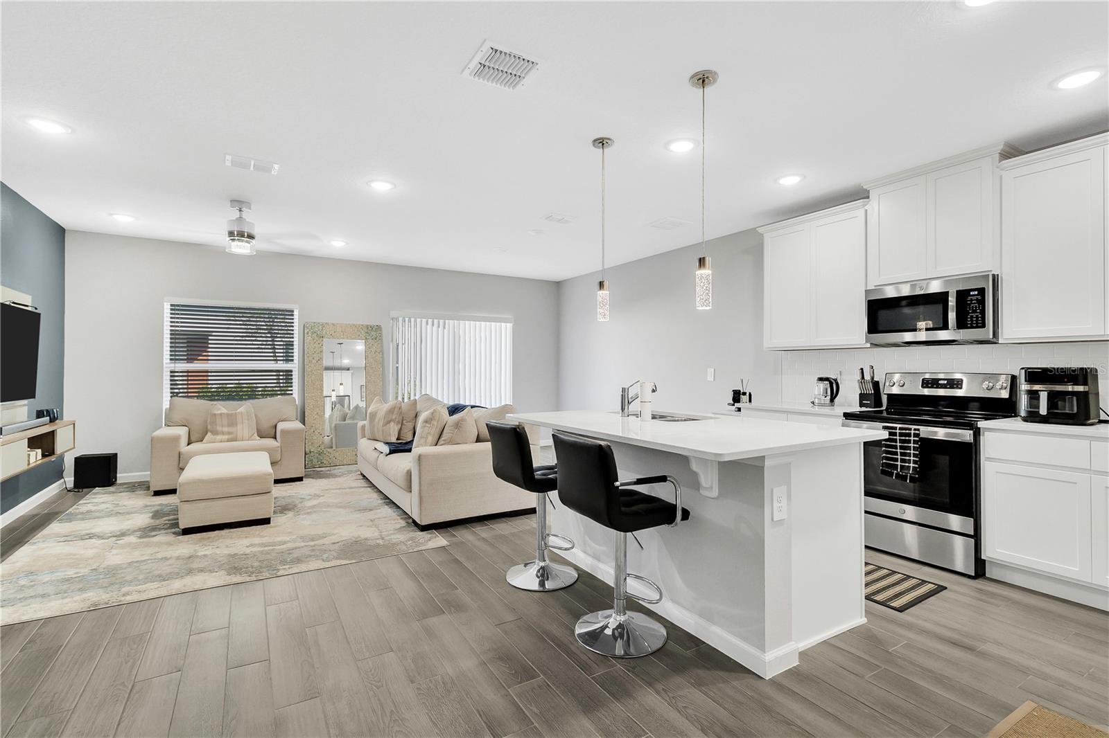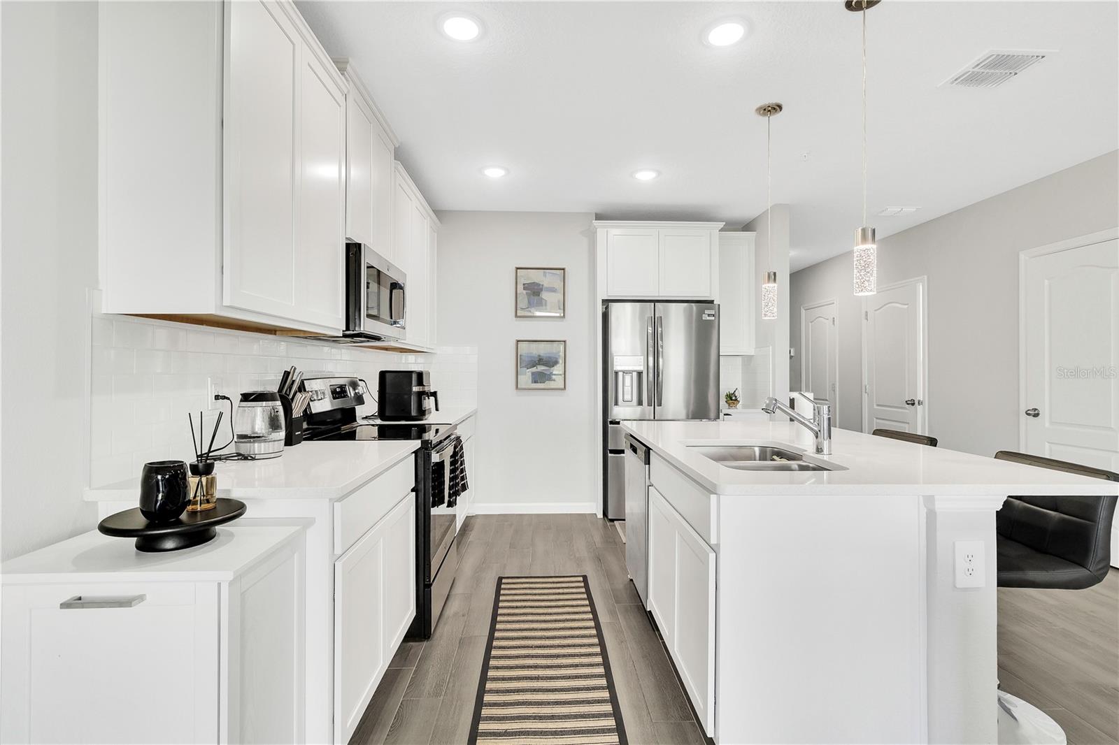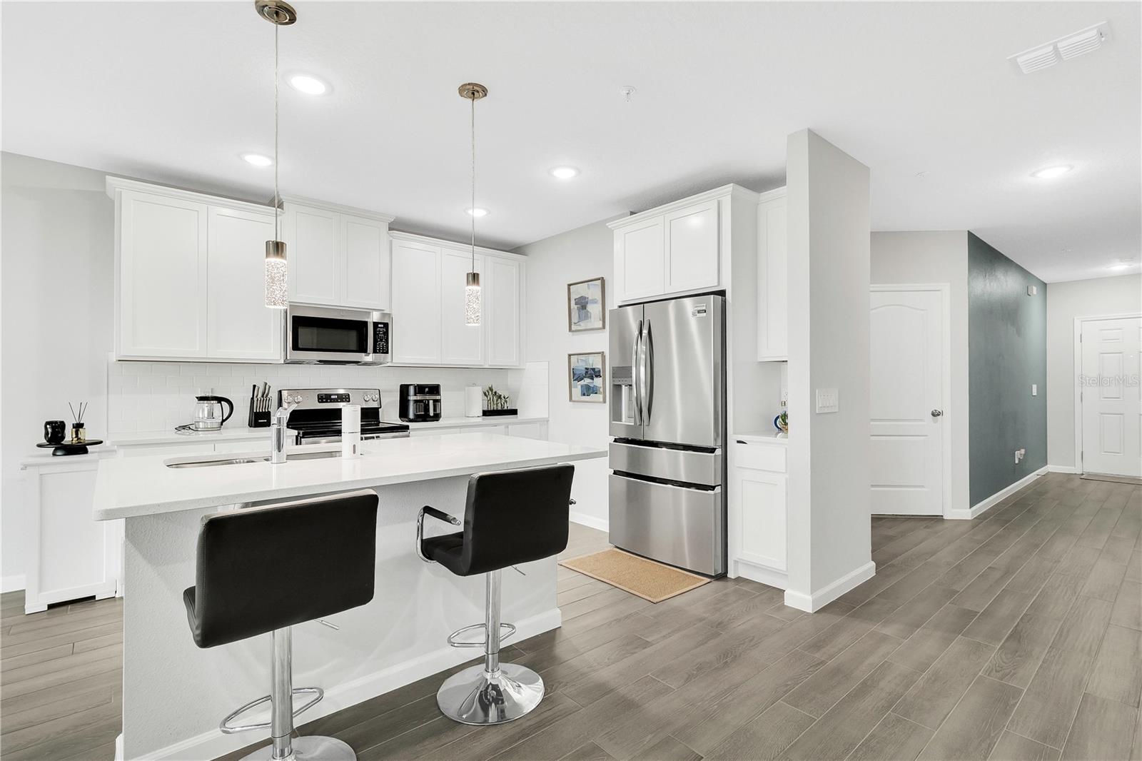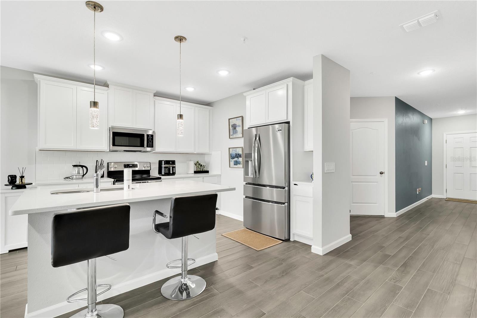 Welcome to this contemporary and stylish 3-bedroom, 2.5-bathroom townhome, built in 2023! Thoughtfully designed with a spacious and open-concept layout, this home offers both functionality and charm. The heart of the home is the beautifully designed kitchen, featuring sleek quartz countertops, a large island, and custom cabinetry. The kitchen opens up to the bright and airy living space making it perfect for entertaining or interacting with family from the kitchen. There is also a 1/2 bathroom on the first floor for guests and easy access. All of the bedrooms, including a spacious loft, are on the second floor. The loft easily serves as a second living area, office/gym, or playroom. The owner’s suite is a private retreat, complete with a walk-in closet and a beautiful ensuite bathroom. The split-bedroom layout ensures extra privacy for family and guests. The single-car garage and extended 2-car driveway provides parking for up to three vehicles. Located in a gated and private community with LOW HOA FEES, this home offers access to fantastic amenities, including a resort style pool, clubhouse, walking and biking trails, and a dog park. Location! Location! Location! This community is conveniently located minutes from the Historic Downtown Sanford, tons of dining and shopping options, a marina, walking trails, great schools & hospitals, and easy access to major highways for a quick commute to Downtown Orlando, Sanford Airport & More! Call for more information and to schedule your appointment today!