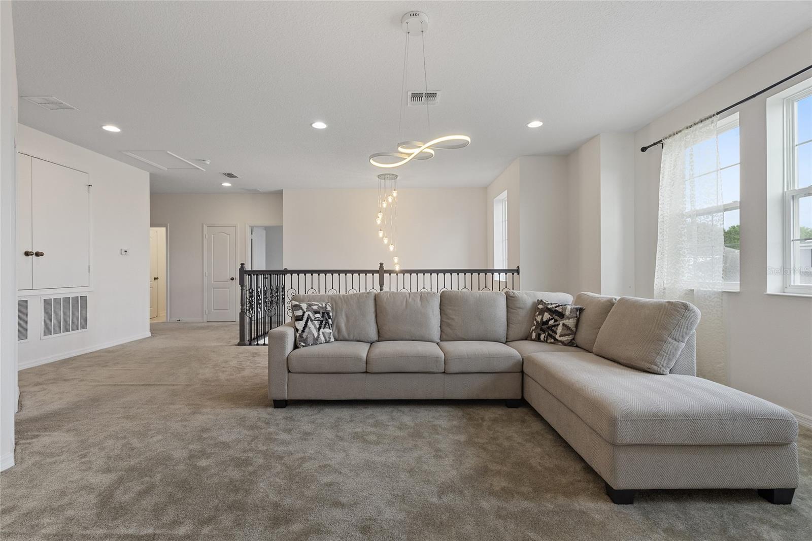 PRICE IMPROVEMENT!!! Stunning 5-Bedroom, 5-Bathroom Home in the Gated Community of Cadence Park – Sanford, FL Welcome to this exceptional 5-bedroom, 5-bathroom home located in the highly sought-after gated community of Cadence Park in Sanford, FL. With a spacious 3,781 sq. ft. of living space, this residence combines luxury, functionality, and style for the perfect family home. As you step through the front door, you are immediately greeted by soaring high ceilings, an elegant iron staircase leading to the second floor, and a stunning upgraded accent wall to your left. To your right, you'll find the formal dining room, ideal for hosting dinner parties or family gatherings. The open-concept design flows seamlessly, with an additional accent wall in the main living space that adds to the home’s modern flair. The fully upgraded kitchen is a chef's dream, complete with luxurious quartz countertops, a spacious breakfast bar, built-in high-end appliances such as a built-in oven and microwave, custom cabinetry, and a fresh backsplash. This beautiful kitchen opens to the living room, allowing you to cook and entertain with ease. A convenient butler's pantry offers additional storage and opens directly to the formal dining area. For added convenience, the first floor features a generously sized bedroom with an en-suite bathroom, which includes granite countertops, double sinks, and both a standing shower and a soaking tub. There’s also a guest bathroom on the first floor, making this home perfect for gatherings and large events. Step outside onto the covered lanai, where you can enjoy a morning coffee or unwind while watching a beautiful Florida sunset. Upstairs, the expansive master suite awaits, boasting double doors and a spa-like bathroom with double sinks, a standing shower, and a soaking tub – perfect for relaxing after a long day. The second floor also offers a large loft area that can be transformed into a home office, play area, or additional entertainment space. Adjacent to the loft is another bedroom with its own private en-suite bathroom, ideal for guests or elders who value their privacy. This home features upgraded luxury tile flooring throughout the main living areas on the first floor, along with thousands of dollars spent on beautiful light fixtures that enhance the overall ambiance. With meticulous attention to detail, this move-in-ready home offers modern comforts and elegant finishes. Located in the desirable Cadence Park community with top-tier amenities and security, it is truly the perfect place to call home. Don’t miss your chance to tour this spectacular property – schedule your private showing today! Video Tour : https://youtu.be/DJ5CjRHCJjI