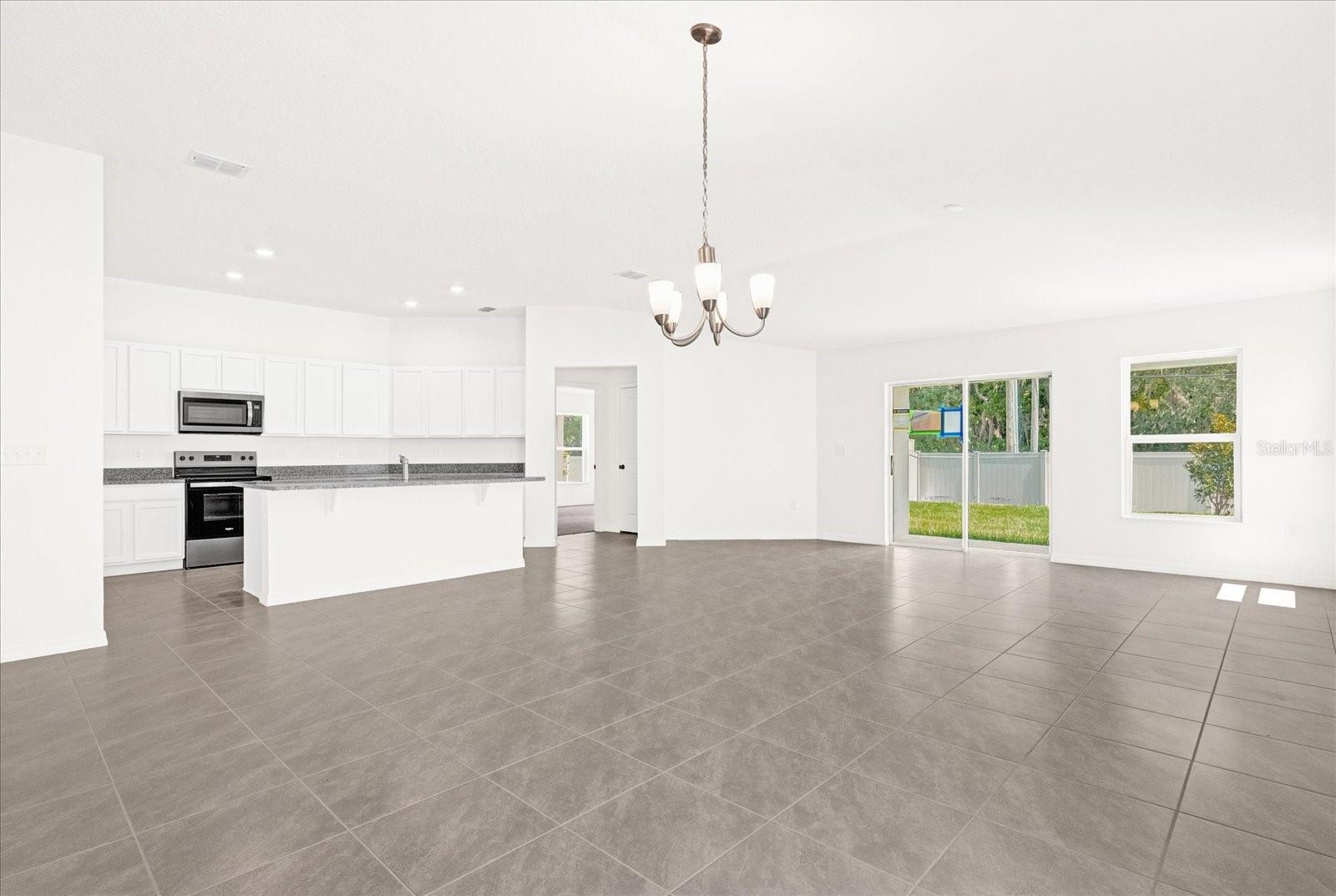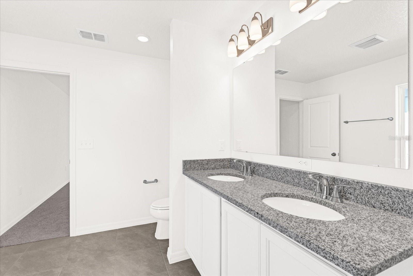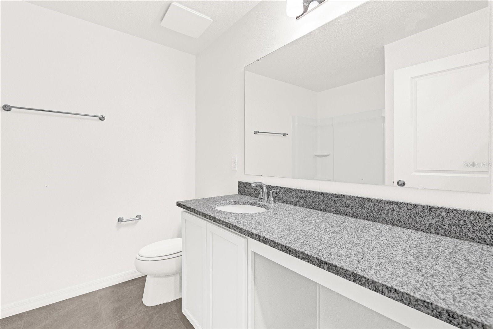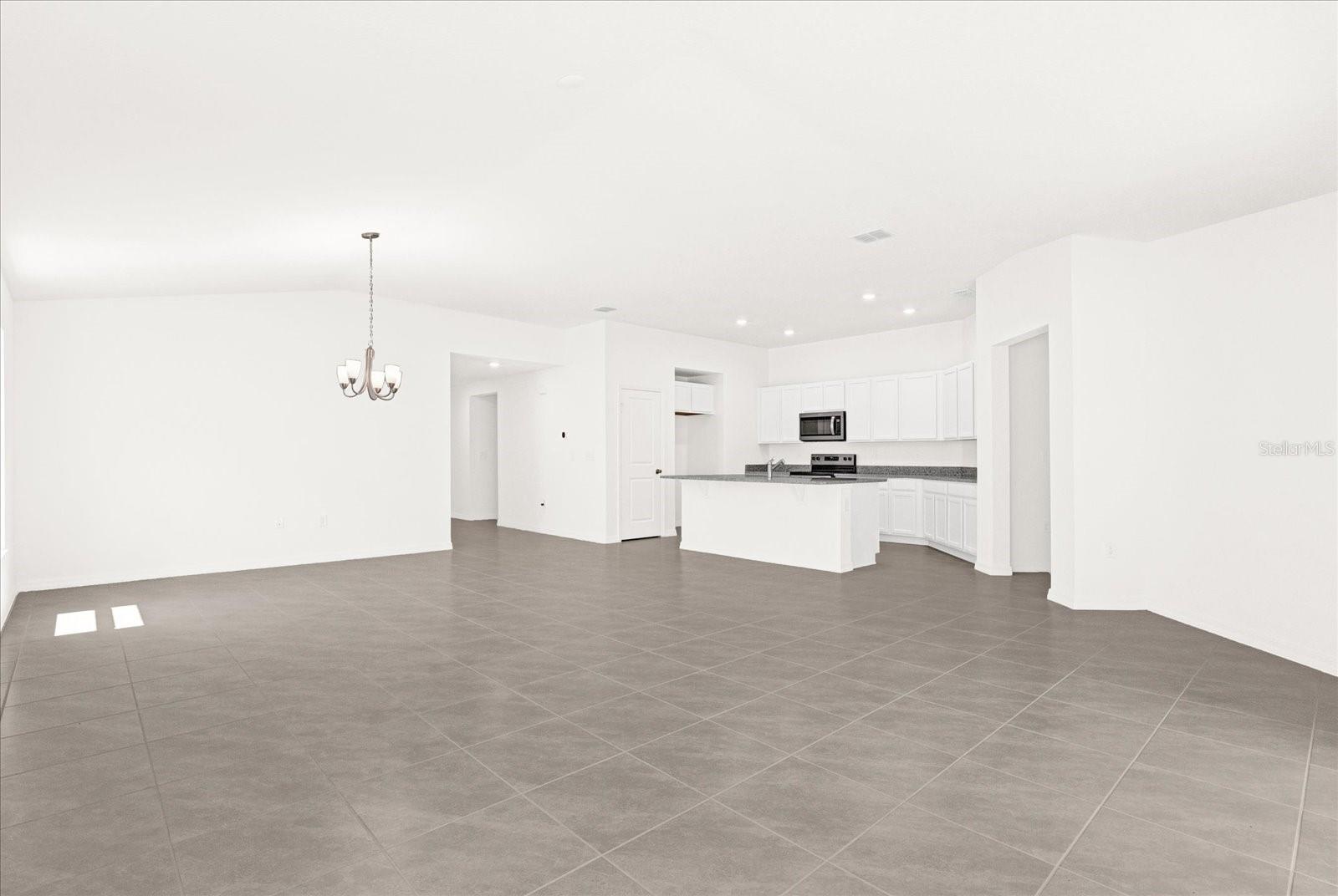 This beautiful, single-story home showcases an open floor plan with tile flooring and a spacious great room that features volume ceilings. Enjoy the convenience of a dedicated laundry room. The modern kitchen boasts 36-in. cabinets, granite countertops, an island, a Moen® faucet, a Kohler® sink and Whirlpool® appliances. Relax in the primary suite, which includes a walk-in closet and connecting bath that offers a linen closet, dual-sink vanity and walk-in shower with tile surround. Relax after a long day on the extended covered back patio.