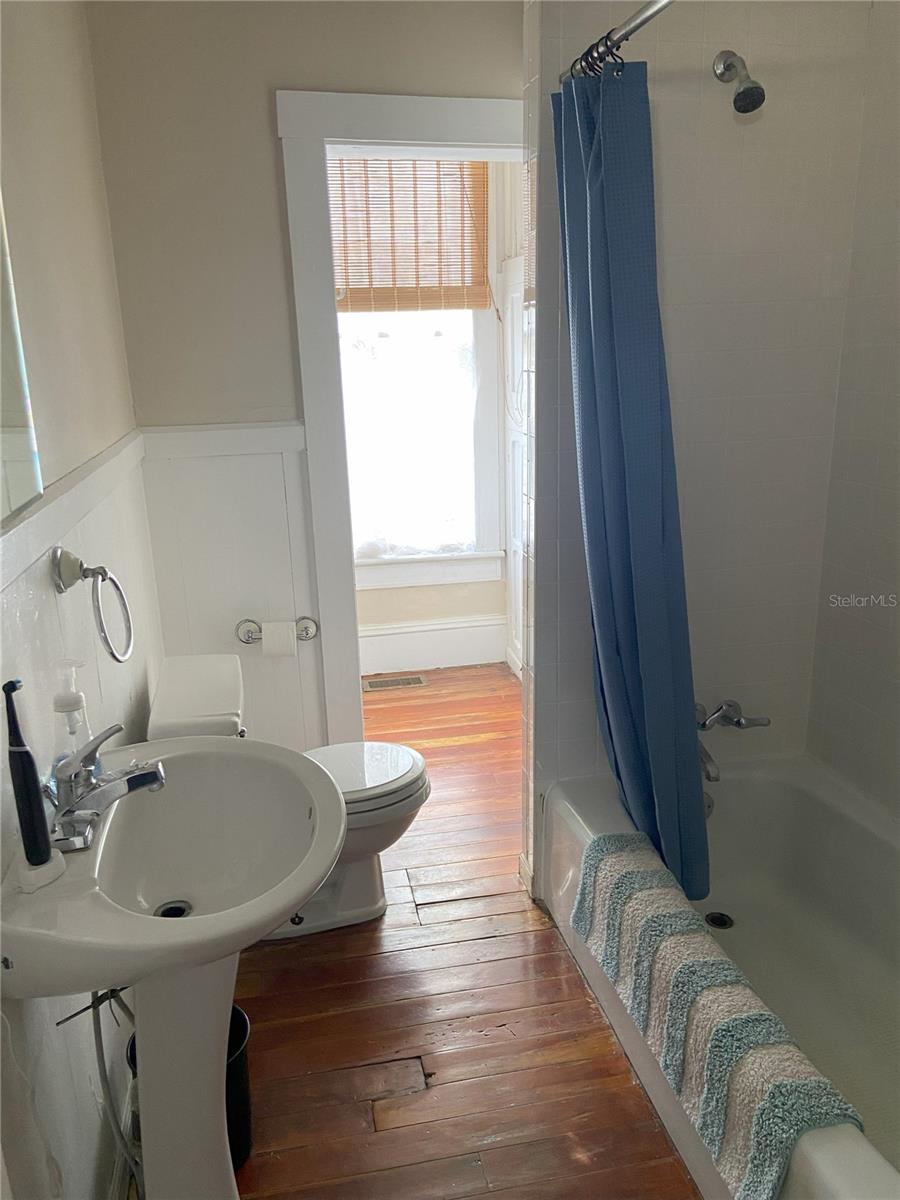 Beautiful and unique property, right in the heart of Historic Downtown Sanford, which is walkable or can be accessed in a golfcart. BRAND NEW ROOF - March 2025. With wooden floors throughout, and charming original features, this home is classic and full of character. The large front porch provides a wonderful frontage and an inviting hallway leads to the first floor. There is a first floor master bedroom, currently used as an office, with a built in closet and jack and jill style en-suite. The first floor also has a living room, and dining room, with a huge under stairs pantry and storage area. The kitchen is at the back of the house and leads out to a small, easy to maintain, fully fenced back yard. Upstairs are 3 further bedrooms and a full bathroom.