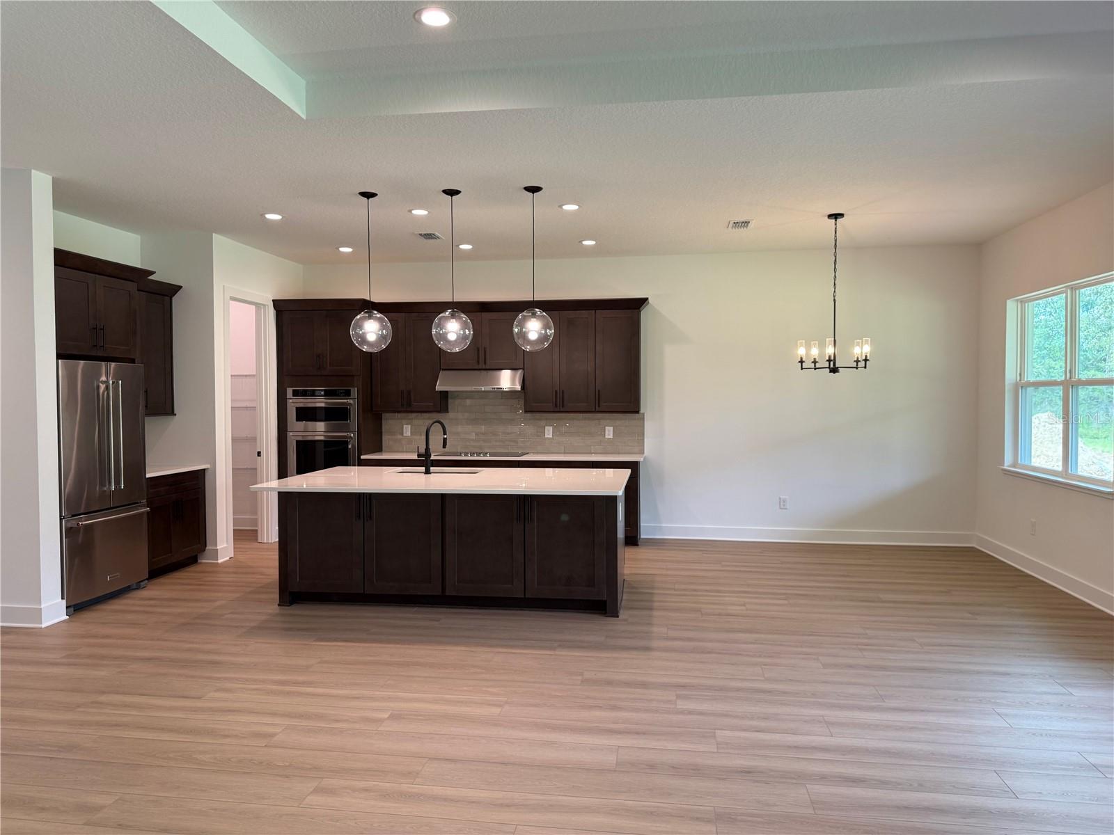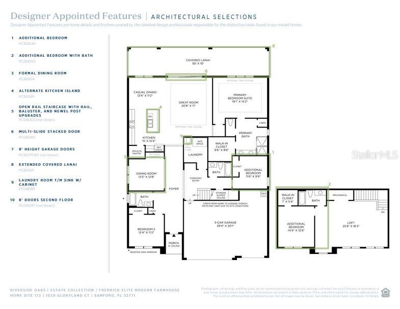 The Fredrick Elite offers an elegant balance of gathering spaces and private retreats. A charming foyer and gallery lead to a beautiful great room with tray ceiling, and just beyond is an expansive covered lanai. The well-appointed kitchen overlooks a bright casual dining area and is highlighted by a large center island with a breakfast bar, plenty of counter and cabinet space, and an ample pantry. Enhancing the gorgeous primary bedroom suite is a sizable walk-in closet and a splendid primary bath with a dual-sink vanity, a large luxe shower, linen storage, and a private water closet. Secondary bedrooms feature large closets and a shared hall bath. On the second floor is a generous loft with tons of windows, bedroom with walk in closet and full bathroom. Additional highlights include a spacious flex room, convenient first-floor powder room and everyday entry, easily-accessible laundry, and plenty of additional storage.