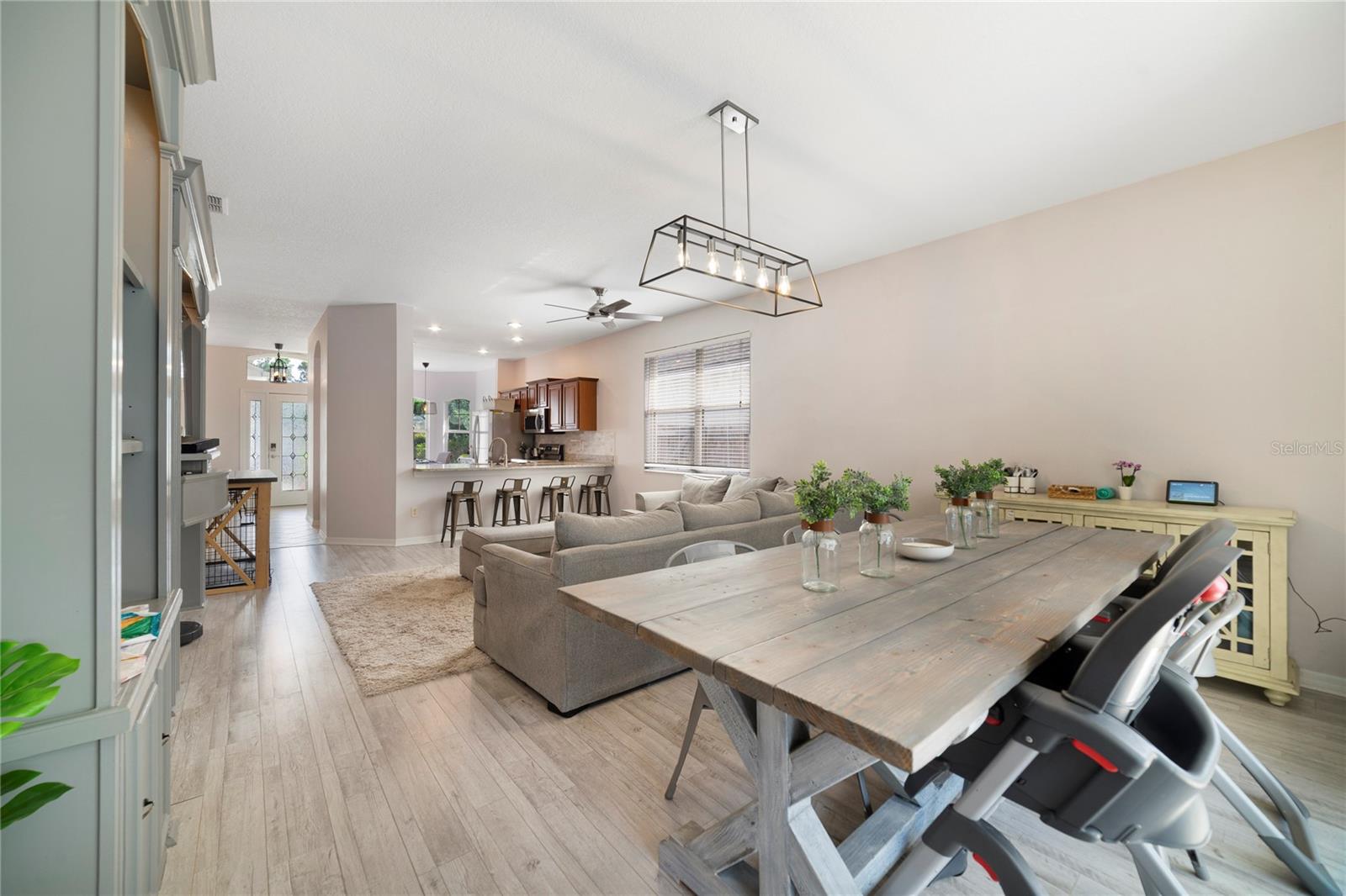 Step into luxury living in one of West Sanford’s most sought-after gated communities — Oregon Trace. This beautifully maintained former model home offers elegance, comfort, and unbeatable convenience, all in a prime location with fountain views and top-rated schools. Highlights You’ll Love Include; New Roof (2017) & New HVAC (2022), EV plug-in-ready, Luxury Vinyl Flooring throughout, Screened-in Lanai & Extended Paver Patio that is Perfect for quiet evenings or weekend BBQs, A gorgeous Custom Built-in desk and entertainment center that adds function and flair. The Open Floor Plan is Great for entertaining as well as everyday living. Granite Countertops & Stainless Steel Appliances. A chef’s dream kitchen with solid wood cabinetry and a stylish backsplash. Spacious Master Retreat with double marble sinks, a Roman-style garden tub, a large glass-enclosed shower, and dual walk-in closets. Location, Location, Location! Just 2 minutes from I-4, 417, 429, and 17-92, this home offers fast access to Seminole Towne Center, Colonial Town Park, Lake Mary’s business district (International Parkway), Lake Monroe, Sanford Marina, and Historic Downtown Sanford. Enjoy weekends strolling along the Sanford RiverWalk, dining in cozy local restaurants, exploring art galleries, or relaxing at stylish neighborhood bars. This home is more than just beautiful — it’s smart, well-located, and built for your lifestyle. Come see why this standout property in Oregon Trace is the perfect place to call home. Schedule your private tour today!