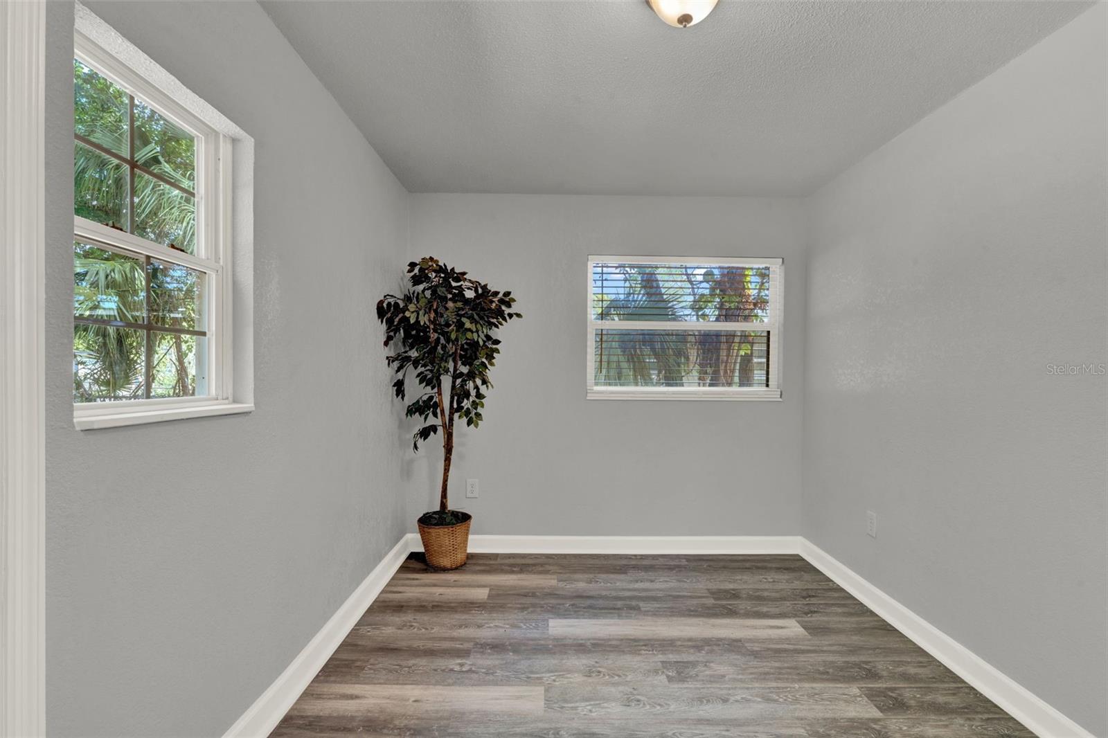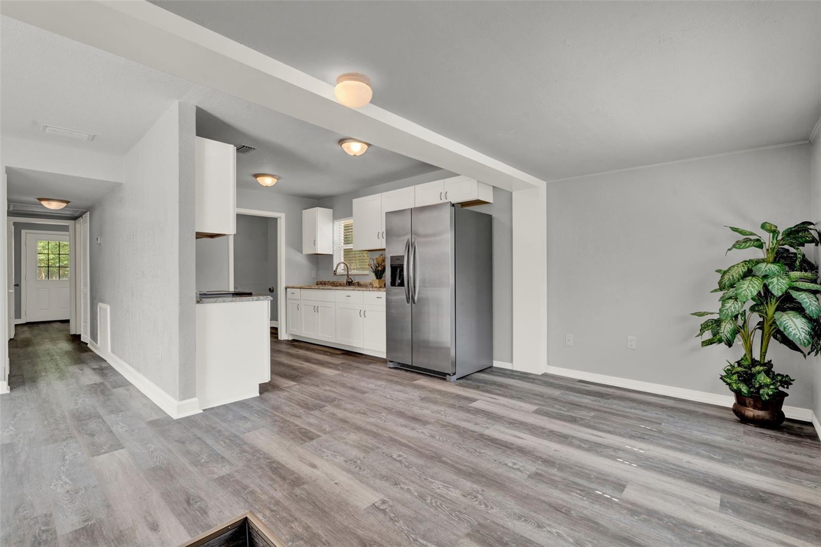 Welcome to this delightful 3 bedroom, 1 bathroom cottage, nestled in a quiet and established neighborhood with no HOA restrictions. From the moment you arrive, you’ll be captivated by the lush greenery, mature shady trees, and the welcoming curb appeal of this oversized lot—offering both privacy and space to enjoy the outdoors. Step inside and you'll be greeted by an inviting open-concept layout, thoughtfully designed to maximize space and natural light. Luxury vinyl flooring flows seamlessly throughout the entire home, creating a warm and cohesive atmosphere. The living and dining rooms are bright and airy, making it the perfect space to relax or entertain guests. At the heart of the home is a stylish and functional kitchen, featuring ample cabinetry for storage, sleek countertops, and eye-catching stainless steel appliances. Whether you're preparing weeknight dinners or hosting weekend brunch, this kitchen is equipped to handle it all with ease and style. The home offers three generously sized bedrooms, each providing flexible options to suit your lifestyle. Use one as a home office, a guest room, or a creative space—the possibilities are endless. The shared bathroom is conveniently located and features a clean, modern design. Outside, the oversized lot provides room to garden, play, or even expand in the future. Enjoy weekend barbecues under the shade of mature trees or sip your morning coffee while listening to the birds sing. With no HOA, you have the freedom to personalize your space without restrictions. Whether you're a first-time homebuyer, looking to downsize, or seeking a fantastic investment opportunity, this adorable home combines charm, functionality, and freedom. Don’t miss your chance to own this little gem with big potential, call today before it's gone!