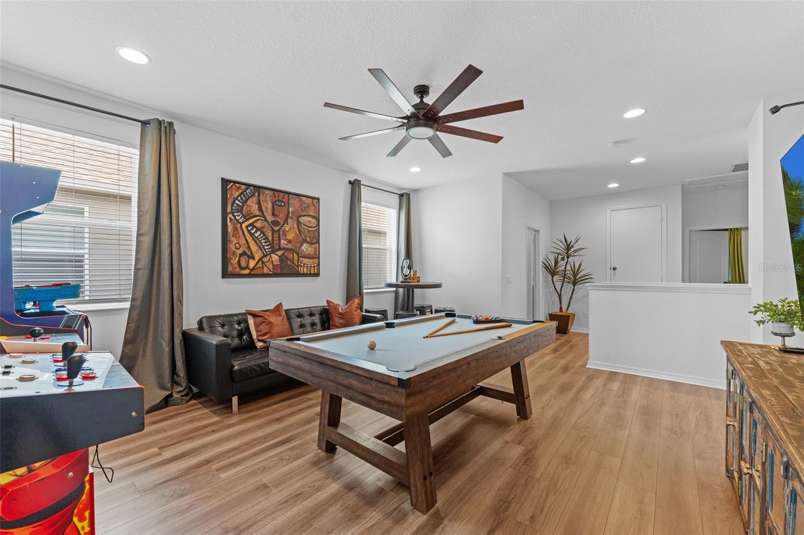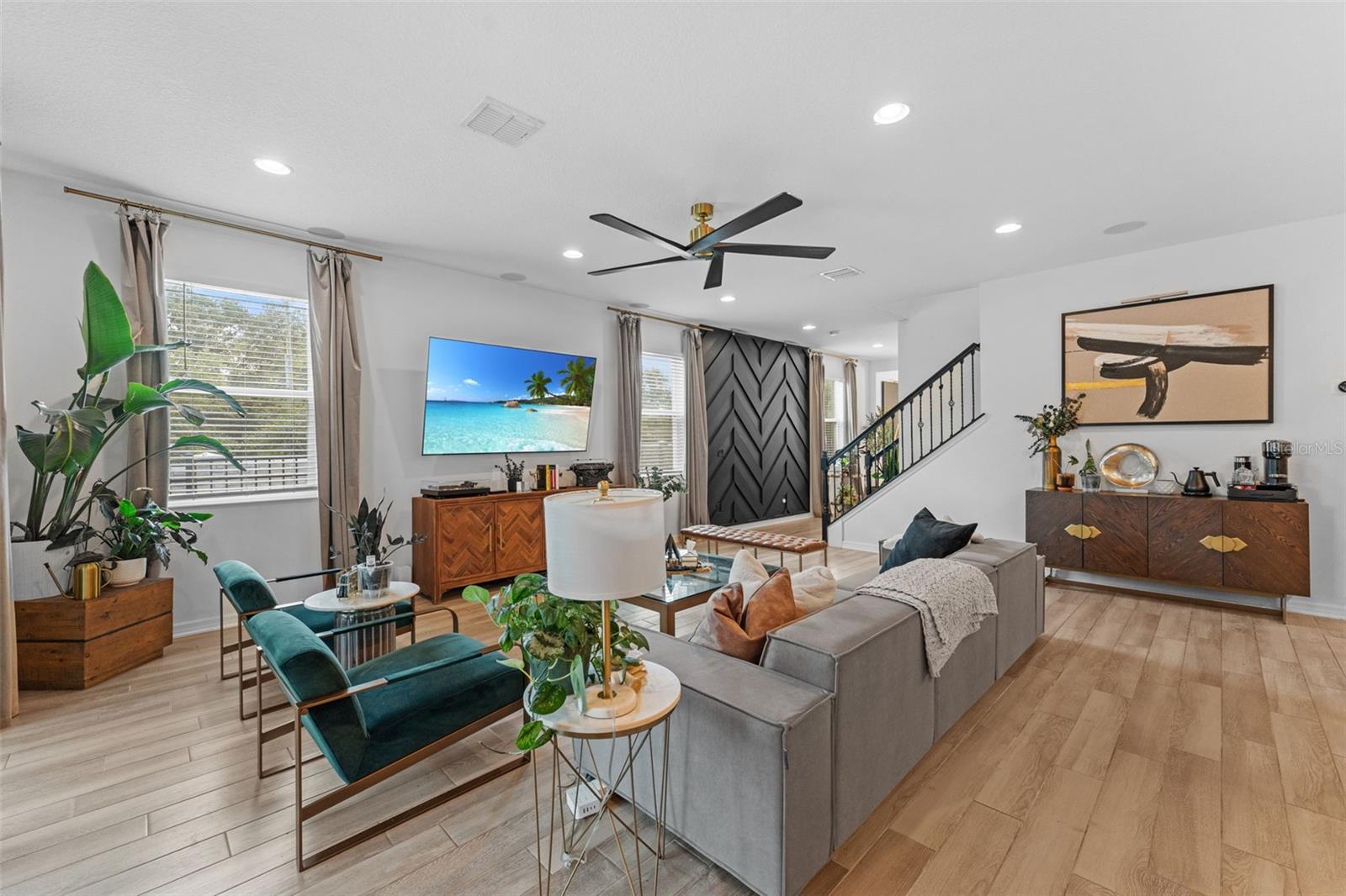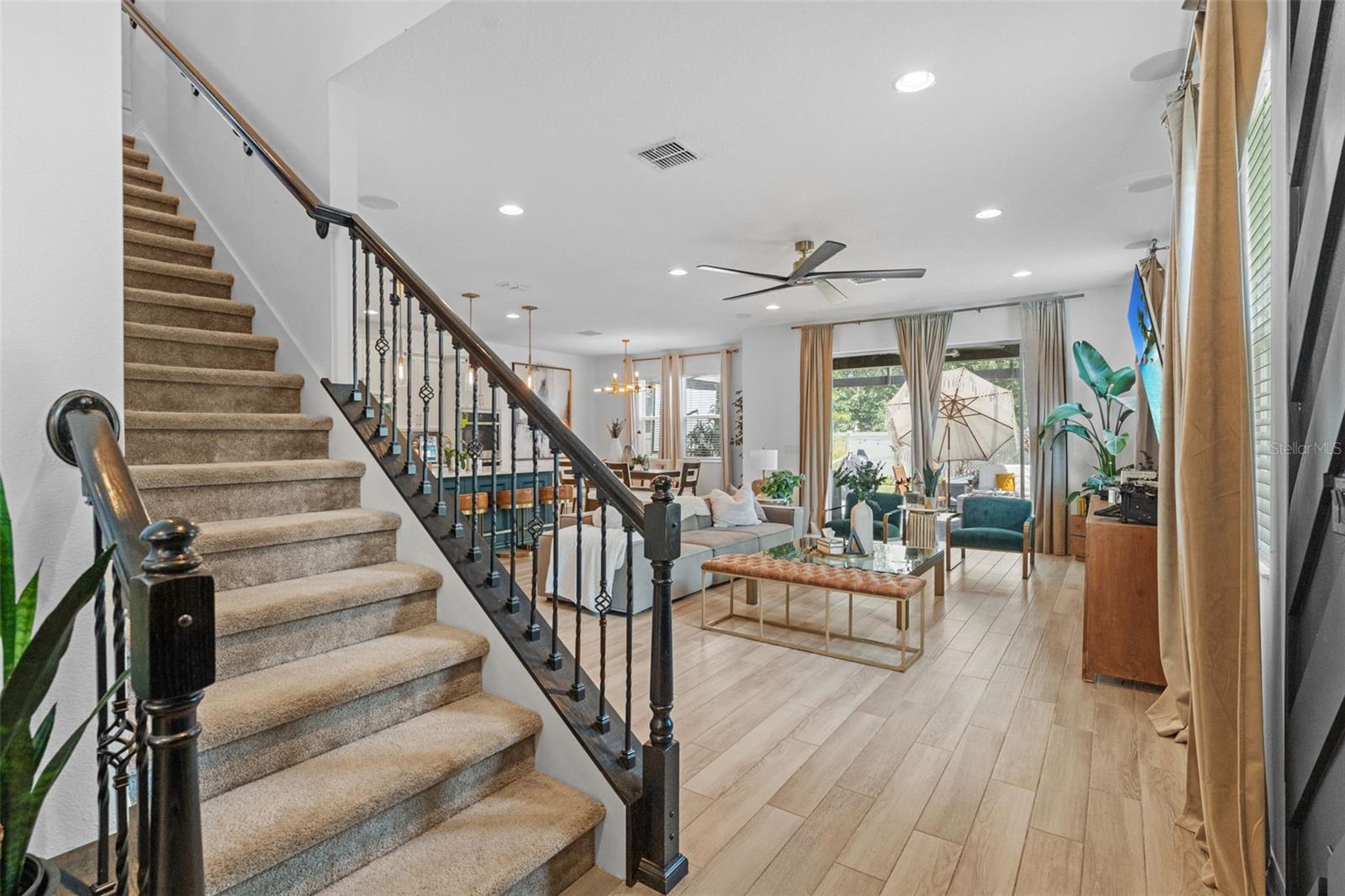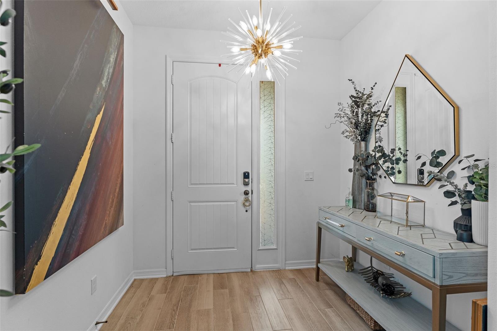$5,000 Seller Concessions towards closing costs!!! One of a kind home in a gated community Perfectly situated on a spacious corner lot, this stunning 4-bedroom, 3-bathroom smart home is more than move-in ready — it’s a lifestyle upgrade. From the moment you step inside, you’re greeted by a dramatic foyer with a custom accent wall that sets the tone for the stylish details found throughout the home. The open-concept layout invites connection and comfort, with soaring ceilings and a bright, expansive great room that flows effortlessly into the heart of the home — the kitchen. Designed with the entertainer in mind, this chef’s dream features a massive quartz island for gathering, sleek stainless steel appliances, built-in double ovens, a cooktop, and generous cabinetry — all illuminated by natural light and modern smart lighting. The flex room offers endless possibilities: home office, creative studio, cozy library, or even a guest suite thanks to the full bathroom downstairs. Upstairs, a large loft provides the perfect retreat — currently an entertainment space, it could easily transform into a game room, media lounge, or teen hangout. Each of the four spacious bedrooms includes a walk-in closet, offering ample storage and personal space for everyone. The primary suite is a private sanctuary with elegant tray ceilings and a spa-inspired ensuite. Relax under the rainfall shower in a herringbone-tiled oasis, enjoy split vanities for effortless mornings, and take advantage of the dedicated makeup station area to elevate your daily routine. The outdoor space is equally impressive: step through sliding doors to the extended, screened-in stone patio, ideal for movie nights with the already hung projection screen, alfresco dining, or weekend lounging. The fully fenced backyard is perfect for pets, play, or even your dream garden. Additional premium features include sleek metal stair spindles, wood-look ceramic tile flooring, integrated ceiling speakers, and a Brita Pro whole-house filtration system (even the hose bibs are filtered!). This is a true smart home — Alexa-compatible lighting and fans in the kitchen, loft, and primary bedroom make everyday living both convenient and cool. Lawn care, including the backyard, is fully covered by the HOA, giving you more time to explore everything nearby. Sanford is booming with exciting new developments and fun for the whole family! The beautiful Sanford Riverwalk is the heart of the city—perfect for biking, walking, and catching amazing sunsets along Lake Monroe. The Orlando–Sanford Airport is undergoing a $13 million expansion and the city is adding cool things like a bike pump track, new parks, and fun outdoor spaces, while the old Seminole Towne Center is getting a major makeover with new shops, restaurants, a Costco and movie theatre! Sanford is on the rise—mixing small-town charm with big-city fun! — I-4, 417, 429, top-rated schools, endless dining and shopping options, the Sanford Zoo, marina, and charming Historic Downtown Sanford. 1425 Paget Cove is not just a house — it’s a place to live boldly, relax fully, and create unforgettable moments. Don’t miss the opportunity to call it home.