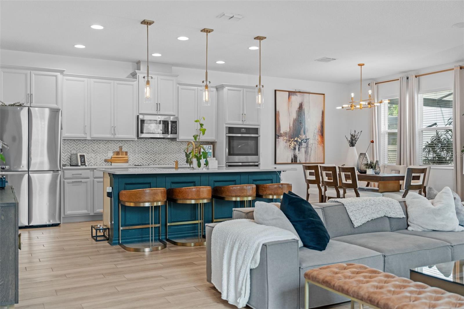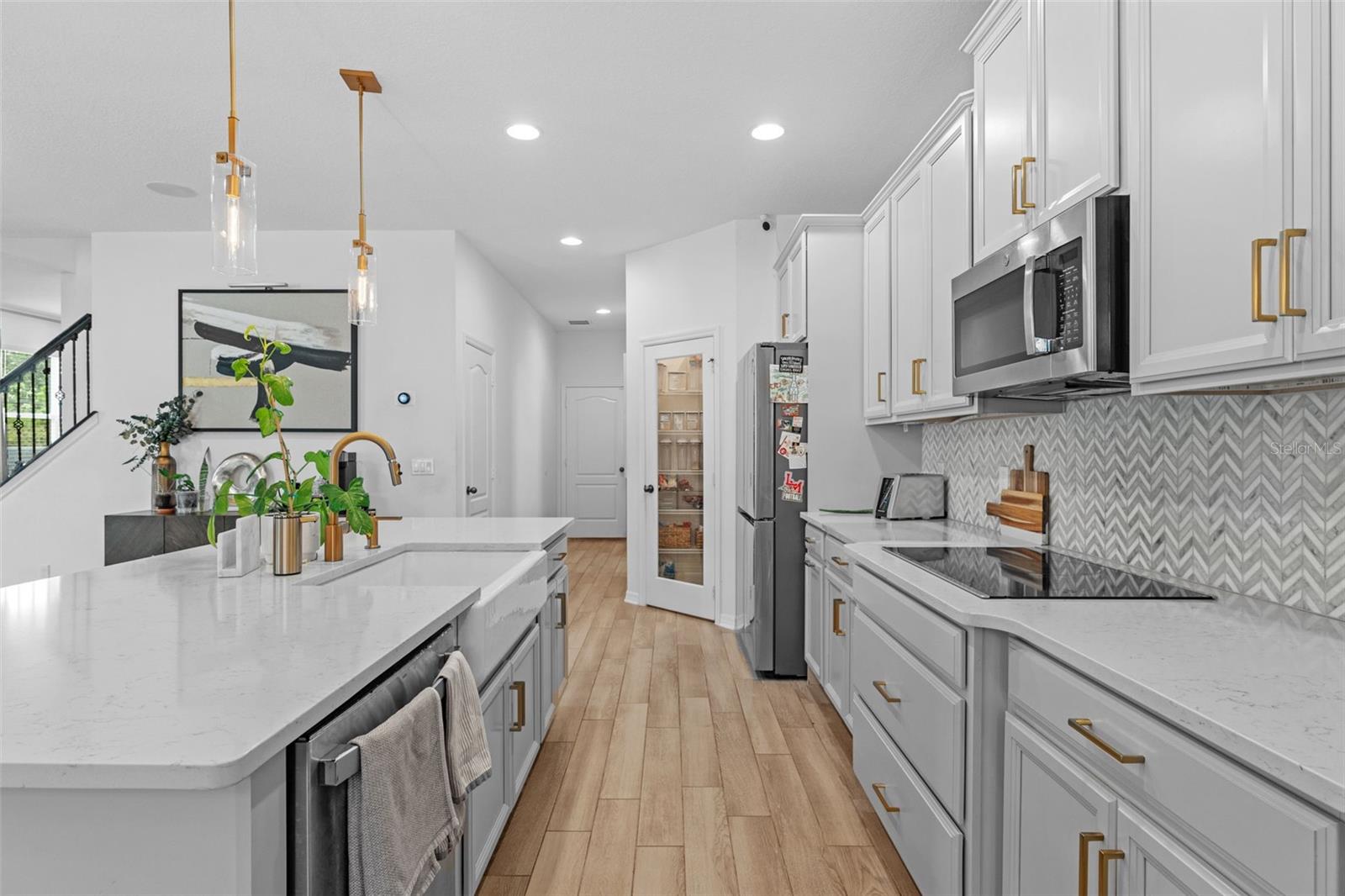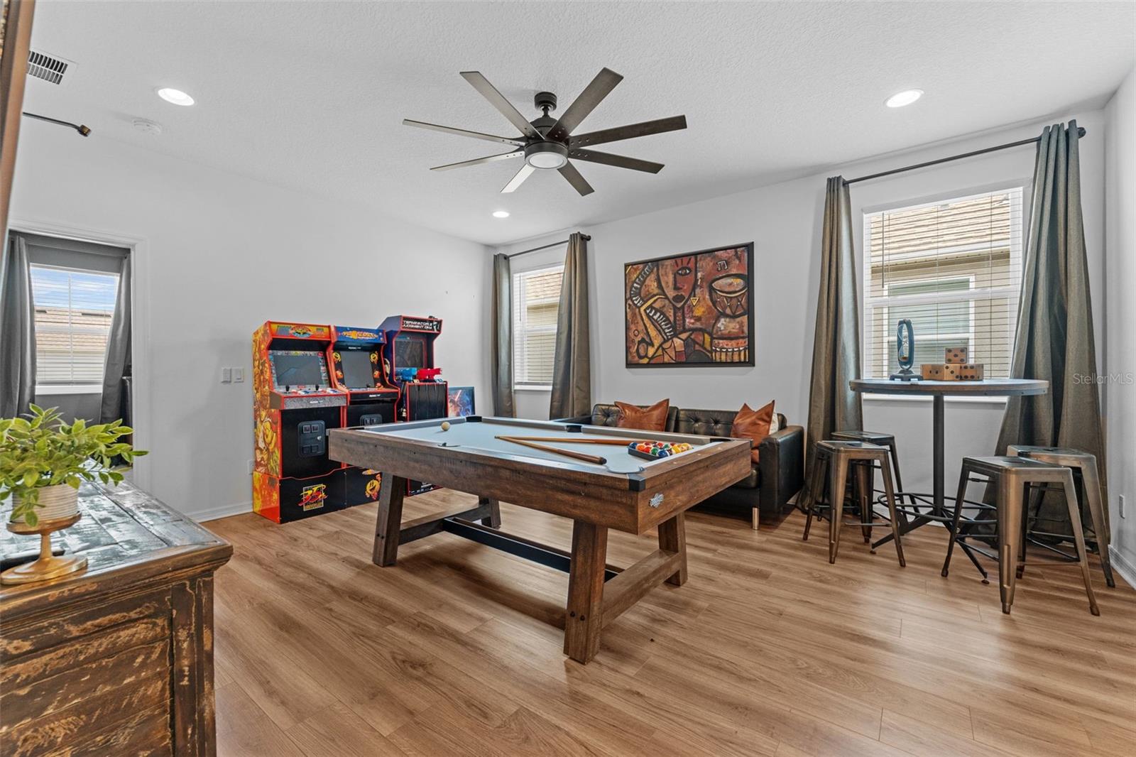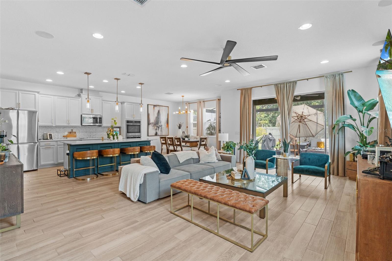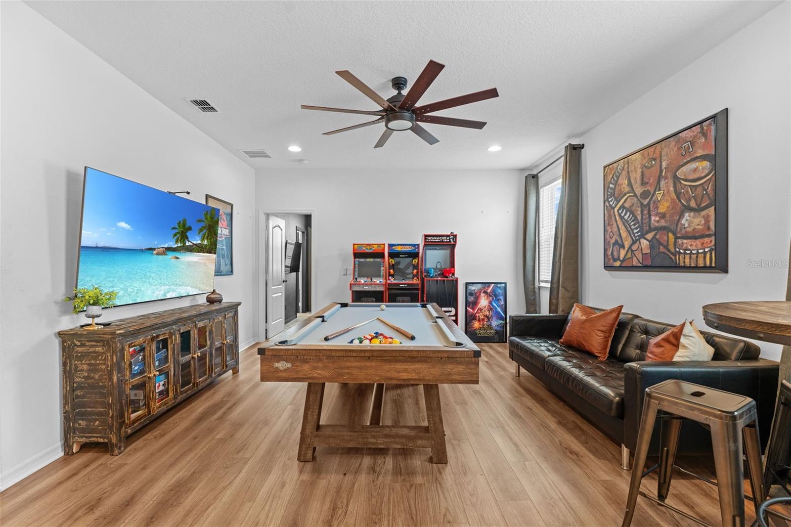 $5,000 Seller Concessions towards closing costs!!! One of a kind home in a gated community Perfectly situated on a spacious corner lot, this stunning 4-bedroom, 3-bathroom smart home is more than move-in ready — it’s a lifestyle upgrade. From the moment you step inside, you’re greeted by a dramatic foyer with a custom accent wall that sets the tone for the stylish details found throughout the home. The open-concept layout invites connection and comfort, with soaring ceilings and a bright, expansive great room that flows effortlessly into the heart of the home — the kitchen. Designed with the entertainer in mind, this chef’s dream features a massive quartz island for gathering, sleek stainless steel appliances, built-in double ovens, a cooktop, and generous cabinetry — all illuminated by natural light and modern smart lighting. The flex room offers endless possibilities: home office, creative studio, cozy library, or even a guest suite thanks to the full bathroom downstairs. Upstairs, a large loft provides the perfect retreat — currently an entertainment space, it could easily transform into a game room, media lounge, or teen hangout. Each of the four spacious bedrooms includes a walk-in closet, offering ample storage and personal space for everyone. The primary suite is a private sanctuary with elegant tray ceilings and a spa-inspired ensuite. Relax under the rainfall shower in a herringbone-tiled oasis, enjoy split vanities for effortless mornings, and take advantage of the dedicated makeup station area to elevate your daily routine. The outdoor space is equally impressive: step through sliding doors to the extended, screened-in stone patio, ideal for movie nights with the already hung projection screen, alfresco dining, or weekend lounging. The fully fenced backyard is perfect for pets, play, or even your dream garden. Additional premium features include sleek metal stair spindles, wood-look ceramic tile flooring, integrated ceiling speakers, and a Brita Pro whole-house filtration system (even the hose bibs are filtered!). This is a true smart home — Alexa-compatible lighting and fans in the kitchen, loft, and primary bedroom make everyday living both convenient and cool. Lawn care, including the backyard, is fully covered by the HOA, giving you more time to explore everything nearby. Sanford is booming with exciting new developments and fun for the whole family! The beautiful Sanford Riverwalk is the heart of the city—perfect for biking, walking, and catching amazing sunsets along Lake Monroe. The Orlando–Sanford Airport is undergoing a $13 million expansion and the city is adding cool things like a bike pump track, new parks, and fun outdoor spaces, while the old Seminole Towne Center is getting a major makeover with new shops, restaurants, a Costco and movie theatre! Sanford is on the rise—mixing small-town charm with big-city fun! — I-4, 417, 429, top-rated schools, endless dining and shopping options, the Sanford Zoo, marina, and charming Historic Downtown Sanford. 1425 Paget Cove is not just a house — it’s a place to live boldly, relax fully, and create unforgettable moments. Don’t miss the opportunity to call it home.