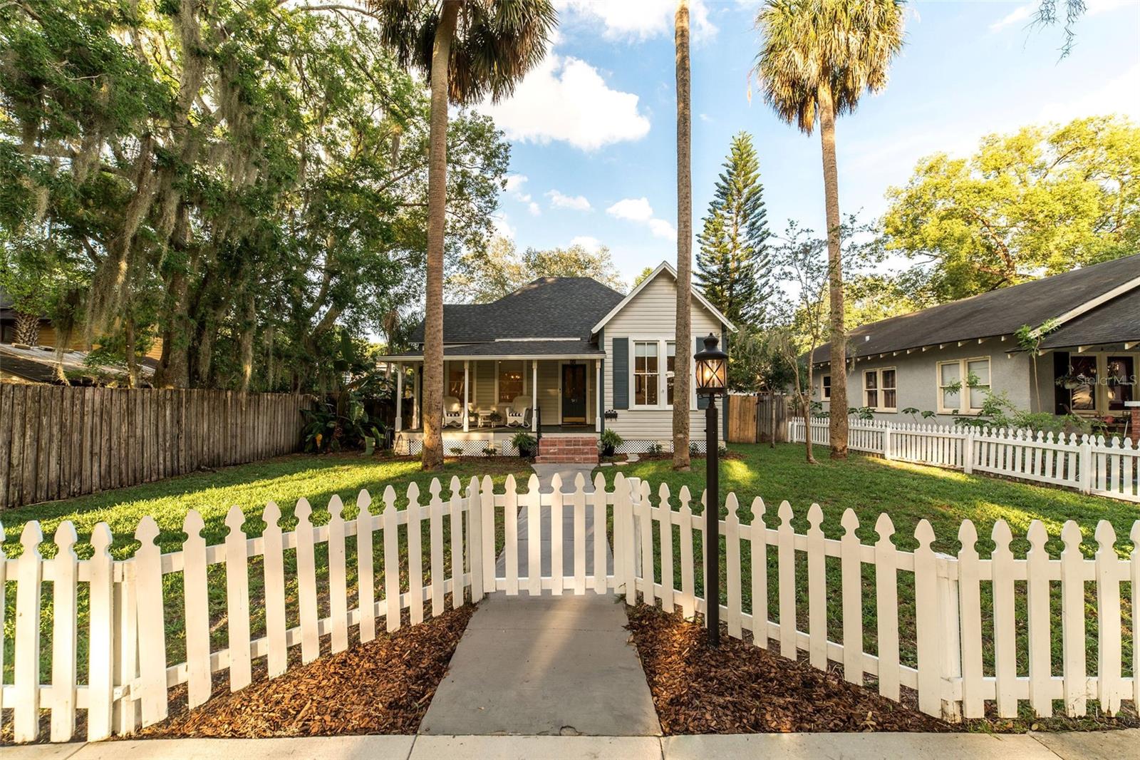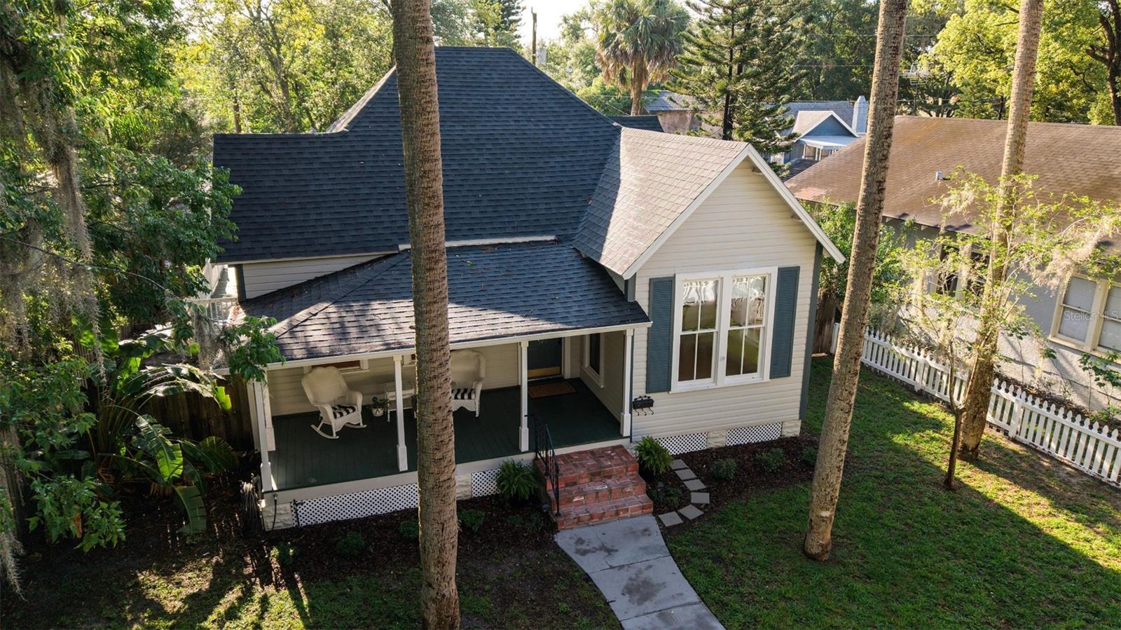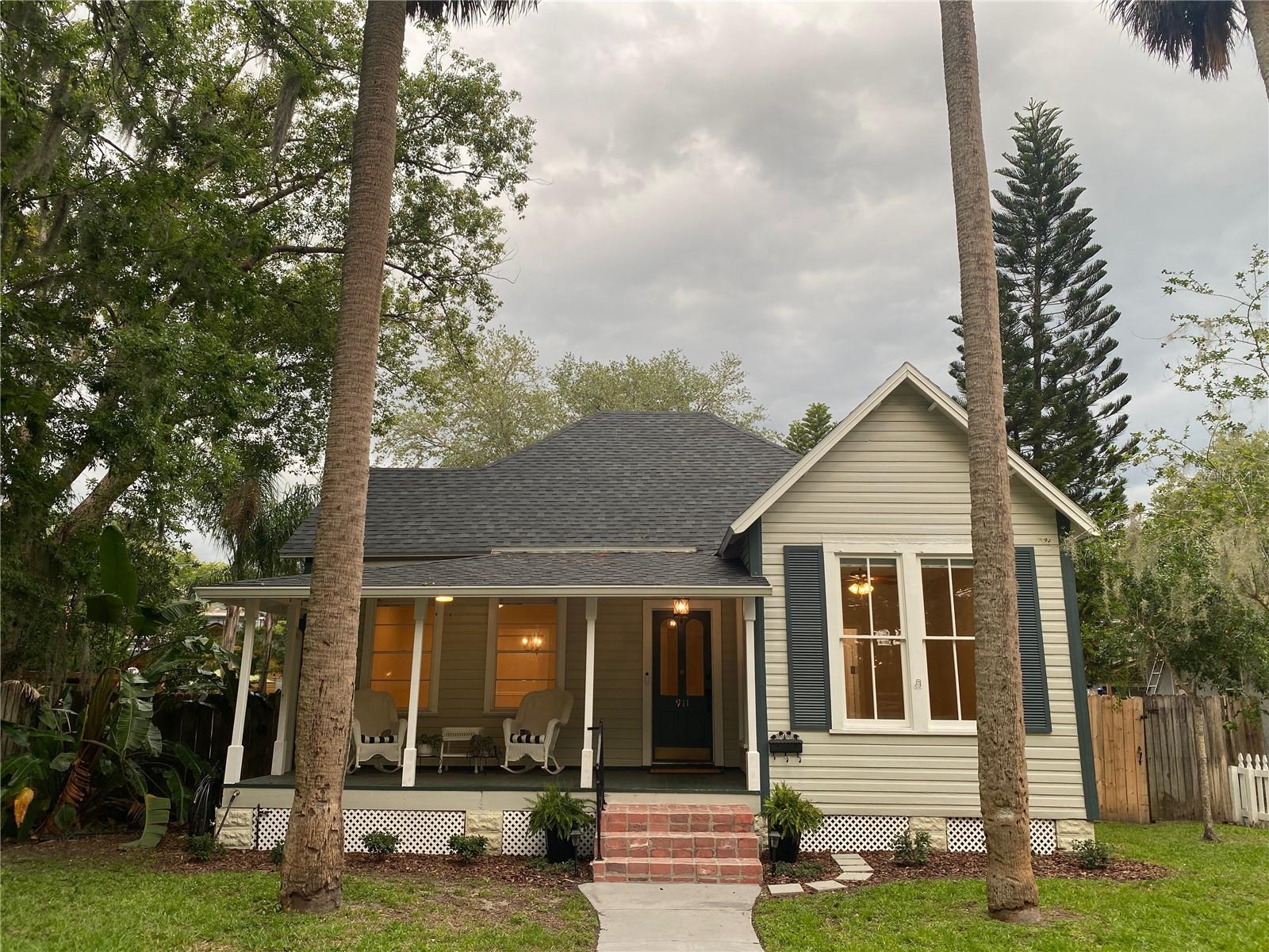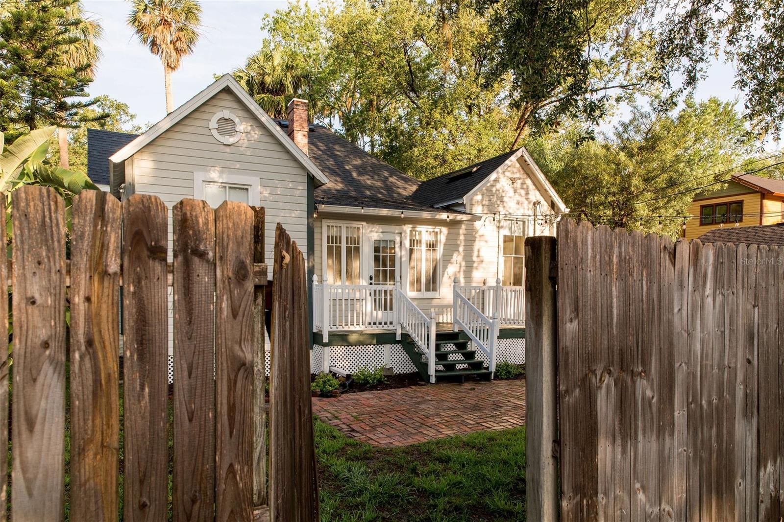 Impeccable Bungalow in the Heart of Sanford's Historic District on a Block with Brick Streets and Old Growth Oaks. This Home has been Well Loved and it SHOWS! A Charming Picket Fence Welcomes You to this Home. An Original Double Tombstone Door Opens to an Entrance Foyer - You'll Notice the 9.5ft Ceilings Immediately . The Spacious Living Room Opens to the Dining Room Thru Glass French Doors. You'll Love the Oversized Dining Room with Decorative Fireplace, Original Built In and French Doors Opening to Side Deck. An Updated Kitchen at the Back of Home Boasts Original Windows allowing the Morning Light Stream In. White Cabinetry, Stainless Appliances and a Charming Backsplash Make this Kitchen One You'll want to Cook In! The Generously Sized Primary Suite at the Back of the Home with Another Decorative Fireplace also has a Walk In Closet all Decked Out for Organization and A Full Bath with Tub/Shower Combo. The Second Bedroom at the Front of the Home Features it's Own Full Bathroom with Walk In Shower and a Large Closet. Laundry Closet in Hall Off Kitchen Across from Additional Full Hall Bath. This Home Gets Incredible Light through the Restored Windows. The Fenced Backyard has a Back Deck, Brick Patio and Detached Shed - Spend the Evening Under the Stars Entertaining Friends and Family. Details Abound Throughout this Bungalow - Hardwood Floors, Blackout Levolor Shades in Bedrooms, Solar Levolor Shades in Living Spaces, and Baldwin Door Knobs Throughout. New Roof (2022), HVAC (2015), Termite Bond for Peace of Mind. Nest Thermostat and Nest Doorbell. Tankless Gas Water Heater. Wonderful Location with Close Proximity to Park on Park, Downtown Restaurants, Galleries, Breweries and the RiverWalk. Bike and Golf Cart Friendly. Sellers have done Extensive Improvements During their Ownership! Don't Miss the Opportunity to Own this Remarkable Bungalow!