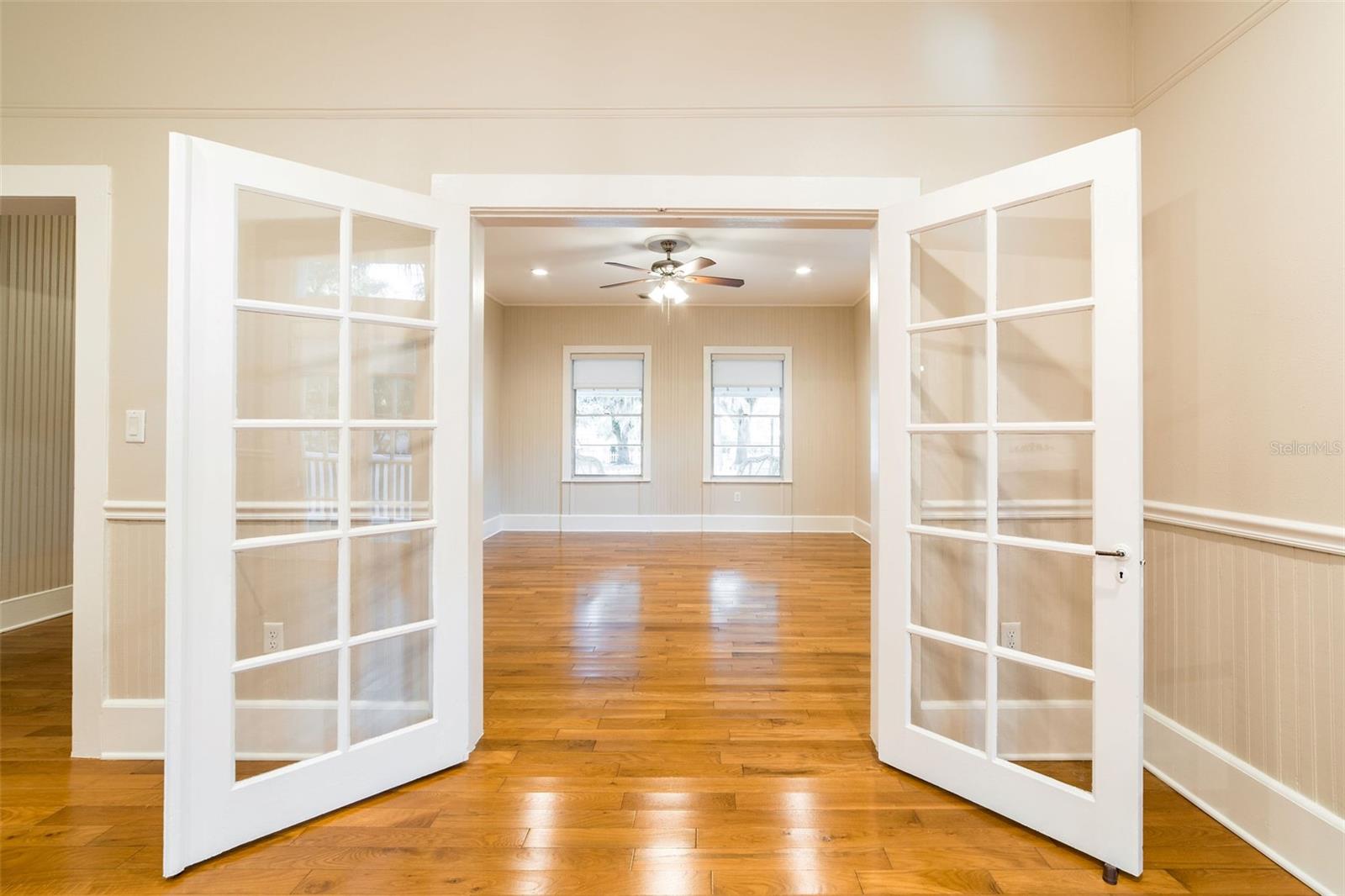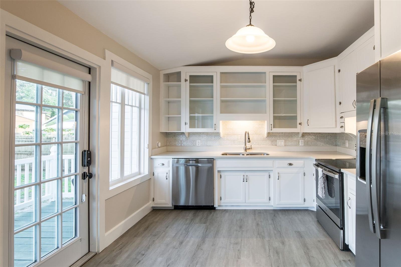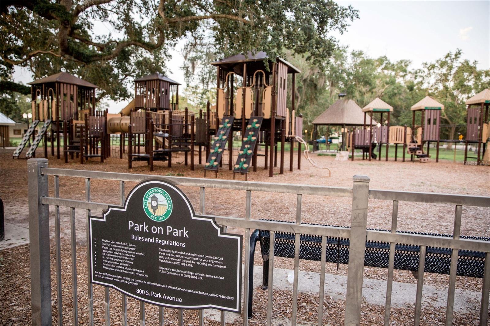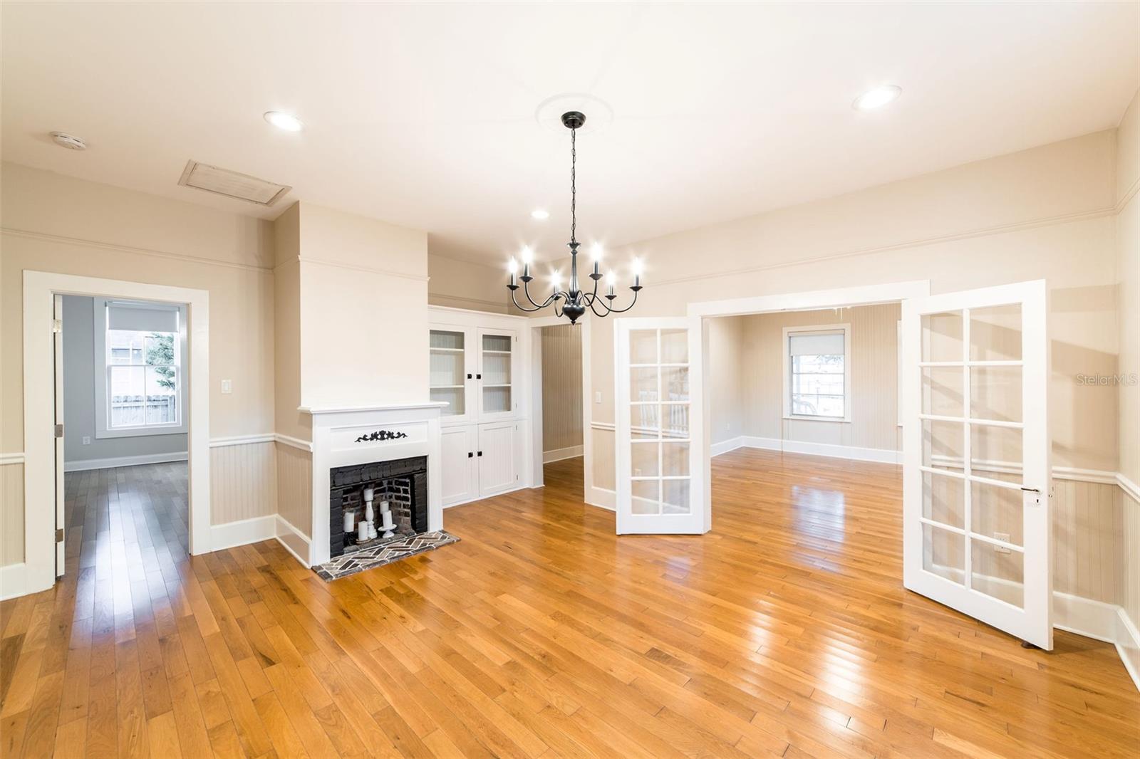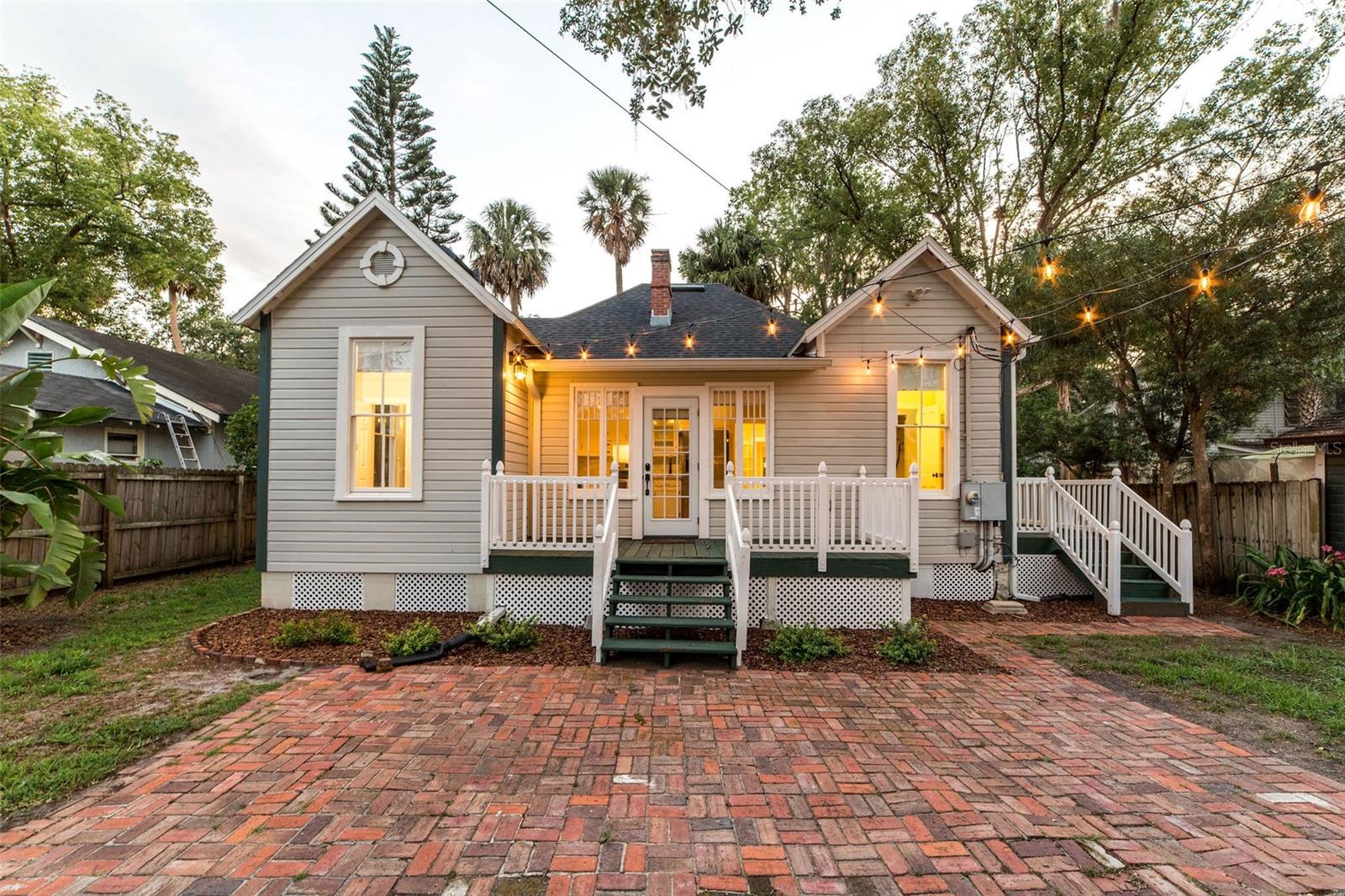 Impeccable Bungalow in the Heart of Sanford's Historic District on a Block with Brick Streets and Old Growth Oaks. This Home has been Well Loved and it SHOWS! A Charming Picket Fence Welcomes You to this Home. An Original Double Tombstone Door Opens to an Entrance Foyer - You'll Notice the 9.5ft Ceilings Immediately . The Spacious Living Room Opens to the Dining Room Thru Glass French Doors. You'll Love the Oversized Dining Room with Decorative Fireplace, Original Built In and French Doors Opening to Side Deck. An Updated Kitchen at the Back of Home Boasts Original Windows allowing the Morning Light Stream In. White Cabinetry, Stainless Appliances and a Charming Backsplash Make this Kitchen One You'll want to Cook In! The Generously Sized Primary Suite at the Back of the Home with Another Decorative Fireplace also has a Walk In Closet all Decked Out for Organization and A Full Bath with Tub/Shower Combo. The Second Bedroom at the Front of the Home Features it's Own Full Bathroom with Walk In Shower and a Large Closet. Laundry Closet in Hall Off Kitchen Across from Additional Full Hall Bath. This Home Gets Incredible Light through the Restored Windows. The Fenced Backyard has a Back Deck, Brick Patio and Detached Shed - Spend the Evening Under the Stars Entertaining Friends and Family. Details Abound Throughout this Bungalow - Hardwood Floors, Blackout Levolor Shades in Bedrooms, Solar Levolor Shades in Living Spaces, and Baldwin Door Knobs Throughout. New Roof (2022), HVAC (2015), Termite Bond for Peace of Mind. Nest Thermostat and Nest Doorbell. Tankless Gas Water Heater. Wonderful Location with Close Proximity to Park on Park, Downtown Restaurants, Galleries, Breweries and the RiverWalk. Bike and Golf Cart Friendly. Sellers have done Extensive Improvements During their Ownership! Don't Miss the Opportunity to Own this Remarkable Bungalow!