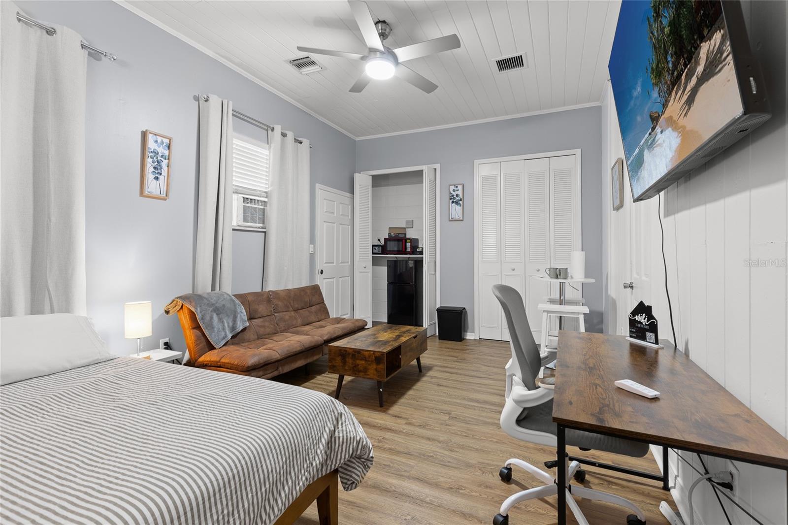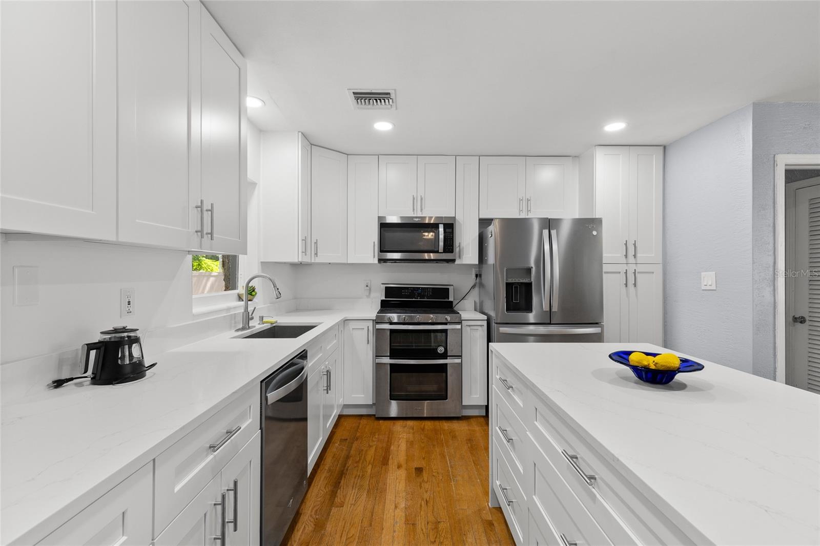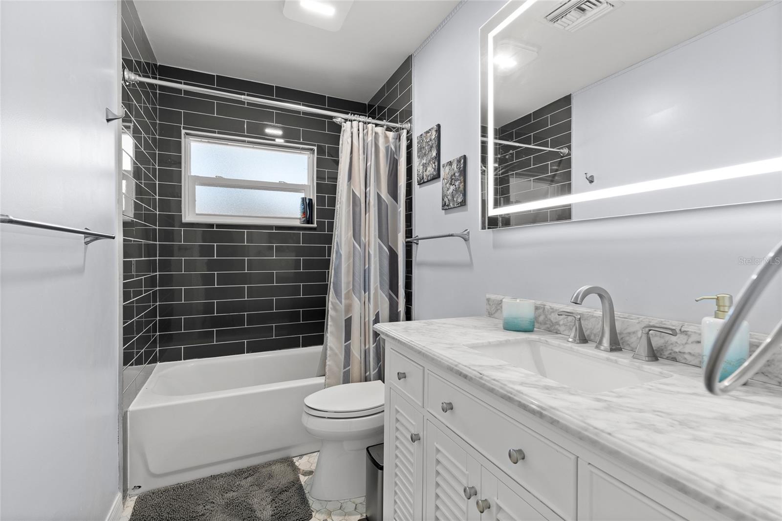Located just outside the Sanford Historic District, this established neighborhood welcomes you to mid-century charm. This beautifully updated home blends classic charm with modern upgrades. The newly renovated kitchen features quartz countertops, waterfall island, gas double oven and soft-close cabinetry - perfect for entertaining or staying connected with the family fun. Original hardwood floors flow throughout the main house complemented by two updated bathrooms with Carrera marble counters, porcelain tile floors and touch-controlled LED mirrors with automatic defoggers. The sunroom opens to a enchanting back patio with new pavers, a picturesque pergola, and gas fire pit - an inviting space to unwind and savor the beauty of the Florida outdoors. Recent updates include new double pane windows and added insulation in two bedrooms, new pavers to front door, gutters, gas water heater, heat pump, upgraded electrical panel and electric car charger. A private in-law suite offers its own entrance, bathroom, laundry and basic kitchen essentials, and has functioned successfully as an Airbnb - especially convenient given the limited nearby hotel options and proximity to the Sanford/Orlando International Airport. Enjoy the vibrant lifestyle of downtown Sanford just minutes away, with festivals, riverfront parks and dining, Farmers Market, and unique local shops. American Home Shield warranty provided by Sellers with acceptable terms