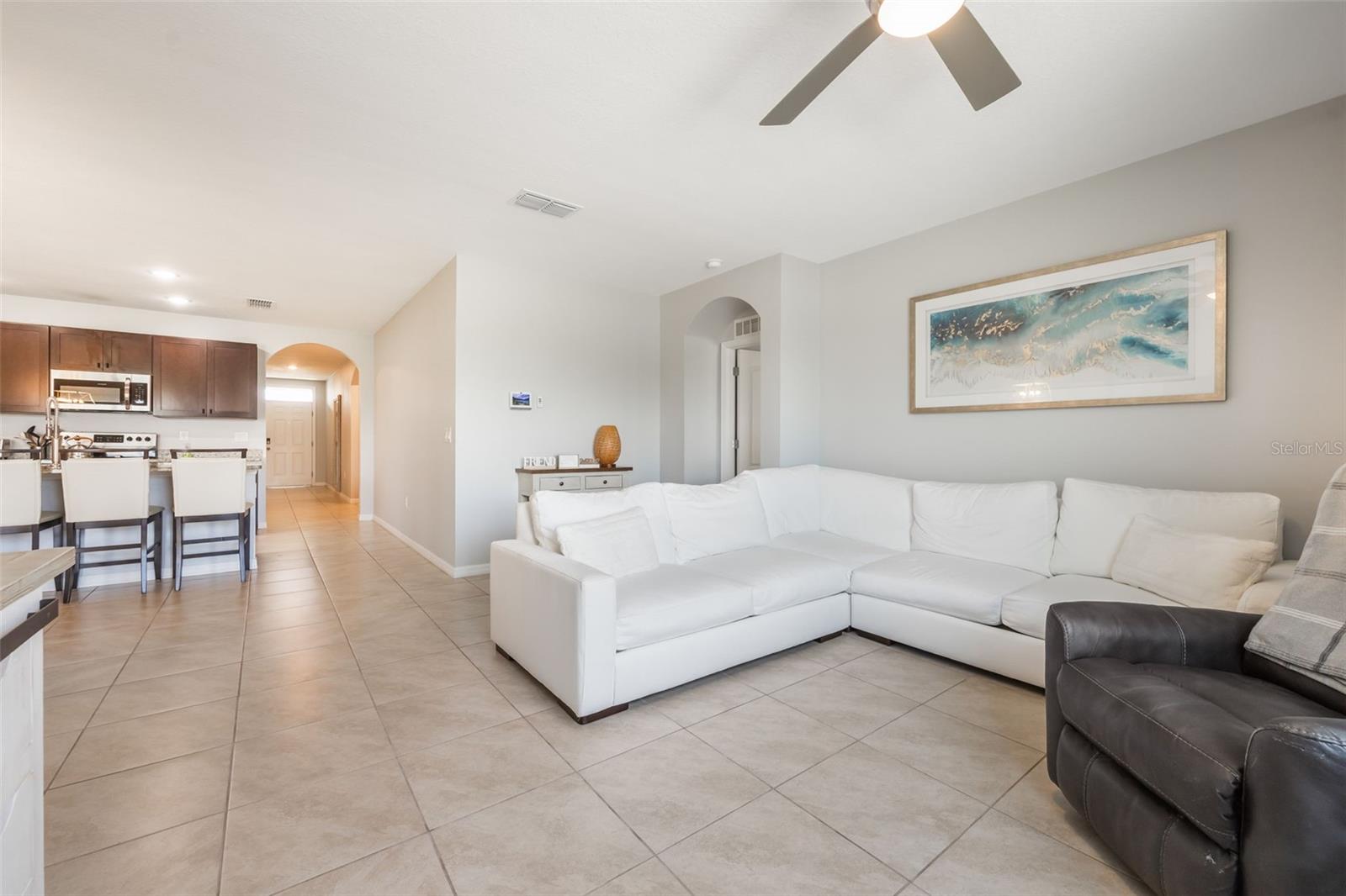 Welcome to 3936 Silverstream! Fall in love the moment you arrive at this stunning, move-in-ready 4-bedroom, 2 bath home built in 2019. Located in a wonderful neighborhood, this popular DR Horton Cali floorplan showcases pride of ownership throughout. Inside, you’ll find an open and versatile layout featuring ceramic tile in all main living areas and a desirable split-bedroom floor plan. The fourth bedroom offers flexibility and can easily be used as a home office. The spacious kitchen is a chef’s dream—fully equipped with stainless steel appliances, granite countertops, a walk-in pantry, and a large island perfect for entertaining and family gatherings. The kitchen flows seamlessly into the great room and dining area, creating an ideal space for everyday living and hosting. Retreat to the private primary suite, which boasts a walk-in shower, private water closet, an oversized linen/storage closet, and a HUGE walk-in closet. Both bathrooms feature elegant granite countertops for a touch of luxury. Enjoy Florida living with a large backyard and a rear paved porch—perfect for relaxing or entertaining outdoors. This home also includes SMART home technology, allowing integration with smart thermostats, Bluetooth, WiFi devices, and more. Additional upgrades include a water softener system installed in 2023. Conveniently located just minutes from Historic Downtown Sanford, Sanford International Airport, SR 417, and within a short distance to Galileo Charter School. Don't miss your chance—schedule your private tour today!