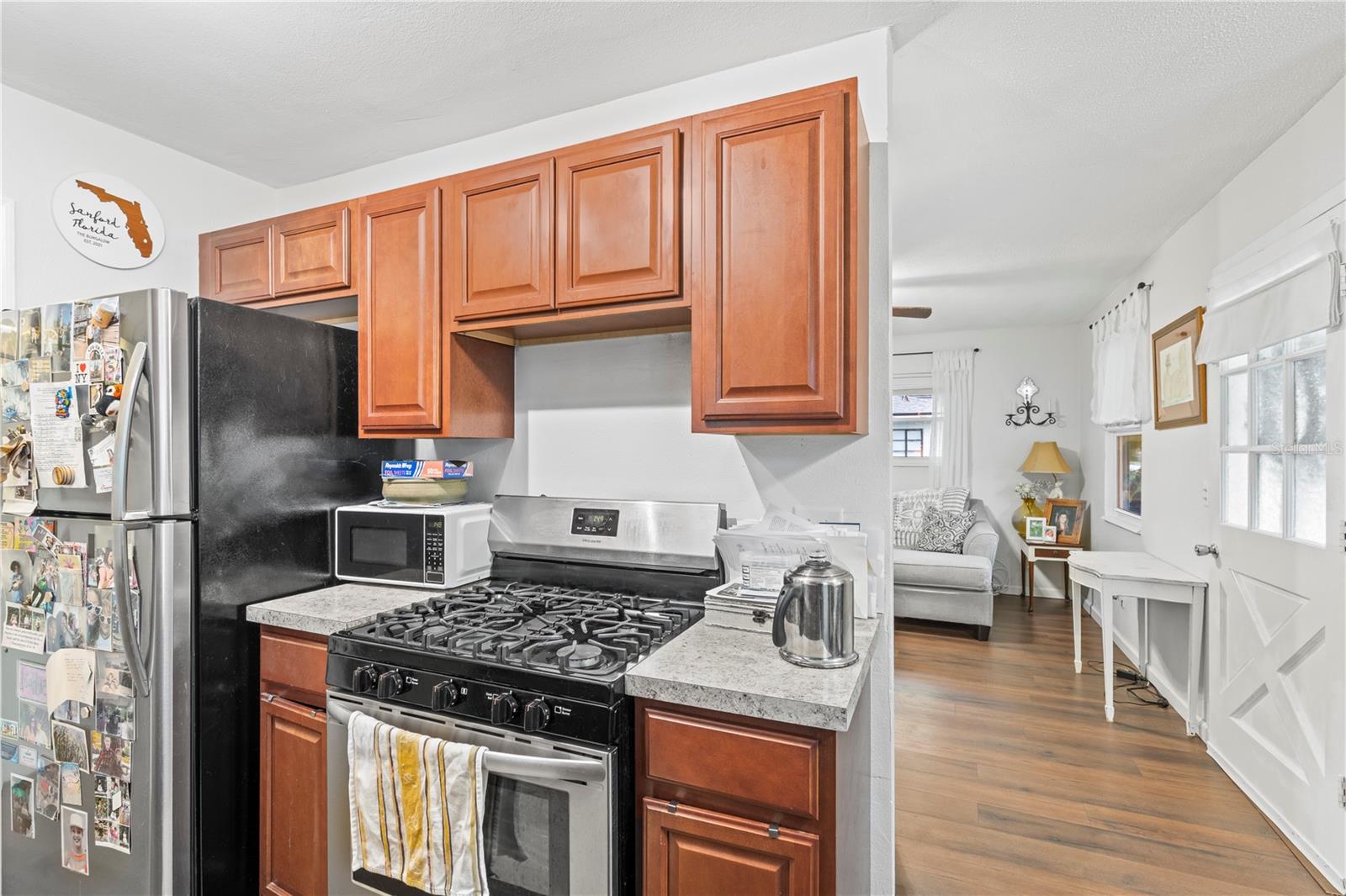 Welcome to the Hallmark House on 20th Street, Where Charm Meets Lifestyle in the Heart of Sanford! Live the laid-back lifestyle you've been dreaming of in this beautifully updated move-in ready oasis, just minutes from the vibrant, historic charm of Downtown Sanford. Nestled in a beloved golf cart community with NO HOA, this home is a rare blend of character, comfort, and convenience—all wrapped into one sweet package. From the moment you arrive, you're welcomed by lush new landscaping and a cozy covered front porch, the perfect spot for morning coffee or evening chats with neighbors. Step inside to a warm, sun-filled living room, with a dedicated dining space ideal for entertaining or enjoying Sunday brunch. The updated kitchen shines with all-new stainless steel appliances, generous cabinet space, and an adjacent laundry room for added ease. Down the hall, discover three spacious bedrooms and a fully renovated bathroom—each detail thoughtfully designed for modern living. The real showstopper? Your expansive backyard oasis, perfect for hosting friends, planting a garden, or simply soaking up the Florida sunshine. A detached garage with rear alley access offers versatility for a workshop, studio, or secure boat/RV parking. **Notable Upgrades Include**: NEW Roof (2023), ALL NEW Windows (2023), Tankless Gas Water Heater (2021), NEW Floors & Subfloors (2021), Fully Renovated Bathroom (2021) & Natural Gas Connection (2021). Here, lifestyle comes easy. Cruise downtown in your golf cart to enjoy Sanford’s award-winning breweries, restaurants, farmers markets, and the scenic Riverwalk Trail along Lake Monroe. With close access to major highways, I-4, 417, and the Sanford International Airport, you're never far from where you need to be. This isn’t just a home—it’s a way of life. Come experience this slice of Central Florida charm today!