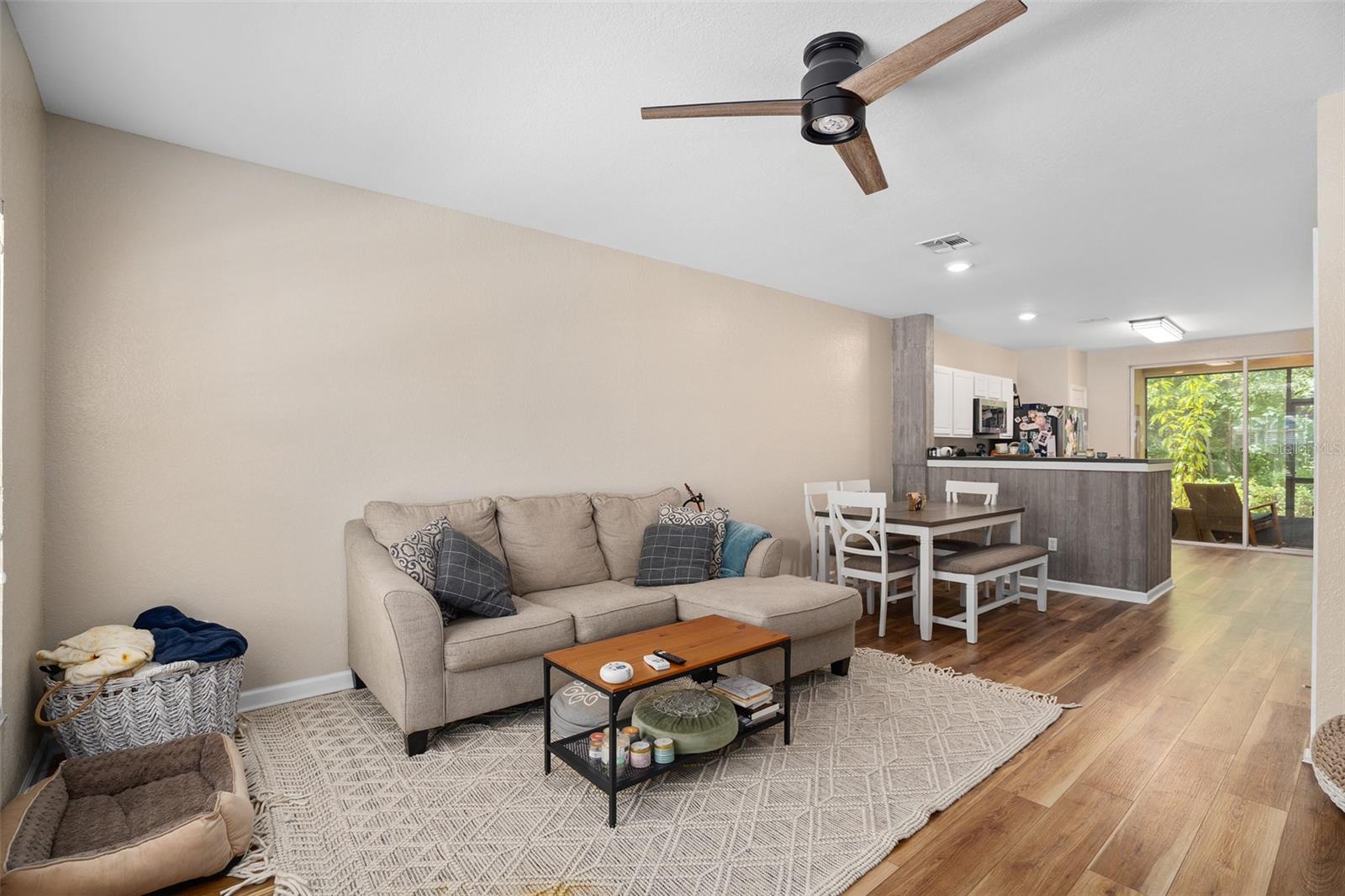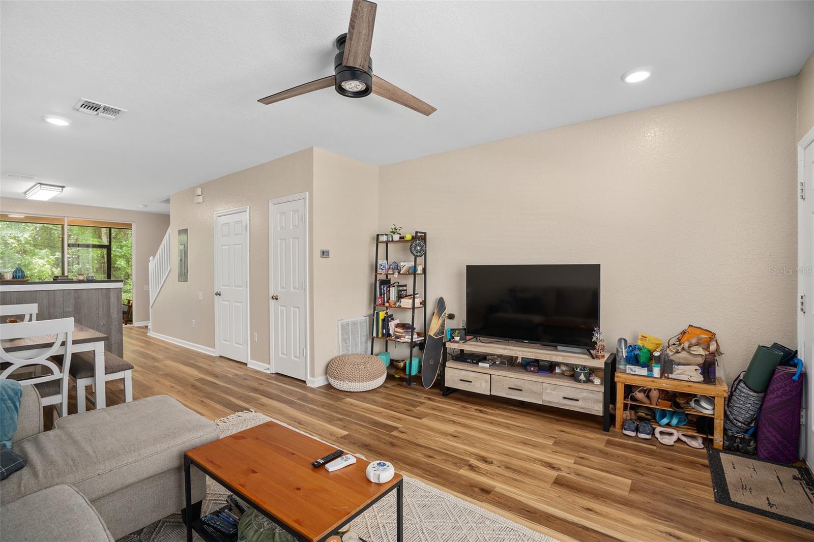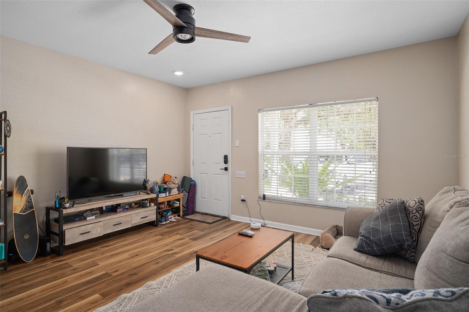 Experience peace and tranquility in this meticulously maintained townhome in Sanford. The property features a generous open floor plan that combines a spacious living and dining area. On the first floor, you'll find an oversized half bath and a very spacious kitchen equipped with updated GE appliances, including a refrigerator, stove, dishwasher, and microwave, all purchased in 2023. The home boasts luxury vinyl flooring throughout. This townhome includes two generous master bedrooms, each accompanied by welcoming full bathrooms with cozy upgraded finishes. An upstairs laundry closet with a washer and dryer adds to the convenience, and there is a nearby linen closet for extra storage. The location is ideal, with easy access to major highways and nearby shopping and dining options. The property is situated within A-rated school zones, and nature activities are in close proximity.