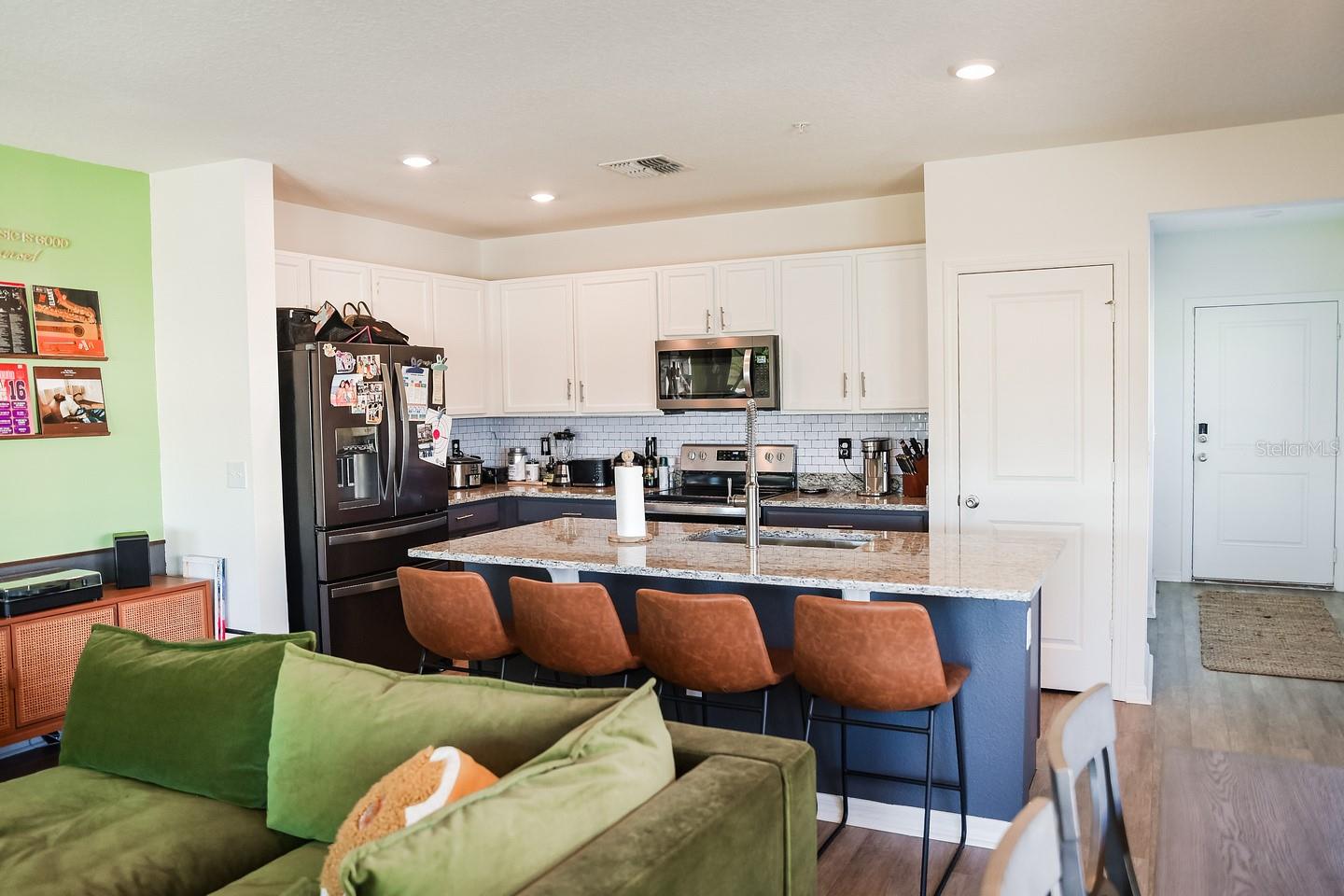 Don’t miss out on this stunning corner-lot townhome in the desirable Landings at Riverbend! Built by KB Homes, this modern residence still feels brand new and is completely move-in ready. Boasting 3 spacious bedrooms, 3 bathrooms, a guest half-bath, and a 1-car extended garage with a private driveway, this home offers both comfort and functionality. The thoughtfully designed layout features all bedrooms and full bathrooms upstairs, providing privacy from the open-concept living and gathering spaces on the main floor. Downstairs, you'll find a stylish guest half-bath, multiple storage closets, including one under the stairs, and an interior laundry area for added convenience. Step out back to enjoy your private fenced yard, complete with a landscaped lawn and an open patio, perfect for relaxing or entertaining. While not a waterfront property, its position on a corner lot which gives added space and a sense of openness. This home includes elegant builder upgrades such as luxury vinyl plank flooring, granite countertops, stainless steel appliances, and soft-close kitchen cabinetry. Additional owner improvements include upgraded light fixtures, cabinet hardware, and custom landscaping. Enjoy low-maintenance living in a beautifully maintained home that combines style and practicality. Located just a short distance from the community pool and clubhouse, and minutes from historic downtown Sanford, you'll have quick access to restaurants, shopping, and scenic trails. This is the lifestyle you’ve been waiting for!