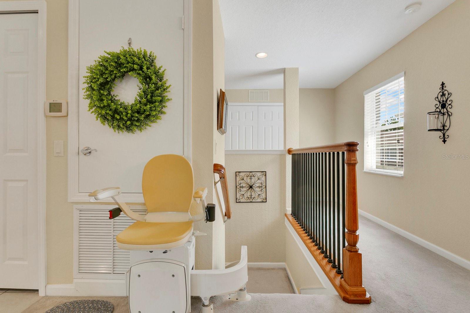 CARRIAGE HOMES AT DUNWOODY COMMONS - Built in 2006 by Pulte Homes, this well-maintained townhome is nestled in a quiet, gated townhome community offering supreme comfort in a prime location. This property boasts high ceilings and a bright, meticulously cared-for interior that enhances the open and airy feel of the home. Enjoy a spacious screened-in porch with expansive sliding glass doors that fill the living area with natural light, creating an inviting indoor-outdoor living experience. Major mechanical updates include a new roof (2023), HVAC system (2017), and a Rheem Performance Plus hot water heater. Interior improvements made in 2025 include a new kitchen faucet, updated faucets in the primary bath, a new vanity and faucet in the second bathroom, custom shelving in the primary bedroom closet, and a new stair railing. A Stair Lift is also included for added accessibility, and the washer and dryer both convey. The property features a 1-car garage with a storage loft and a Gladiator wall panel system for additional organization. HOA covers exterior maintenance and landscaping, allowing for low-maintenance living. This home also offers access to a community pool and clubhouse with bathrooms—perfect for both relaxing and entertaining. Conveniently located near local hospitals, top-rated restaurants, and retail shops.