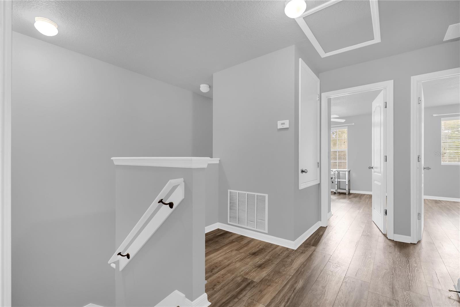 Welcome to this stunning 3-bedroom, 2.5-bath townhome offering 1,642 sq. ft. of thoughtfully designed living space. This charming residence combines comfort, style, and functionality — perfect for modern living. Step inside to find elegant tile flooring throughout the main floor walkways and common areas, creating a clean and polished look. The kitchen is a chef’s dream, featuring stainless steel appliances, a generously sized countertop, and ample cabinet space — ideal for cooking, entertaining, or casual family meals. Enjoy indoor-outdoor living with a private enclosed patio, perfect for relaxing, dining, or hosting friends. The one-car garage provides secure parking and additional storage space. Upstairs, discover beautiful wood flooring throughout the hallway and all three bedrooms — including the staircase — adding warmth and style. Each bedroom features custom-built closets, providing smart, efficient storage. The master bathroom and secondary bathroom have both been tastefully remodeled, showcasing modern finishes and elegant design. Located in a desirable community with easy access to shopping, dining, schools, and highways, this home is move-in ready and waiting for you.!!!!!! BONUS FACT ABOUT THE COMMUNITY IS YOU CAN ACCESS THE SUNRAIL FROM THE COMMUNITY!!!!!!