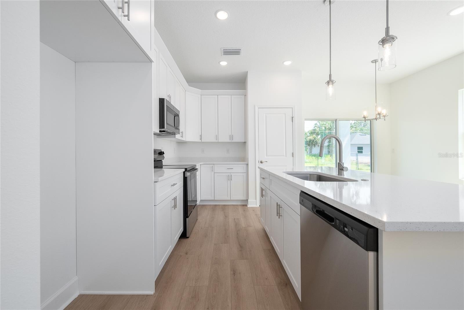 PRICE IMPROVEMENT! Be the first to live in this brand new, beautifully constructed 3 bedroom, 2 bath home in the heart of Sanford! This solid block new construction offers peace of mind, modern features, and a low-maintenance lifestyle. This home is perfect for families, professionals, investors or anyone looking for a fresh start. Step inside and enjoy the open layout, luxury vinyl plank flooring, and designer finishes throughout. The kitchen stuns with 42” shaker cabinets, quartz countertops, and plenty of cabinet space, ideal for cooking and entertaining. Retreat to the private primary suite featuring a spacious walk-in closet and elegant bath. Outside, enjoy tropical landscaping, a one-car garage, and a prime lot with curb appeal to spare, all with no HOA restrictions. Rest easy knowing your home comes with a builder warranty, new HVAC, plumbing, and electrical, and the efficiency of low maintenance new construction. Just minutes from Sanford’s vibrant town center, shopping, hospitals, and an easy drive to Orlando, this location blends convenience with a growing, up-and-coming community feel. Ready to make it yours? Schedule your private tour today and step into your new home!