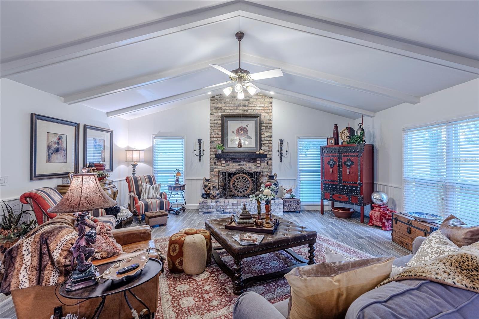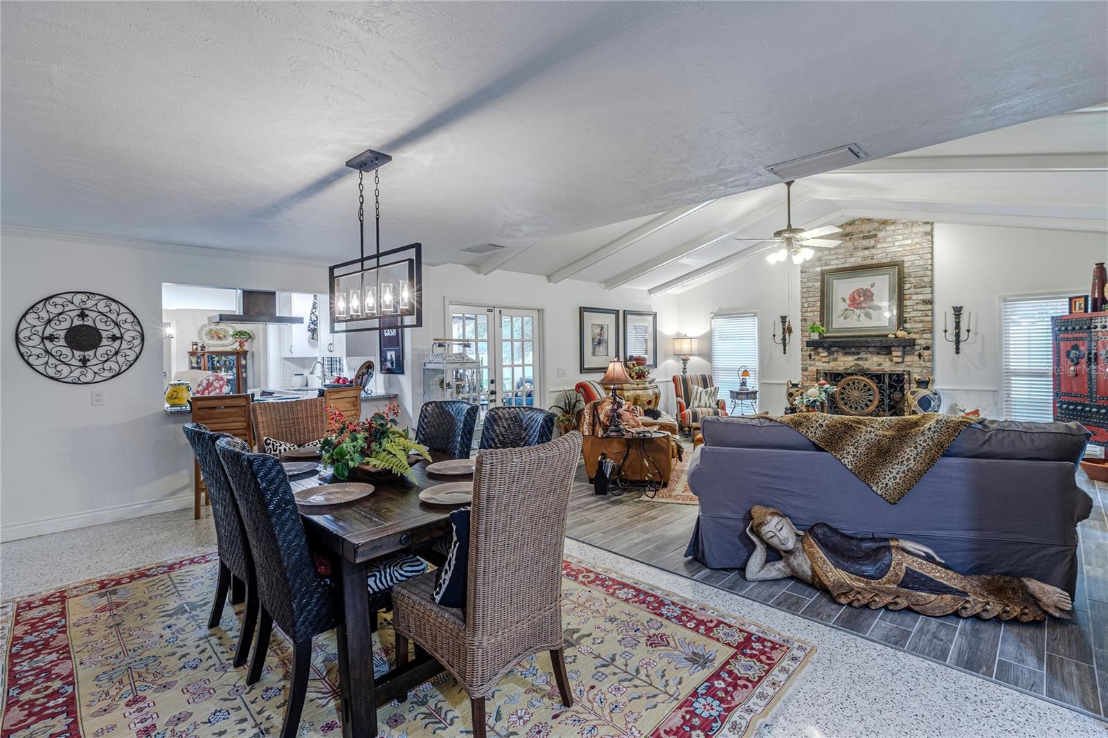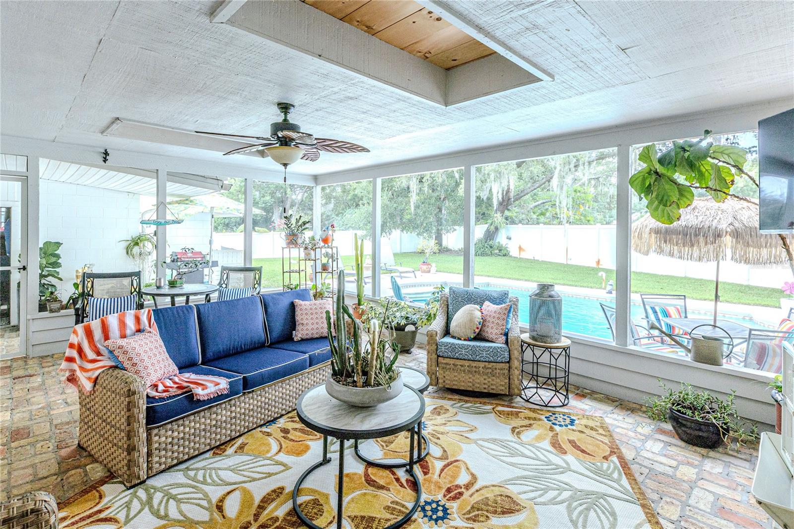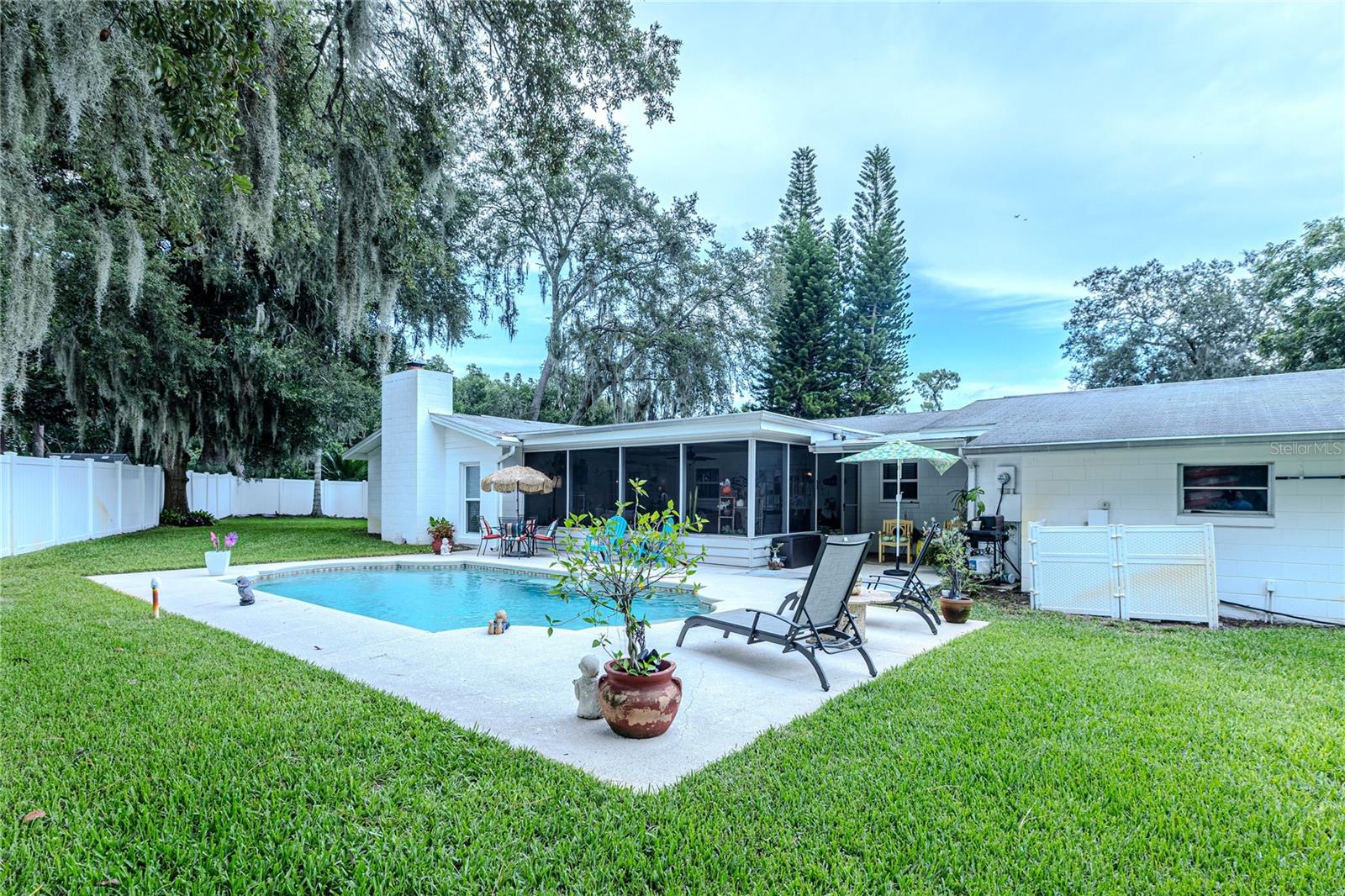 *Price Improvement* Remodeled! 2BR/2BA with XL Garage, Oversized Vinyl Fenced In Yard, Screened In Spacious Back Porch with ceiling fan, Fabulous pool, and nearly 2000 square ft of living space! Feel like royalty of Kingswood Ct while sitting on the covered and long front porch with a grand view of your whole neighborhood. Discover this beautifully remodeled Sanford gem in a quiet, well-kept cul-de-sac neighborhood near the Lake Mary border, creating privacy, a feeling of safety, and a sense of community. The entire property has been meticulously maintained from the front porch to the gorgeous backyard. As you enter, you’ll find a flex space, currently being used as a living room, that leads to an open layout filled with natural light and a stylish family room with vaulted ceilings, wood burning fireplace, and a spacious dining area. The entire home features wood-look ceramic tile and beautifully Restored Original TERRAZZO flooring! The renovated kitchen boasts sleek granite countertops, GE Cafe Platinum Glass Induction Range and Hood, custom made soft closing cabinetry and drawers, stainless steel appliances, breakfast bar, and a breakfast nook—perfect for everyday living, incredible dinner parties, and entertaining. Both bathrooms have been tastefully updated with modern fixtures and finishes. The house has a convenient split plan providing needed privacy and space. The air conditioned laundry room is located inside, between the kitchen and the garage. Step outside from the Kitchen or Family Room's French Doors to a spacious, screened-in back porch that offers the perfect spot for morning coffee, movie nights, or evening unwinding, overlooking your sparkling volleyball designed pool and the large back yard ideal for pets, play, or more entertaining and relaxation! Additional highlights include, New Hot Water Heater(2024), New A/C unit(2024), New Septic System(2023), updated double paned windows and doors(2020), an oversized garage with room for storage or a workshop, Owl Home Security System, no HOA, and a prime location just minutes from golfing, shopping, dining, and top-rated schools in Lake Mary and Sanford. This is the low-maintenance, high-comfort home you’ve been waiting for. Schedule your private tour today!