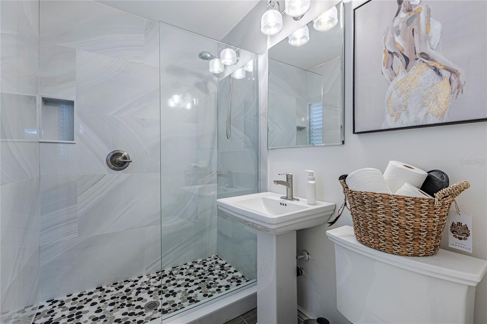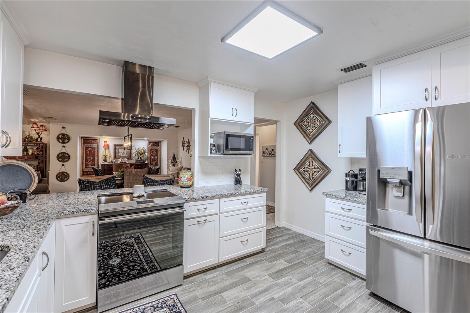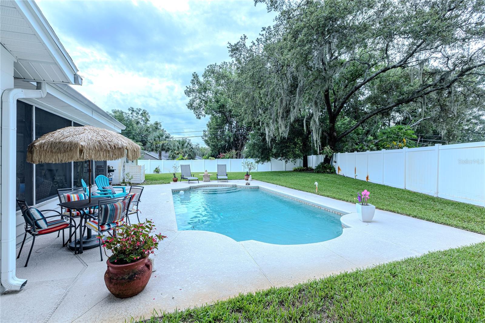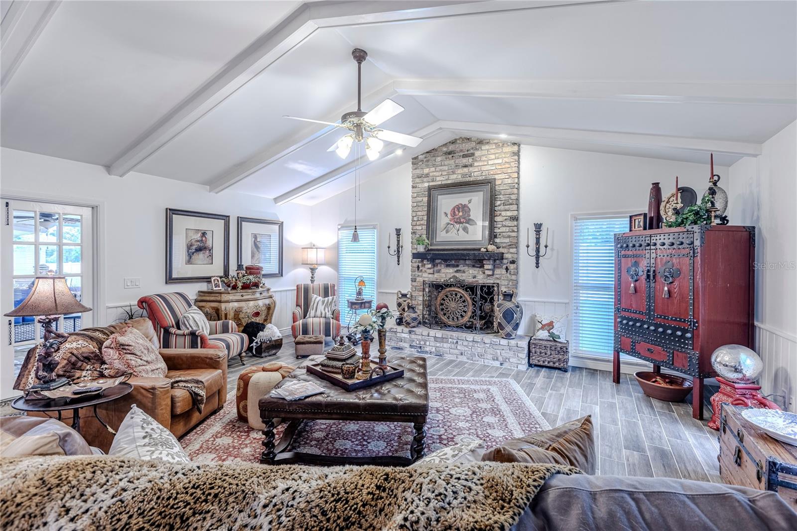 *Price Improvement* Remodeled! 2BR/2BA with XL Garage, Oversized Vinyl Fenced In Yard, Screened In Spacious Back Porch with ceiling fan, Fabulous pool, and nearly 2000 square ft of living space! Feel like royalty of Kingswood Ct while sitting on the covered and long front porch with a grand view of your whole neighborhood. Discover this beautifully remodeled Sanford gem in a quiet, well-kept cul-de-sac neighborhood near the Lake Mary border, creating privacy, a feeling of safety, and a sense of community. The entire property has been meticulously maintained from the front porch to the gorgeous backyard. As you enter, you’ll find a flex space, currently being used as a living room, that leads to an open layout filled with natural light and a stylish family room with vaulted ceilings, wood burning fireplace, and a spacious dining area. The entire home features wood-look ceramic tile and beautifully Restored Original TERRAZZO flooring! The renovated kitchen boasts sleek granite countertops, GE Cafe Platinum Glass Induction Range and Hood, custom made soft closing cabinetry and drawers, stainless steel appliances, breakfast bar, and a breakfast nook—perfect for everyday living, incredible dinner parties, and entertaining. Both bathrooms have been tastefully updated with modern fixtures and finishes. The house has a convenient split plan providing needed privacy and space. The air conditioned laundry room is located inside, between the kitchen and the garage. Step outside from the Kitchen or Family Room's French Doors to a spacious, screened-in back porch that offers the perfect spot for morning coffee, movie nights, or evening unwinding, overlooking your sparkling volleyball designed pool and the large back yard ideal for pets, play, or more entertaining and relaxation! Additional highlights include, New Hot Water Heater(2024), New A/C unit(2024), New Septic System(2023), updated double paned windows and doors(2020), an oversized garage with room for storage or a workshop, Owl Home Security System, no HOA, and a prime location just minutes from golfing, shopping, dining, and top-rated schools in Lake Mary and Sanford. This is the low-maintenance, high-comfort home you’ve been waiting for. Schedule your private tour today!