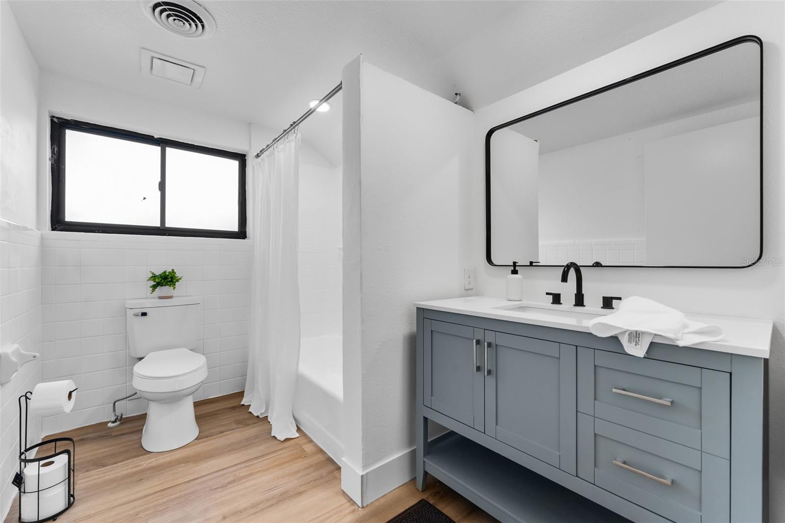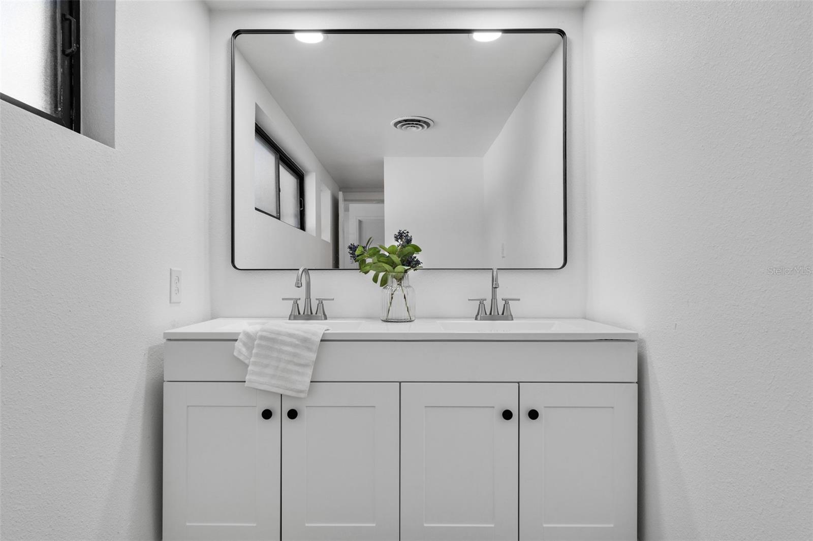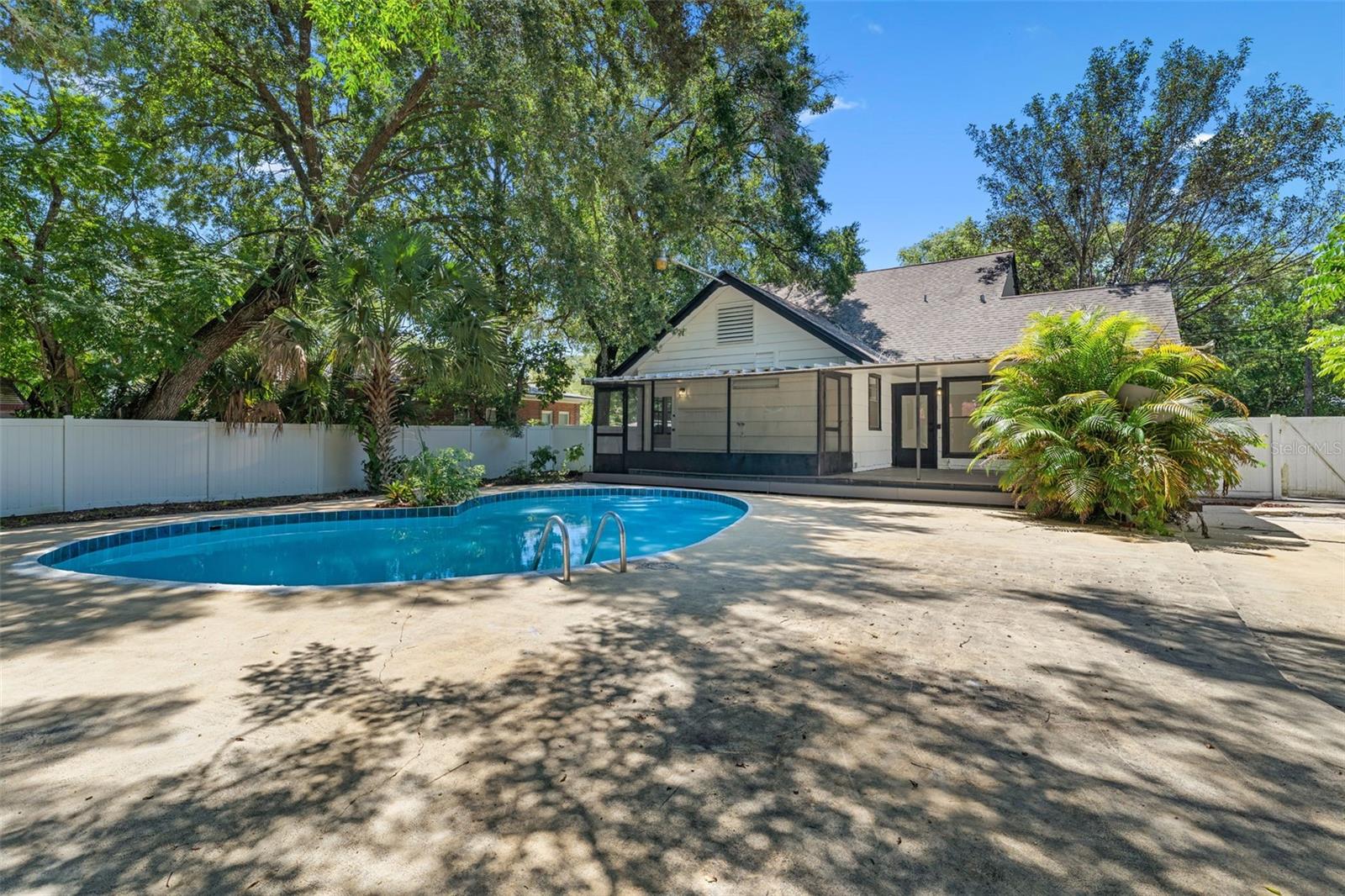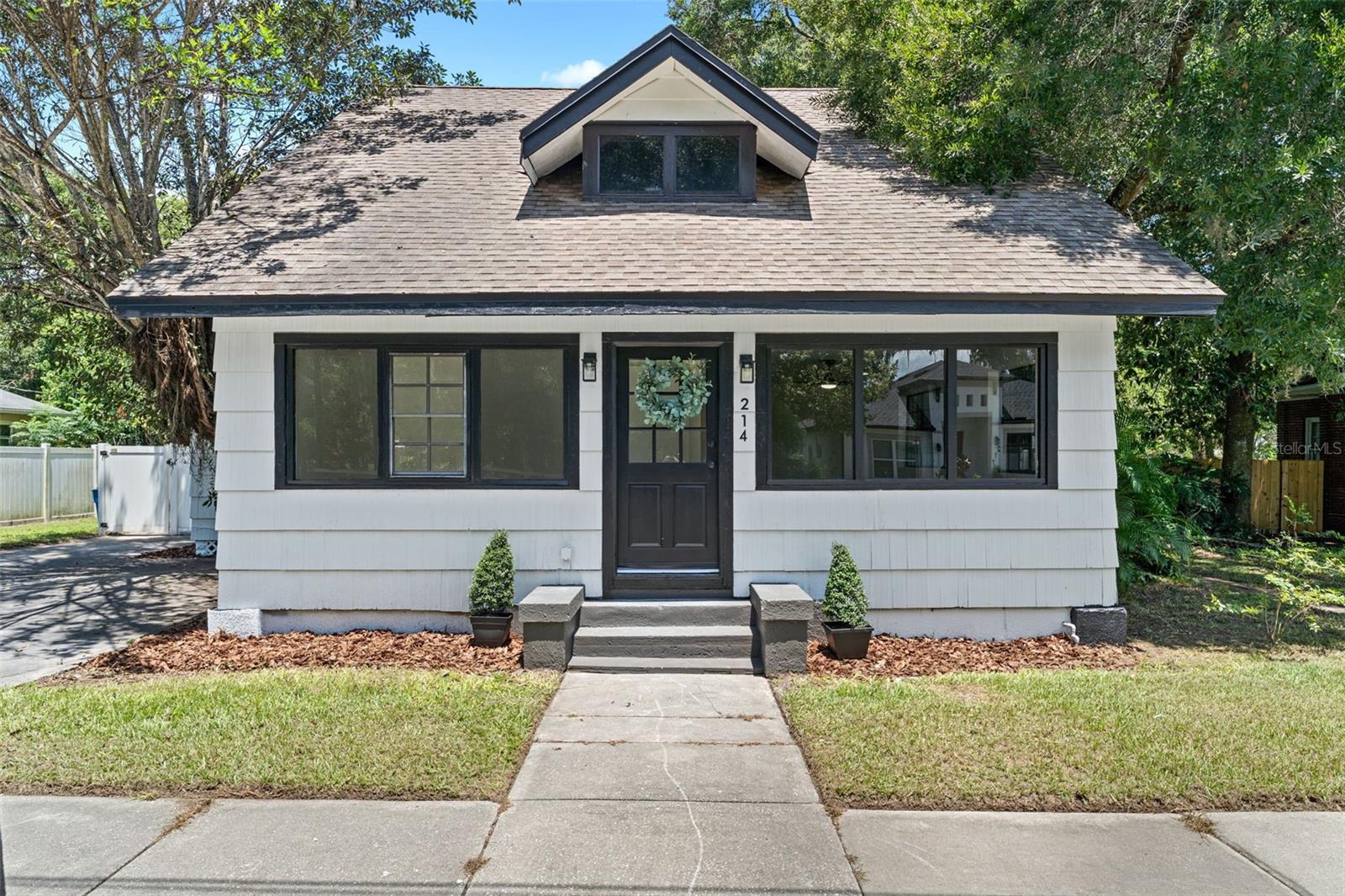 This beautifully remodeled 1930 American Craftsman Bungalow has been thoughtfully updated from top to bottom and is located in the heart of the Golf Cart District in Downtown Sanford. Major upgrades include a brand-new HVAC system, many modern updates including kitchen and all three bathrooms, features a 2018 roof, and a fully resurfaced in-ground pool with a freshly painted deck and brand-new pool pump. The entire home features new luxury vinyl plank flooring, updated lighting, and fresh interior paint and texture throughout. Offering four bedrooms and three bathrooms (two full and one half), the layout is both functional and stylish. The half bath is conveniently located near the back entrance for easy access from the pool. The open-concept kitchen has been completely renovated with soft-close white shaker cabinets, quartz countertops, stainless steel appliances, open wood shelving, a sleek vent hood, and modern fixtures. A spacious living/dining area lined with windows flows seamlessly into the open back porch, creating the ideal setting for entertaining or relaxing. The updated bathrooms include a newly tiled walk-in shower with a sliding glass door in the primary suite, new vanities, toilets, and upgraded fixtures. Outside, enjoy a fully fenced backyard with white vinyl privacy fencing, mature trees, and ample patio space around the pool, including a separate screened in porch area. Just minutes from Sanford’s vibrant downtown scene, the Riverwalk, parks, shops, and restaurants. Don’t miss this rare opportunity to own a piece of Sanford’s history, beautifully restored and move-in ready.