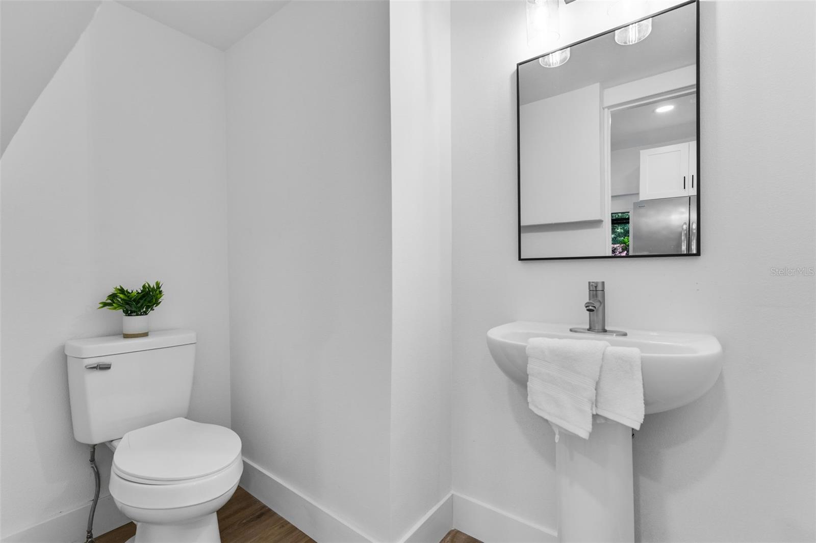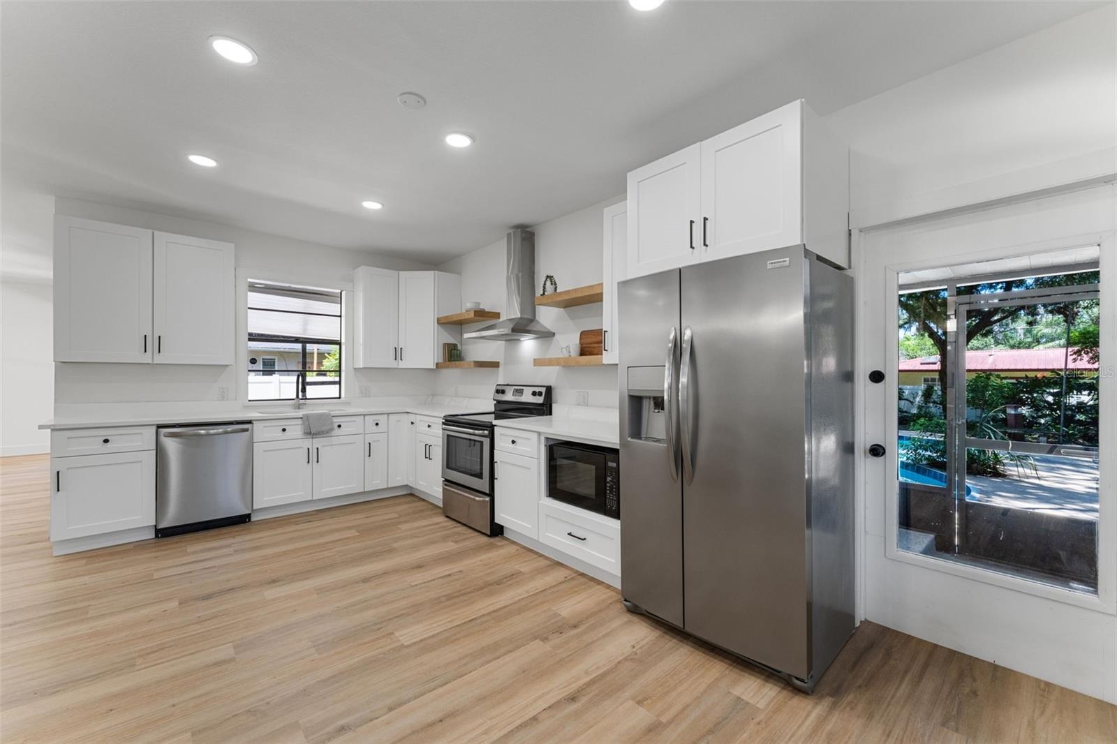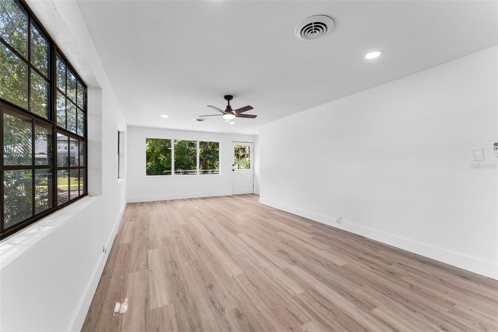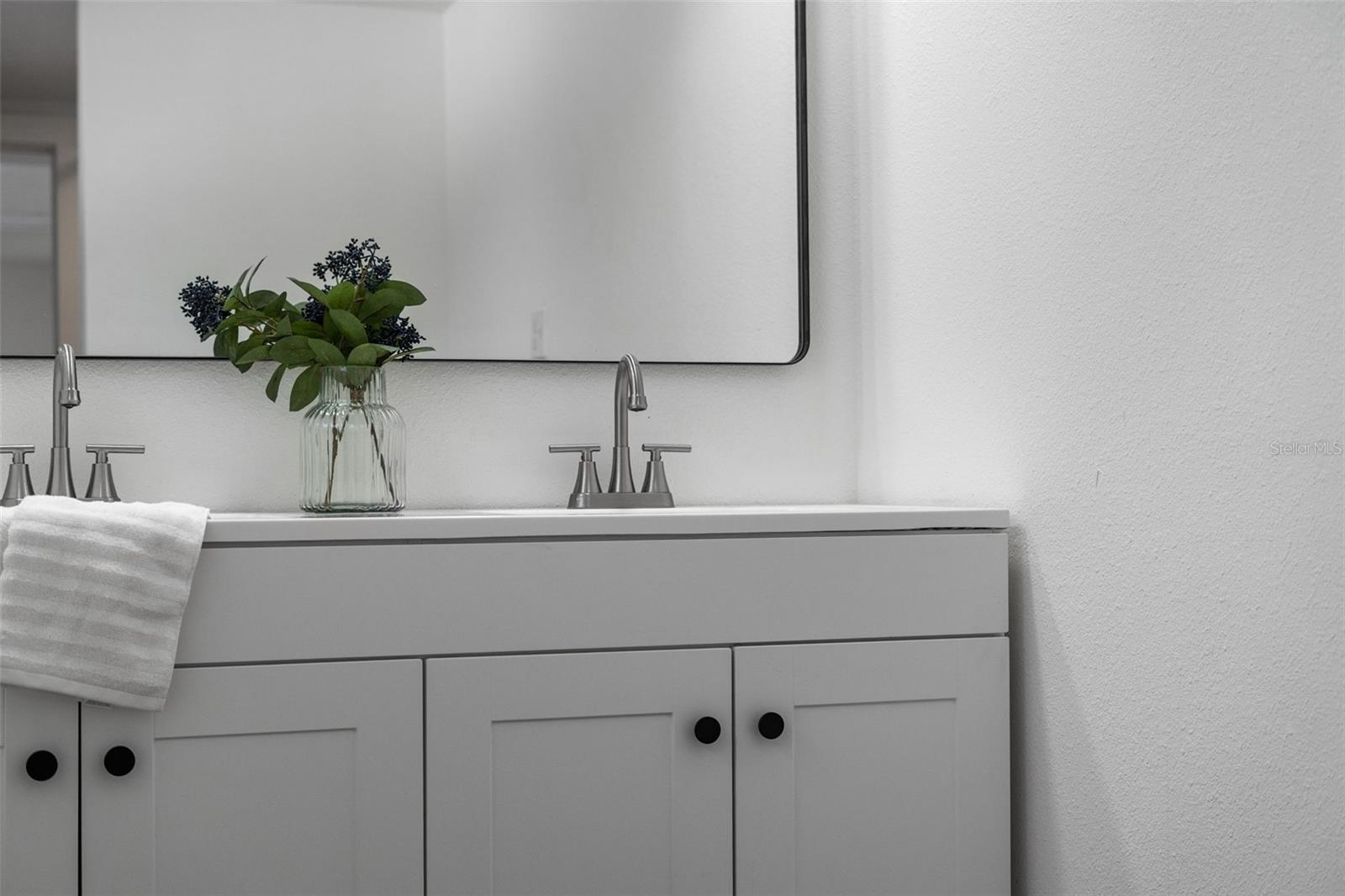 This beautifully remodeled 1930 American Craftsman Bungalow has been thoughtfully updated from top to bottom and is located in the heart of the Golf Cart District in Downtown Sanford. Major upgrades include a brand-new HVAC system, many modern updates including kitchen and all three bathrooms, features a 2018 roof, and a fully resurfaced in-ground pool with a freshly painted deck and brand-new pool pump. The entire home features new luxury vinyl plank flooring, updated lighting, and fresh interior paint and texture throughout. Offering four bedrooms and three bathrooms (two full and one half), the layout is both functional and stylish. The half bath is conveniently located near the back entrance for easy access from the pool. The open-concept kitchen has been completely renovated with soft-close white shaker cabinets, quartz countertops, stainless steel appliances, open wood shelving, a sleek vent hood, and modern fixtures. A spacious living/dining area lined with windows flows seamlessly into the open back porch, creating the ideal setting for entertaining or relaxing. The updated bathrooms include a newly tiled walk-in shower with a sliding glass door in the primary suite, new vanities, toilets, and upgraded fixtures. Outside, enjoy a fully fenced backyard with white vinyl privacy fencing, mature trees, and ample patio space around the pool, including a separate screened in porch area. Just minutes from Sanford’s vibrant downtown scene, the Riverwalk, parks, shops, and restaurants. Don’t miss this rare opportunity to own a piece of Sanford’s history, beautifully restored and move-in ready.