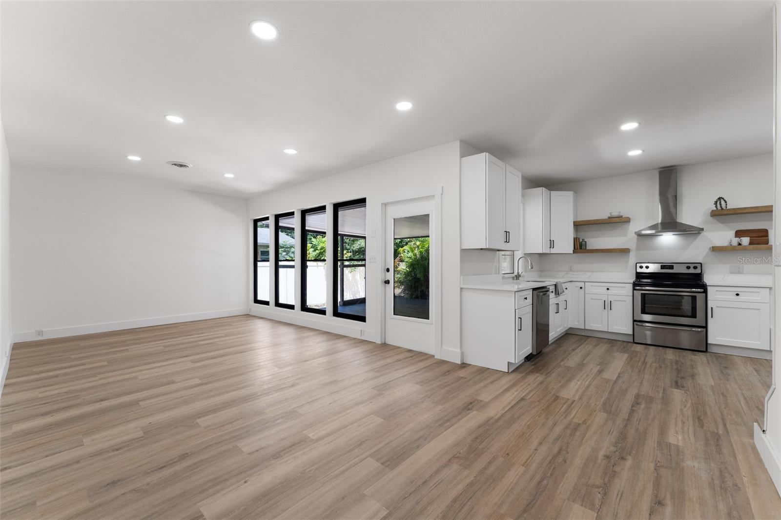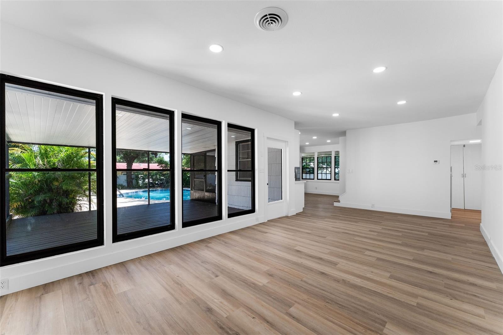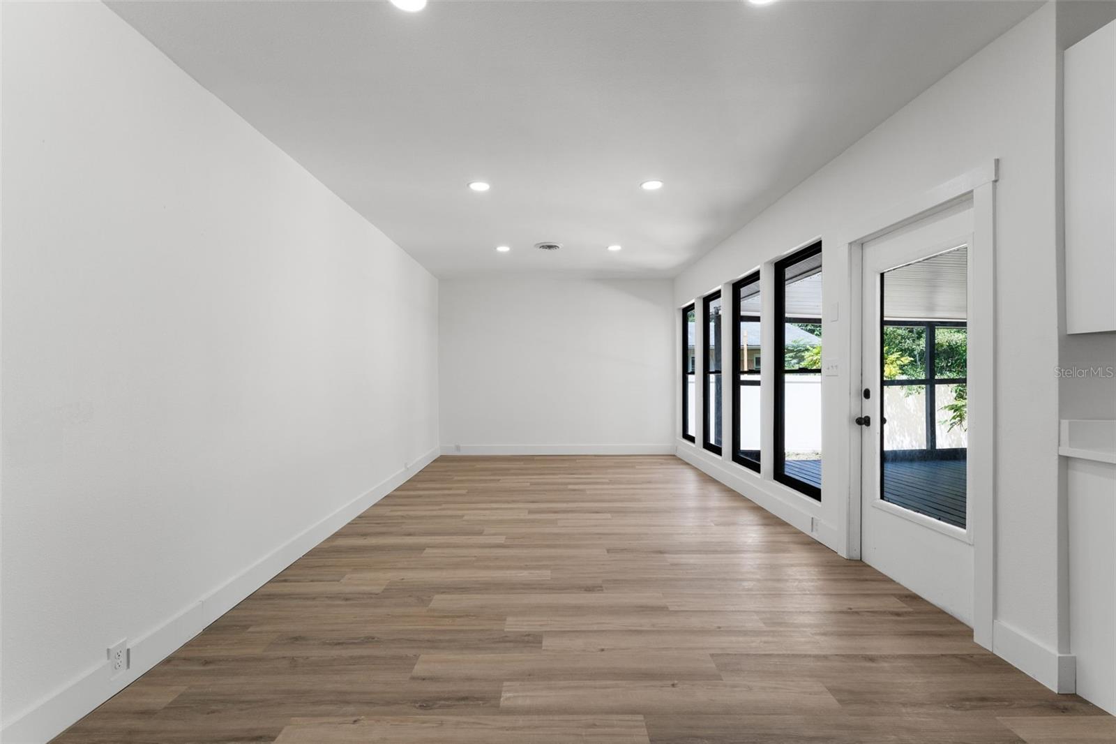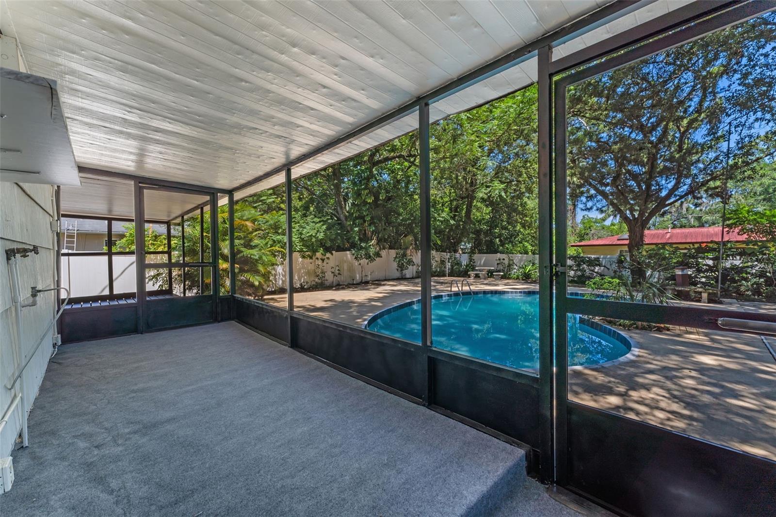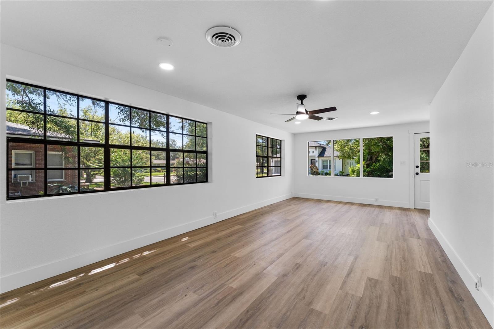 This beautifully remodeled 1930 American Craftsman Bungalow has been thoughtfully updated from top to bottom and is located in the heart of the Golf Cart District in Downtown Sanford. Major upgrades include a brand-new HVAC system, many modern updates including kitchen and all three bathrooms, features a 2018 roof, and a fully resurfaced in-ground pool with a freshly painted deck and brand-new pool pump. The entire home features new luxury vinyl plank flooring, updated lighting, and fresh interior paint and texture throughout. Offering four bedrooms and three bathrooms (two full and one half), the layout is both functional and stylish. The half bath is conveniently located near the back entrance for easy access from the pool. The open-concept kitchen has been completely renovated with soft-close white shaker cabinets, quartz countertops, stainless steel appliances, open wood shelving, a sleek vent hood, and modern fixtures. A spacious living/dining area lined with windows flows seamlessly into the open back porch, creating the ideal setting for entertaining or relaxing. The updated bathrooms include a newly tiled walk-in shower with a sliding glass door in the primary suite, new vanities, toilets, and upgraded fixtures. Outside, enjoy a fully fenced backyard with white vinyl privacy fencing, mature trees, and ample patio space around the pool, including a separate screened in porch area. Just minutes from Sanford’s vibrant downtown scene, the Riverwalk, parks, shops, and restaurants. Don’t miss this rare opportunity to own a piece of Sanford’s history, beautifully restored and move-in ready.
