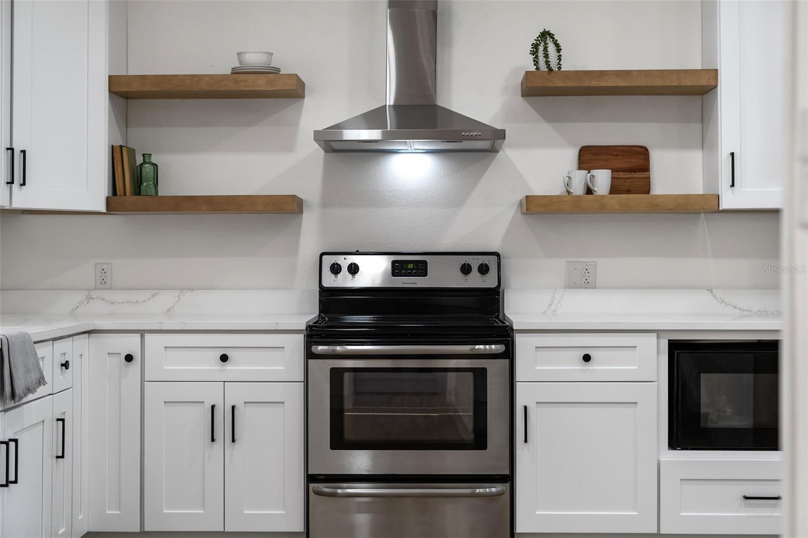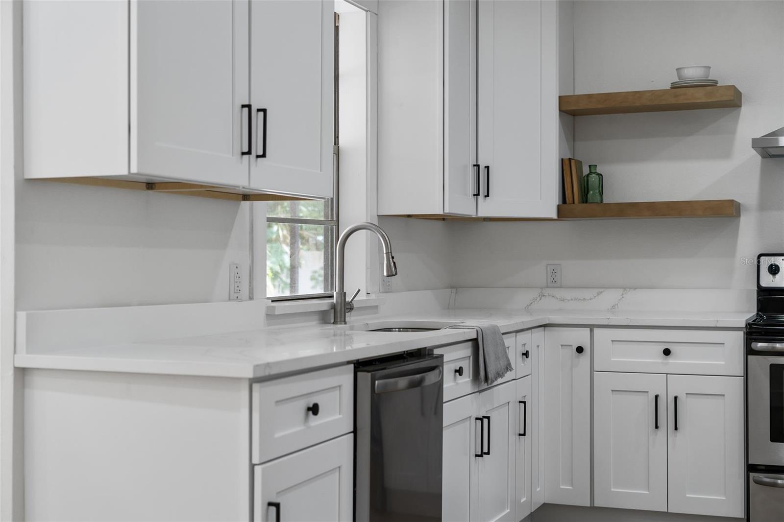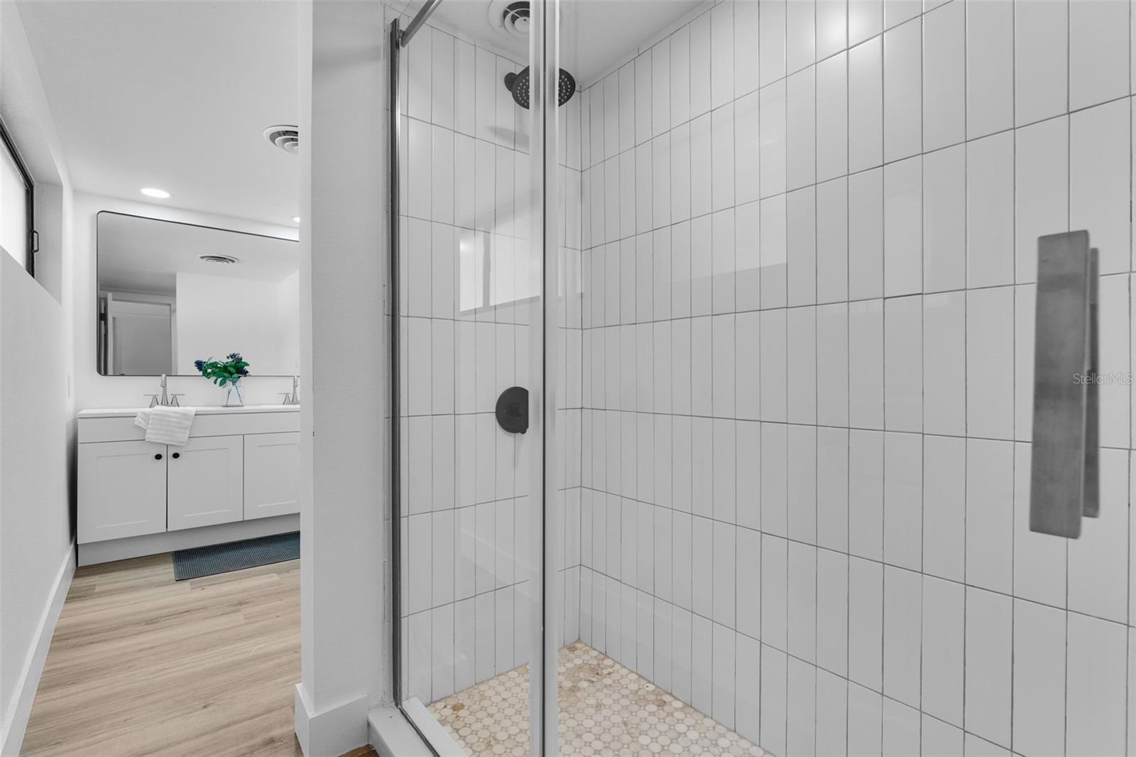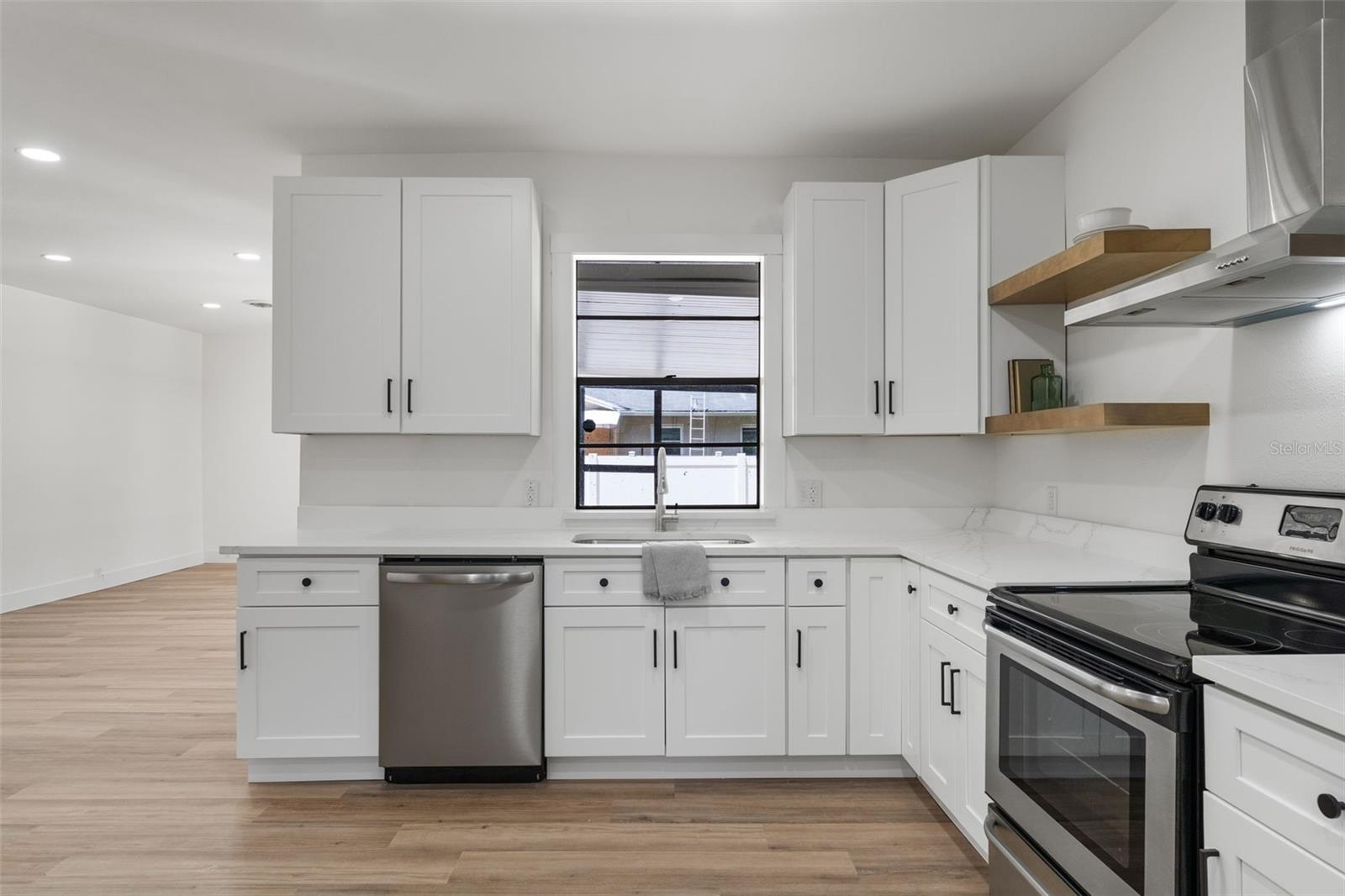 This beautifully remodeled 1930 American Craftsman Bungalow has been thoughtfully updated from top to bottom and is located in the heart of the Golf Cart District in Downtown Sanford. Major upgrades include a brand-new HVAC system, many modern updates including kitchen and all three bathrooms, features a 2018 roof, and a fully resurfaced in-ground pool with a freshly painted deck and brand-new pool pump. The entire home features new luxury vinyl plank flooring, updated lighting, and fresh interior paint and texture throughout. Offering four bedrooms and three bathrooms (two full and one half), the layout is both functional and stylish. The half bath is conveniently located near the back entrance for easy access from the pool. The open-concept kitchen has been completely renovated with soft-close white shaker cabinets, quartz countertops, stainless steel appliances, open wood shelving, a sleek vent hood, and modern fixtures. A spacious living/dining area lined with windows flows seamlessly into the open back porch, creating the ideal setting for entertaining or relaxing. The updated bathrooms include a newly tiled walk-in shower with a sliding glass door in the primary suite, new vanities, toilets, and upgraded fixtures. Outside, enjoy a fully fenced backyard with white vinyl privacy fencing, mature trees, and ample patio space around the pool, including a separate screened in porch area. Just minutes from Sanford’s vibrant downtown scene, the Riverwalk, parks, shops, and restaurants. Don’t miss this rare opportunity to own a piece of Sanford’s history, beautifully restored and move-in ready.