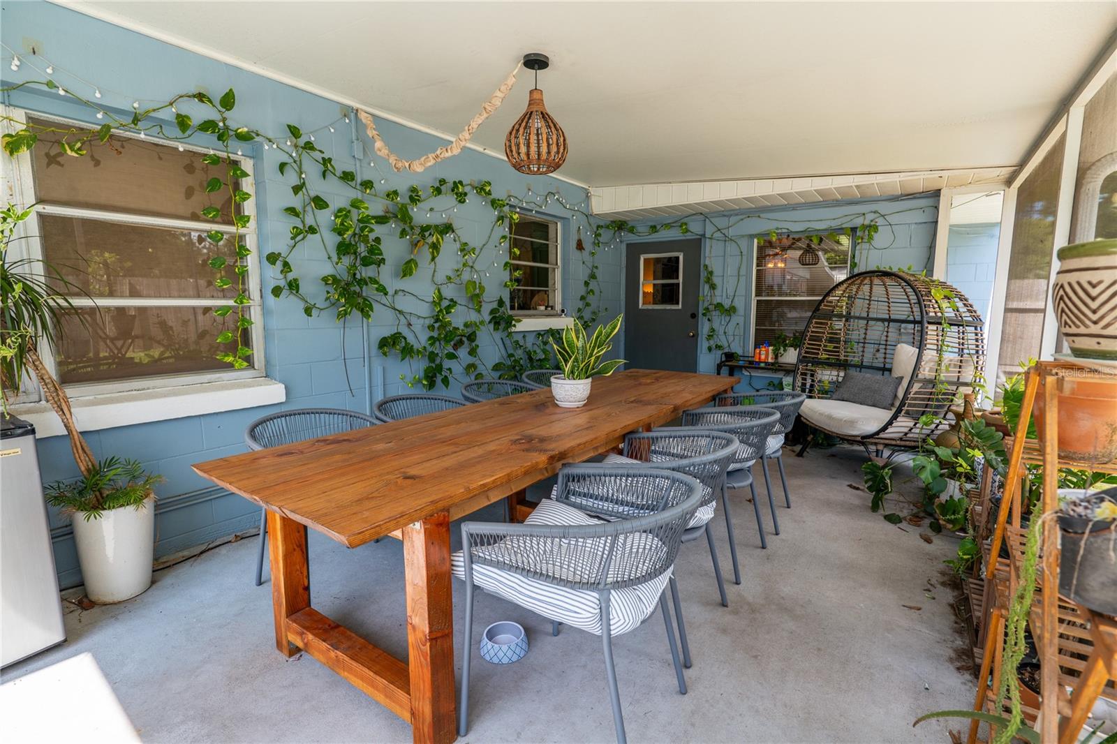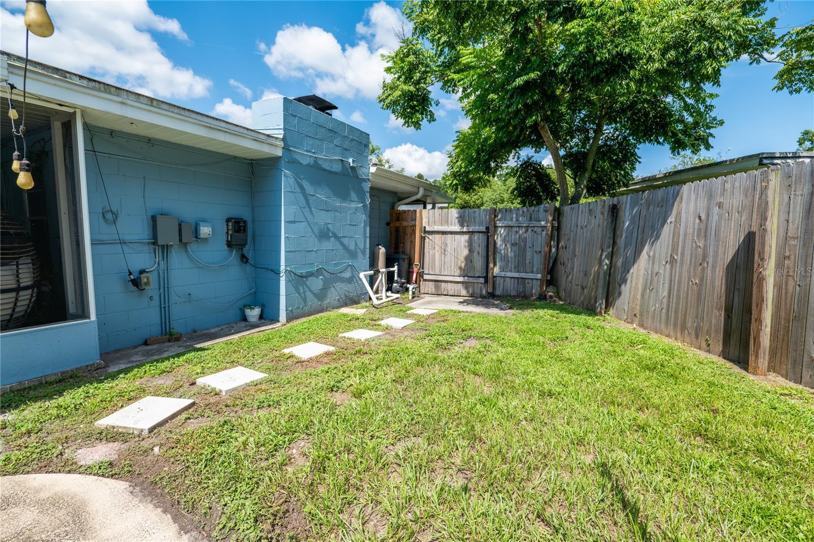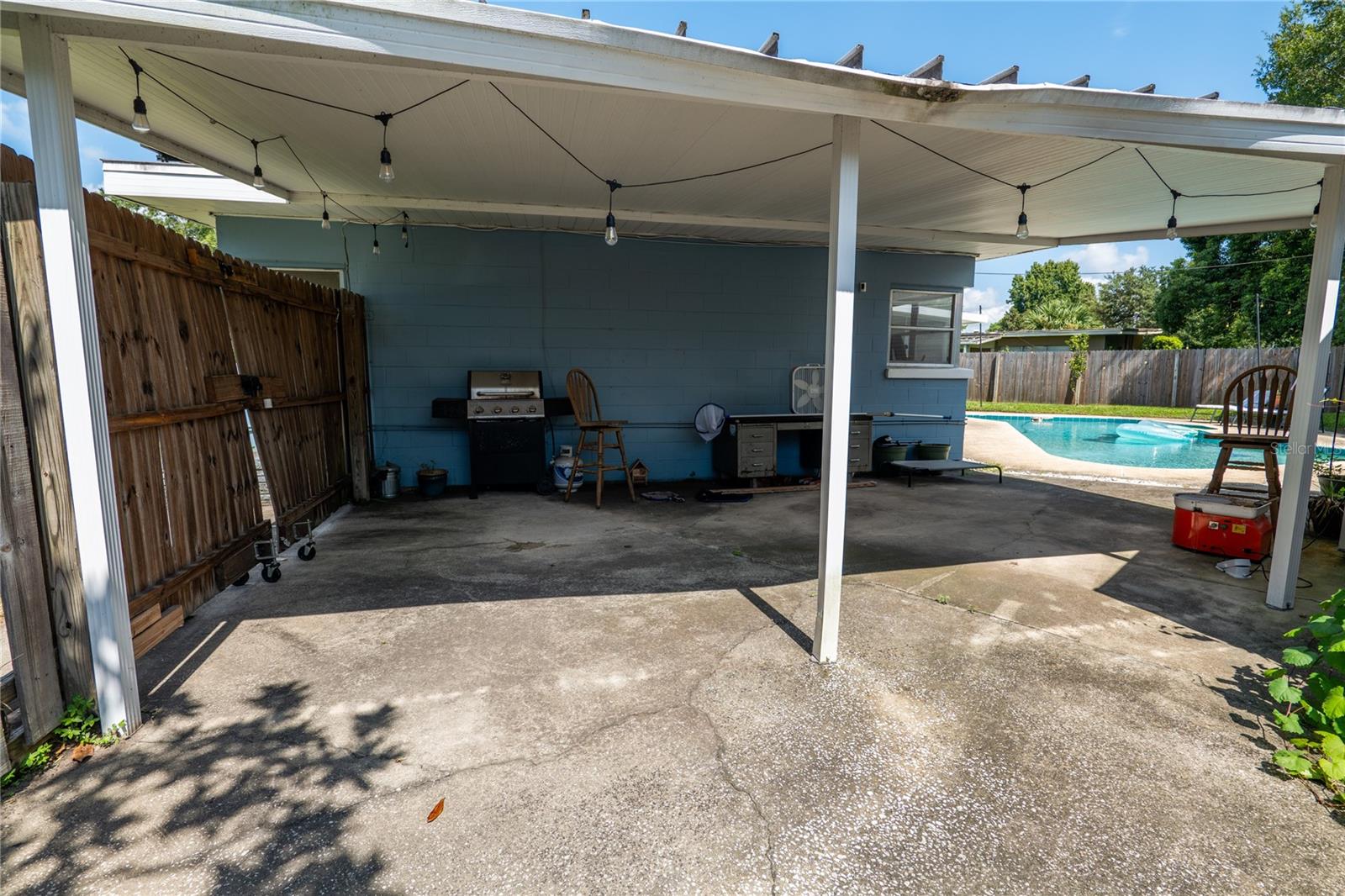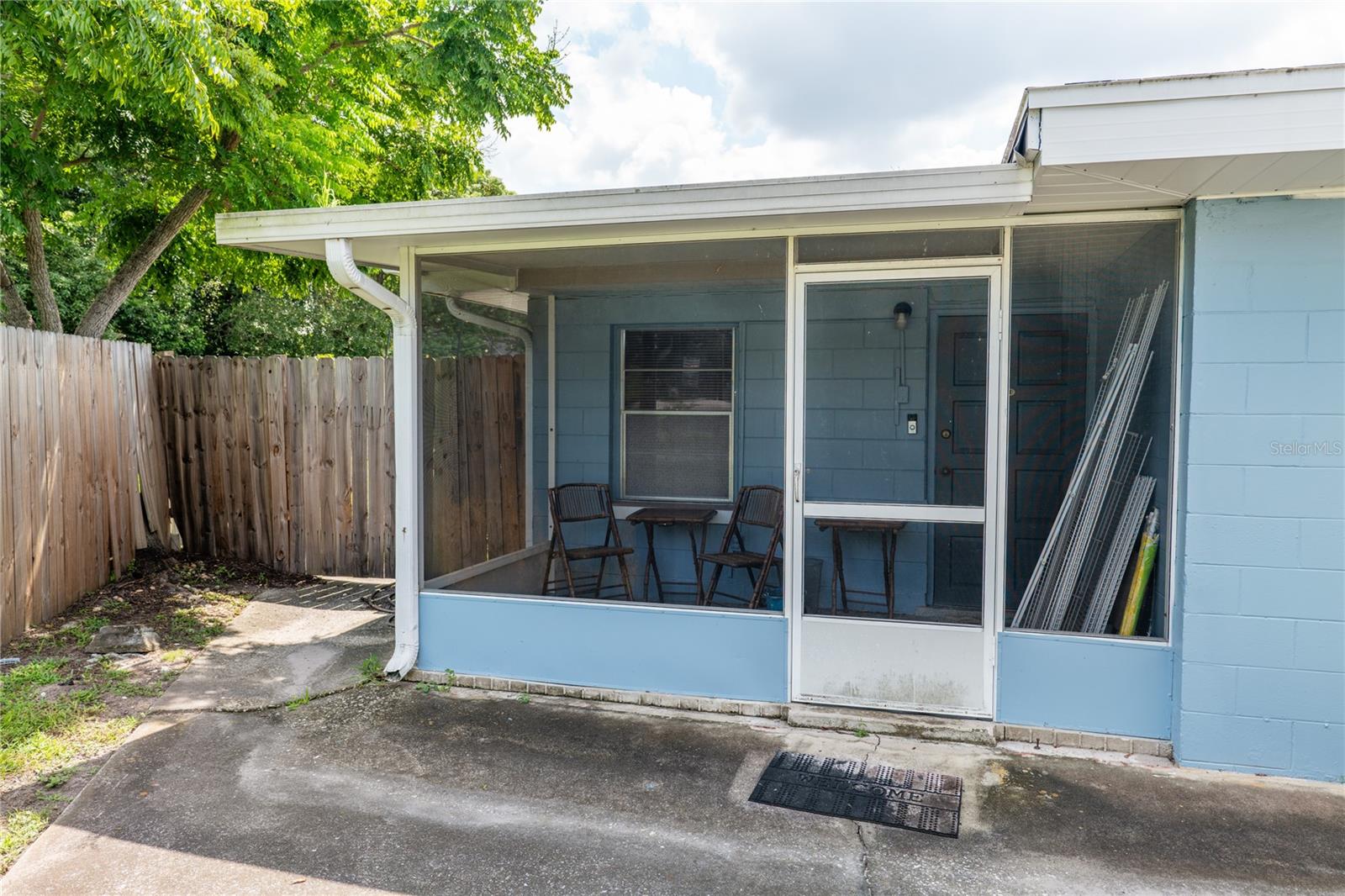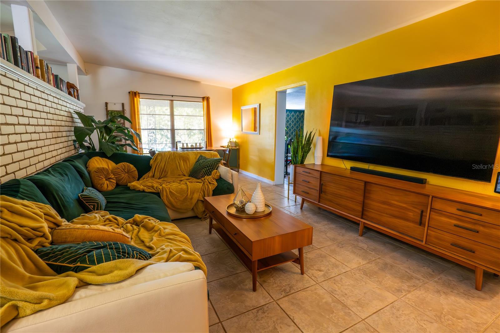 To experience a fully immersive walk-through of this home click on the Video or Virtual Tour button on this page. Step into timeless style and modern comfort with this beautifully maintained three-bedroom, two-bath mid-century modern home on a spacious quarter-acre lot. From the moment you arrive, you’ll notice the home’s character and inviting curb appeal. Inside, a bright and airy open layout welcomes you, highlighted by a neutral color palette and plenty of natural light. The generous living room with tile floors offers the perfect place to relax after a long day or entertain guests. Just off the living space, a versatile bonus room, currently used as a gym, could easily transform into a home office, playroom, or even a fourth bedroom to fit your lifestyle needs. The stylish kitchen is a true standout, featuring porcelain counters and backsplash, terrazzo floors, gold accents, stainless steel refrigerator & dishwasher, a wall oven, cooktop, and a cozy eat-in area. Adjacent to the living room, the warm and inviting sitting room with a brick fireplace, rich wood ceilings, and plenty of space for gatherings makes the perfect spot for game nights, reading by the fire, or entertaining family and friends. The primary suite offers comfort with terrazzo flooring, a ceiling fan, and a private bath featuring a modern vanity and tiled shower/tub combo. Two additional bedrooms provide flexibility for family, guests, or work-from-home setups, and share a second full bath with shower/tub. Step outside to your private backyard oasis. The large screened-in patio overlooks a sparkling saltwater pool, perfect for summer fun or year-round entertaining. The fully fenced yard provides both privacy and peace of mind, complete with a storage shed, carport, and two separate driveways for extra parking. Practical upgrades include solar panels for energy savings and a new pool pump and, 2020 roof for peace of mind. With no HOA, ample space for toys, boats, and a move-in ready interior, this home offers both style and convenience.