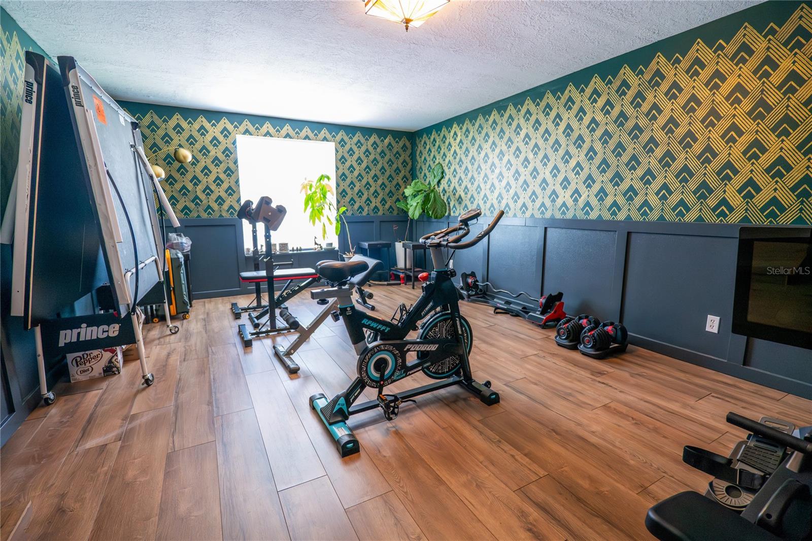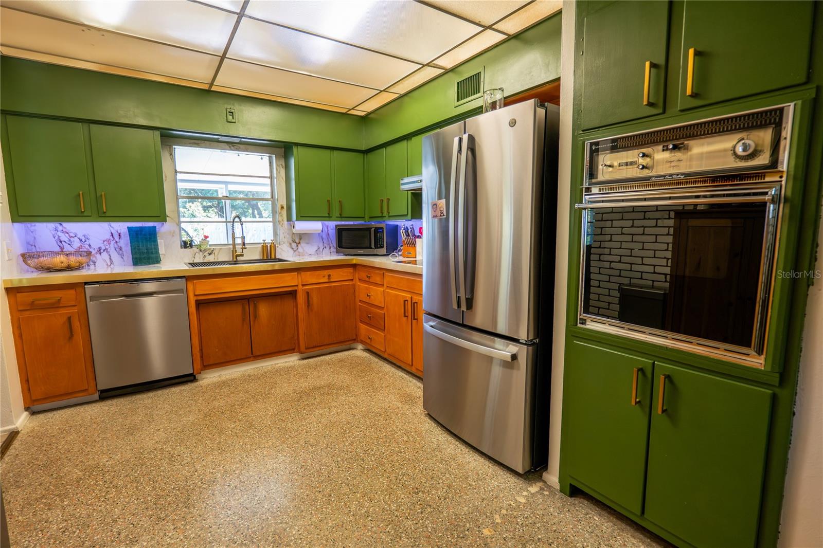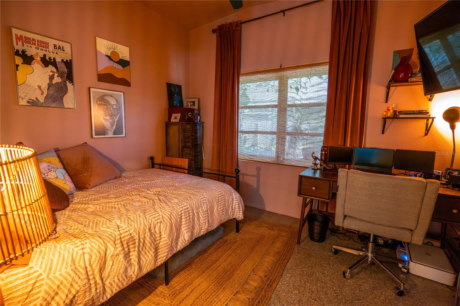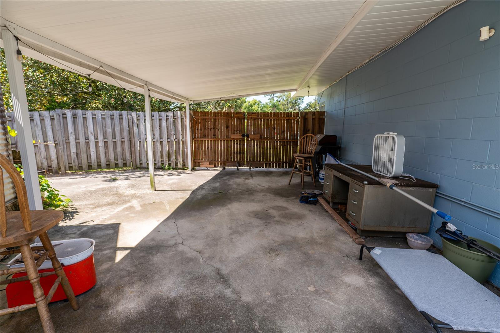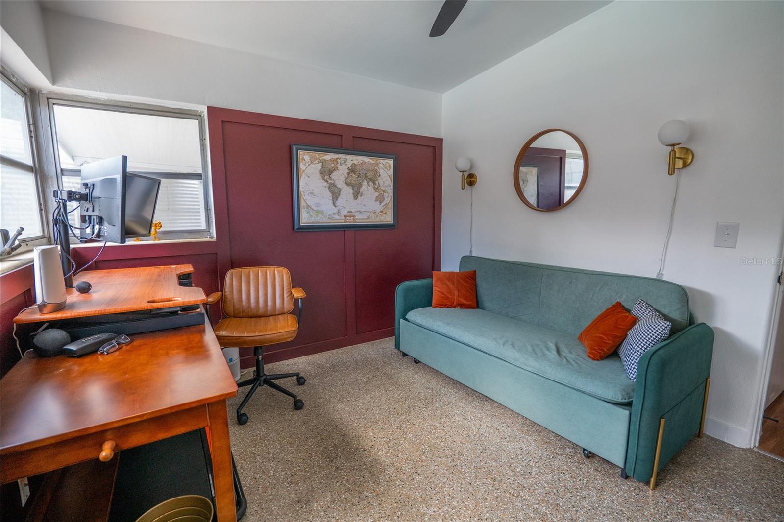 To experience a fully immersive walk-through of this home click on the Video or Virtual Tour button on this page. Step into timeless style and modern comfort with this beautifully maintained three-bedroom, two-bath mid-century modern home on a spacious quarter-acre lot. From the moment you arrive, you’ll notice the home’s character and inviting curb appeal. Inside, a bright and airy open layout welcomes you, highlighted by a neutral color palette and plenty of natural light. The generous living room with tile floors offers the perfect place to relax after a long day or entertain guests. Just off the living space, a versatile bonus room, currently used as a gym, could easily transform into a home office, playroom, or even a fourth bedroom to fit your lifestyle needs. The stylish kitchen is a true standout, featuring porcelain counters and backsplash, terrazzo floors, gold accents, stainless steel refrigerator & dishwasher, a wall oven, cooktop, and a cozy eat-in area. Adjacent to the living room, the warm and inviting sitting room with a brick fireplace, rich wood ceilings, and plenty of space for gatherings makes the perfect spot for game nights, reading by the fire, or entertaining family and friends. The primary suite offers comfort with terrazzo flooring, a ceiling fan, and a private bath featuring a modern vanity and tiled shower/tub combo. Two additional bedrooms provide flexibility for family, guests, or work-from-home setups, and share a second full bath with shower/tub. Step outside to your private backyard oasis. The large screened-in patio overlooks a sparkling saltwater pool, perfect for summer fun or year-round entertaining. The fully fenced yard provides both privacy and peace of mind, complete with a storage shed, carport, and two separate driveways for extra parking. Practical upgrades include solar panels for energy savings and a new pool pump and, 2020 roof for peace of mind. With no HOA, ample space for toys, boats, and a move-in ready interior, this home offers both style and convenience.