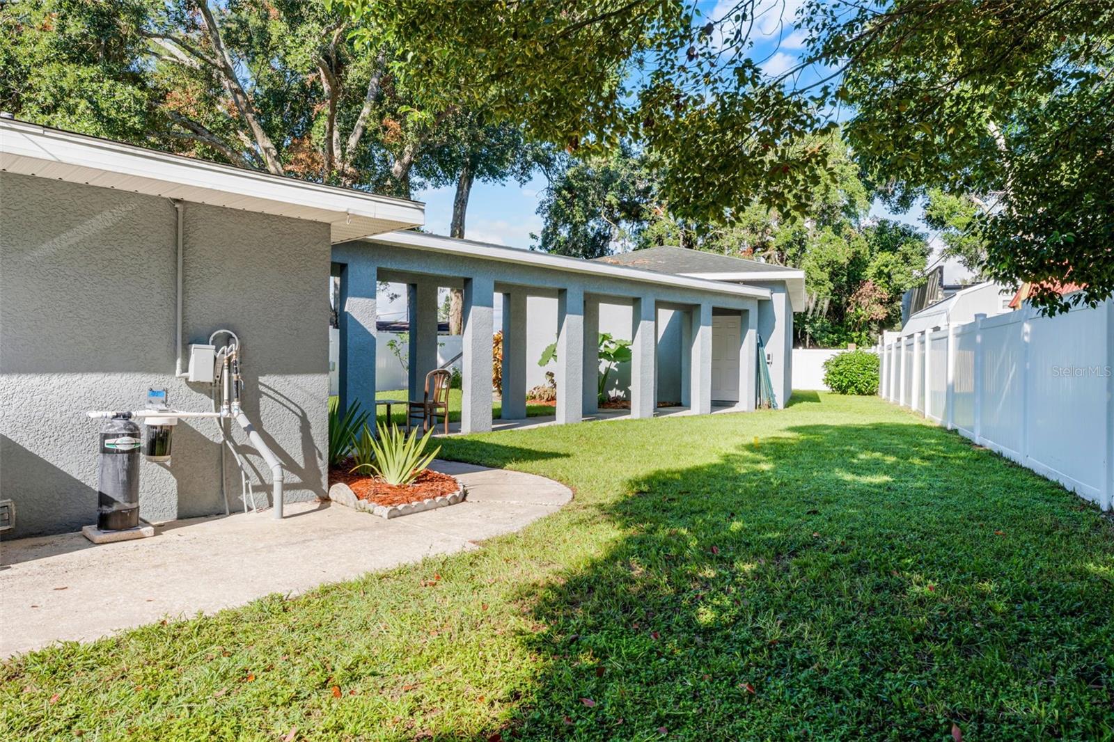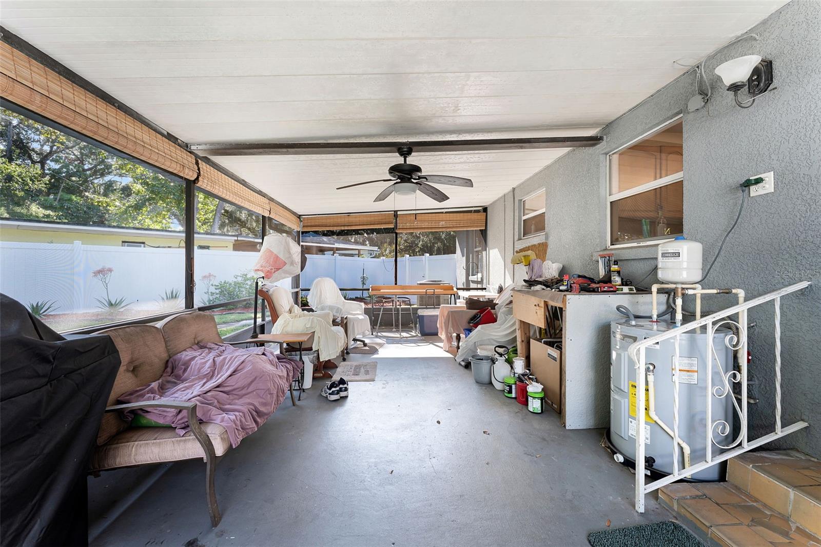 REDUCED !!! Step into the Garden of Eden in the Middle of Sanford. This meticulously maintained, well lit, 3 bedroom 2 bath home in the center of town is enveloped by the mature, fully wooded neighborhood only 1 mile from the SFB airport. The home interior includes a gas fireplace, city sewer and water, augmented by an attached water filtration system. Attached storm awnings provide both shade and protection from the elements. The fully screened rear patio offers quiet serenity and a green view of the back landscaping. The 0.31 acre lot is fully fenced, and the in-ground sprinkler system is serviced by a dedicated irrigation well. The detached high-ceilinged, oversized 2 car garage has space and setup for a workshop or outdoor office. The sellers are offering a home warranty for the owners peace of mind. The home needs to be seen to be appreciated. Make your showing appointment today. No owner financing.