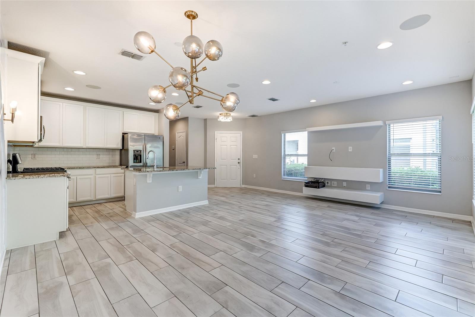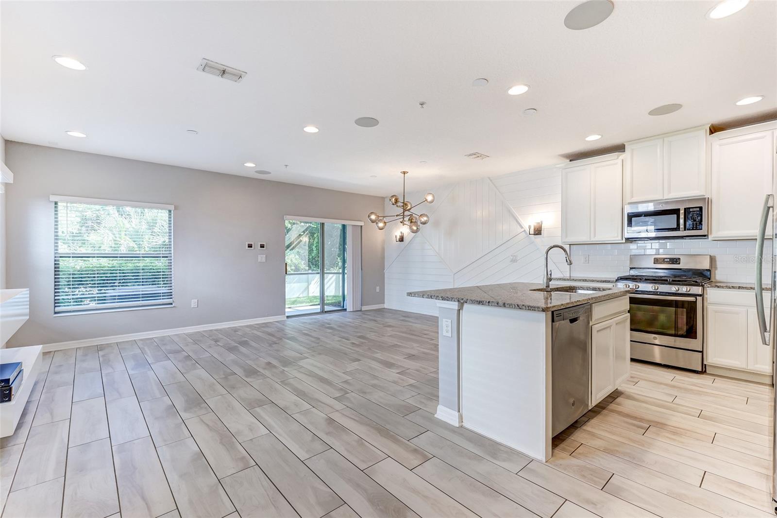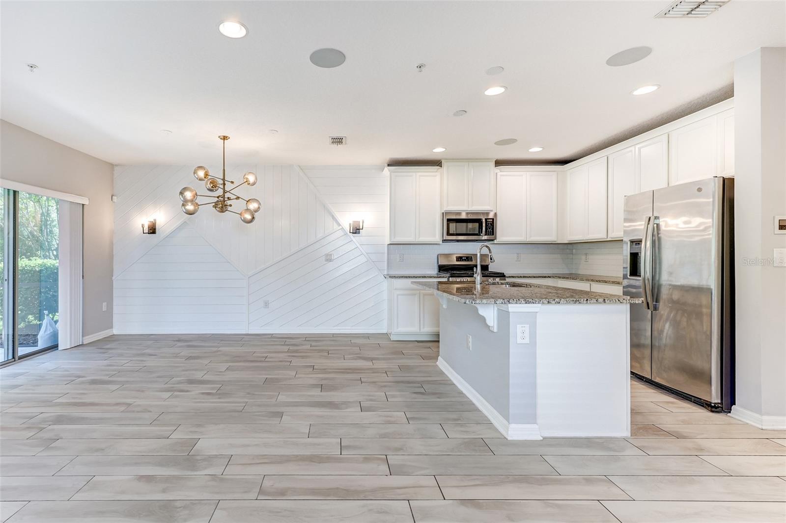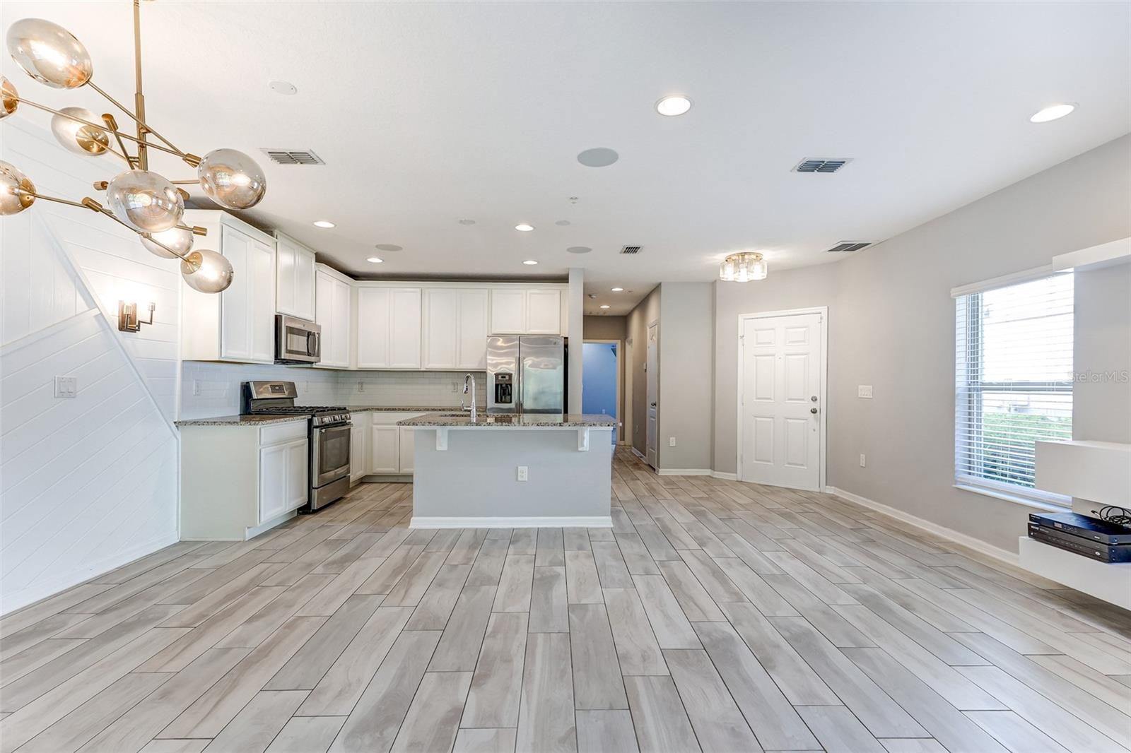 Stunning End-Unit Townhome – Former Model with Upgrades Throughout! This beautifully designed 1,745 sq. ft. end-unit townhome (former model home) offers 4 bedrooms, 3 full baths, a 1-car garage, and a 2-car wide brick-paved driveway. Its end-unit placement provides extra privacy, additional outdoor living space, and the feel of a single-family home. Inside, the open-concept floorplan seamlessly connects the kitchen, dining, and great room. Stylish floating shelves around the TV create a clean, modern look, while a feature trim wall and statement light fixtures—including sconces and a chandelier—add sophistication to the dining area, which comfortably seats six. The chef’s kitchen is a true highlight, featuring granite countertops, a center island with sink and seating, 42” linen cabinetry, subway tile backsplash, and a full suite of GE® stainless steel appliances including a gas range. The screened-in patio extends your living space, perfect for relaxing or entertaining year-round. The first floor also offers a versatile bedroom and full bath, along with wood-look tile flooring for easy care and style. Upstairs, a spacious loft, laundry room, and linen closet provide convenience, while two secondary bedrooms and a hall bath sit toward the back. At the front, the owner’s suite impresses with a massive walk-in closet and a spa-like en-suite featuring dual sinks, a large walk-in shower with subway tile, and plenty of storage. This rare opportunity to own a model-quality home with thoughtful upgrades in a prime location won’t last long. Schedule your private showing today!