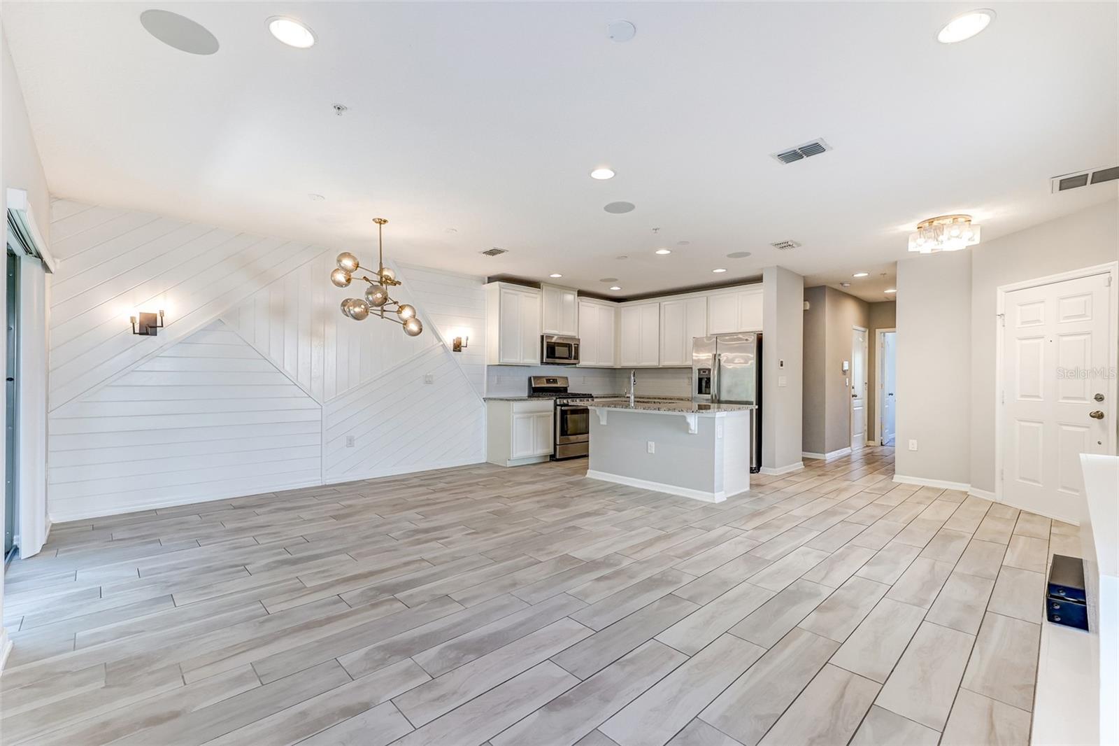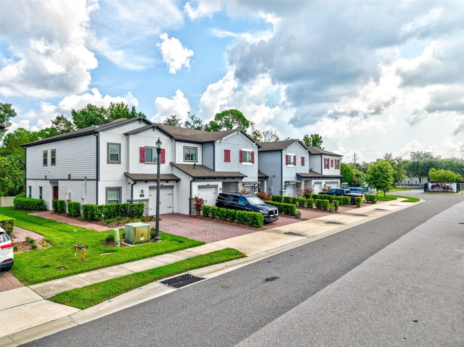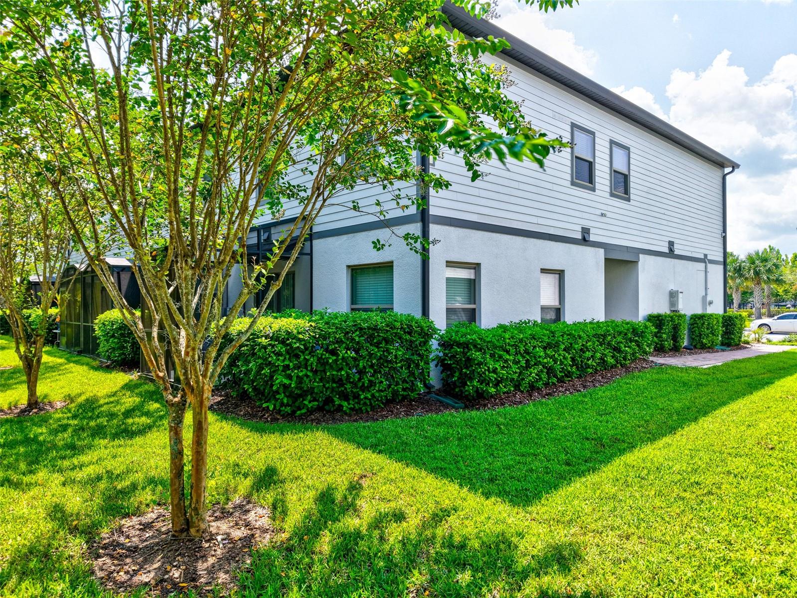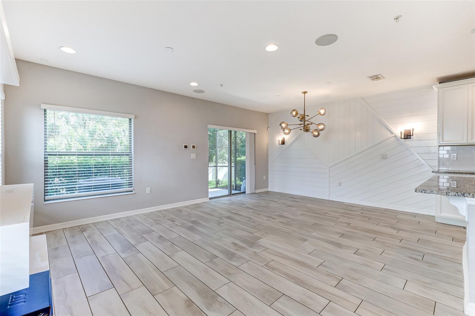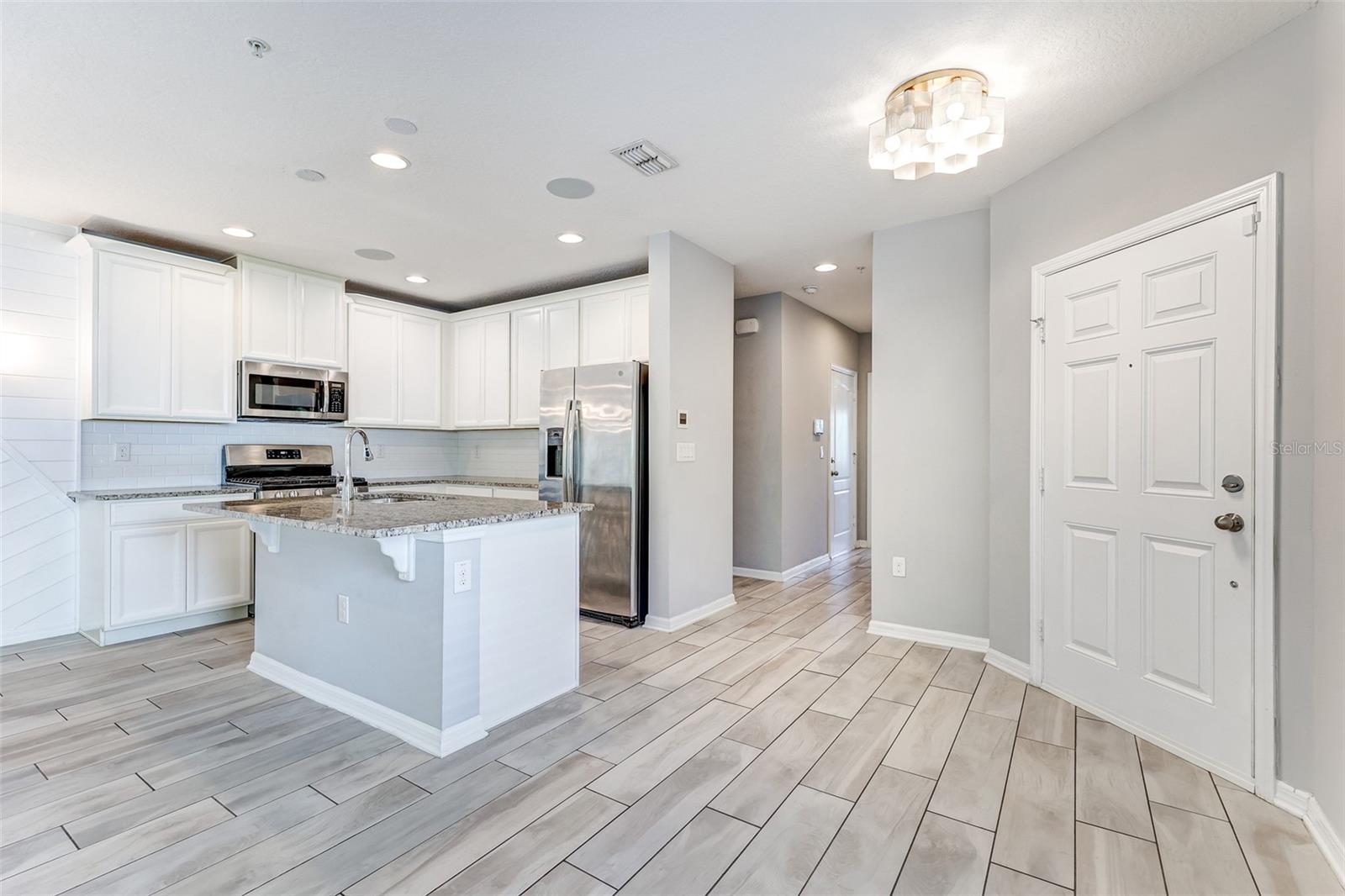 Stunning End-Unit Townhome – Former Model with Upgrades Throughout! This beautifully designed 1,745 sq. ft. end-unit townhome (former model home) offers 4 bedrooms, 3 full baths, a 1-car garage, and a 2-car wide brick-paved driveway. Its end-unit placement provides extra privacy, additional outdoor living space, and the feel of a single-family home. Inside, the open-concept floorplan seamlessly connects the kitchen, dining, and great room. Stylish floating shelves around the TV create a clean, modern look, while a feature trim wall and statement light fixtures—including sconces and a chandelier—add sophistication to the dining area, which comfortably seats six. The chef’s kitchen is a true highlight, featuring granite countertops, a center island with sink and seating, 42” linen cabinetry, subway tile backsplash, and a full suite of GE® stainless steel appliances including a gas range. The screened-in patio extends your living space, perfect for relaxing or entertaining year-round. The first floor also offers a versatile bedroom and full bath, along with wood-look tile flooring for easy care and style. Upstairs, a spacious loft, laundry room, and linen closet provide convenience, while two secondary bedrooms and a hall bath sit toward the back. At the front, the owner’s suite impresses with a massive walk-in closet and a spa-like en-suite featuring dual sinks, a large walk-in shower with subway tile, and plenty of storage. This rare opportunity to own a model-quality home with thoughtful upgrades in a prime location won’t last long. Schedule your private showing today!