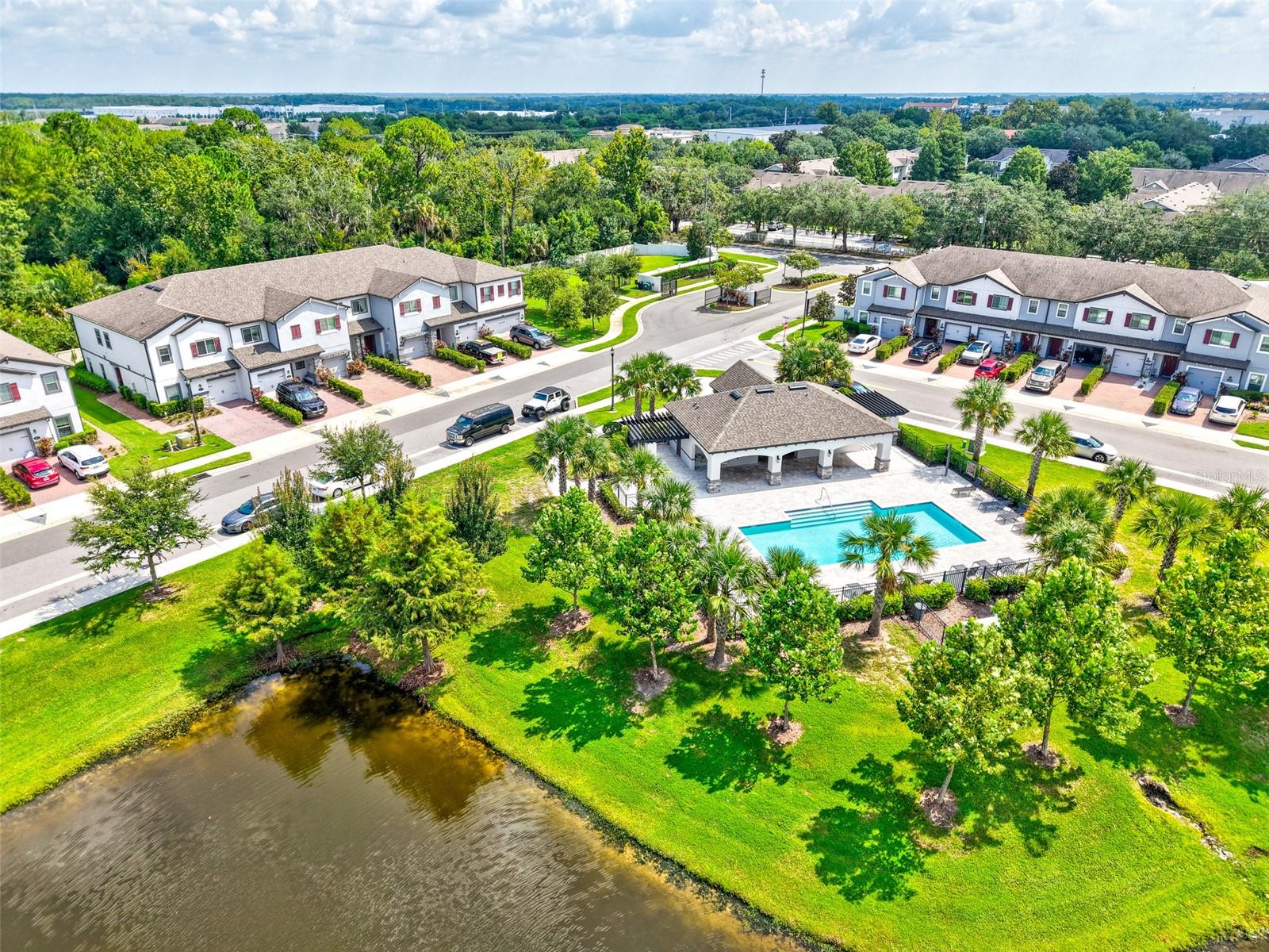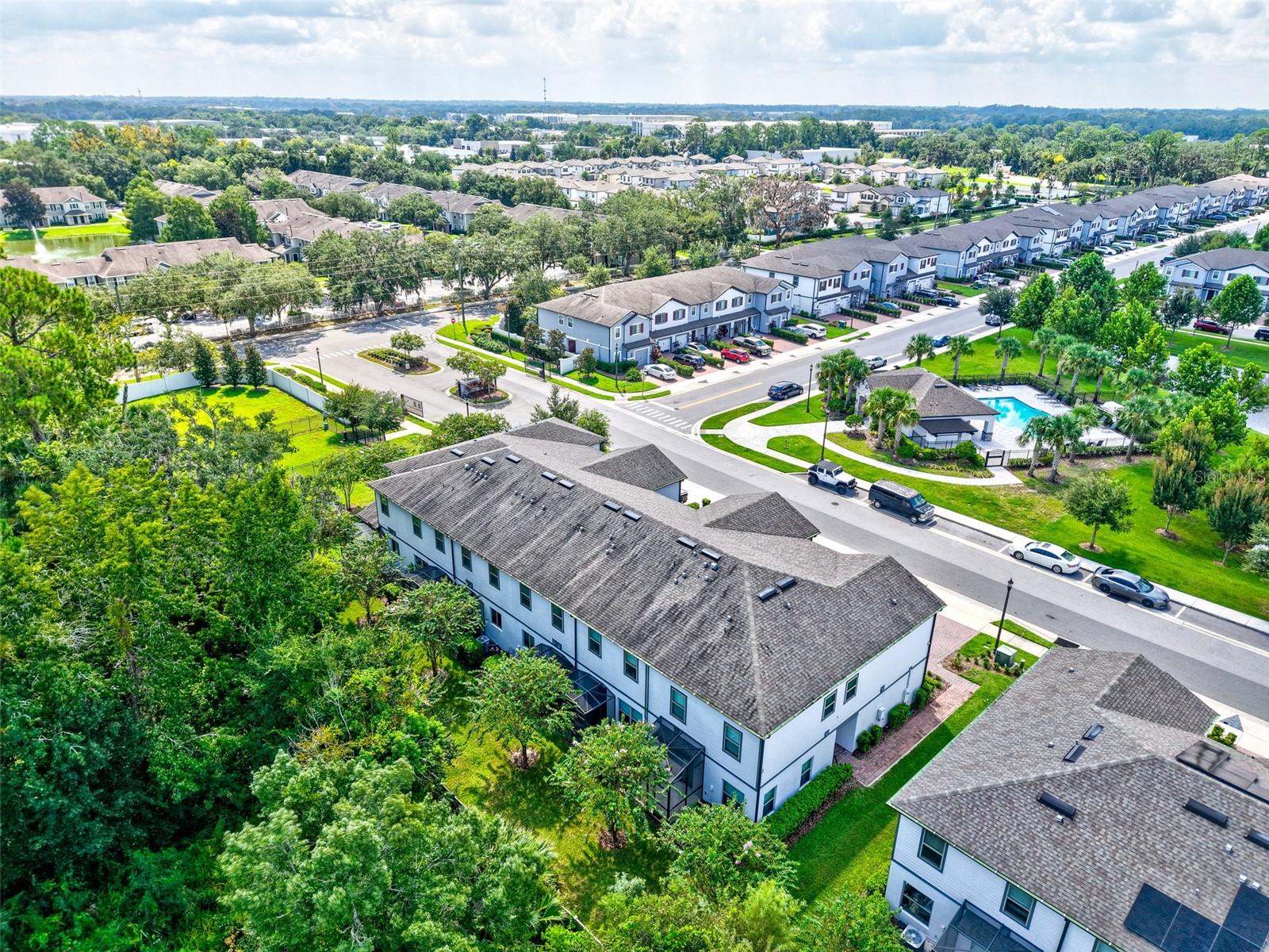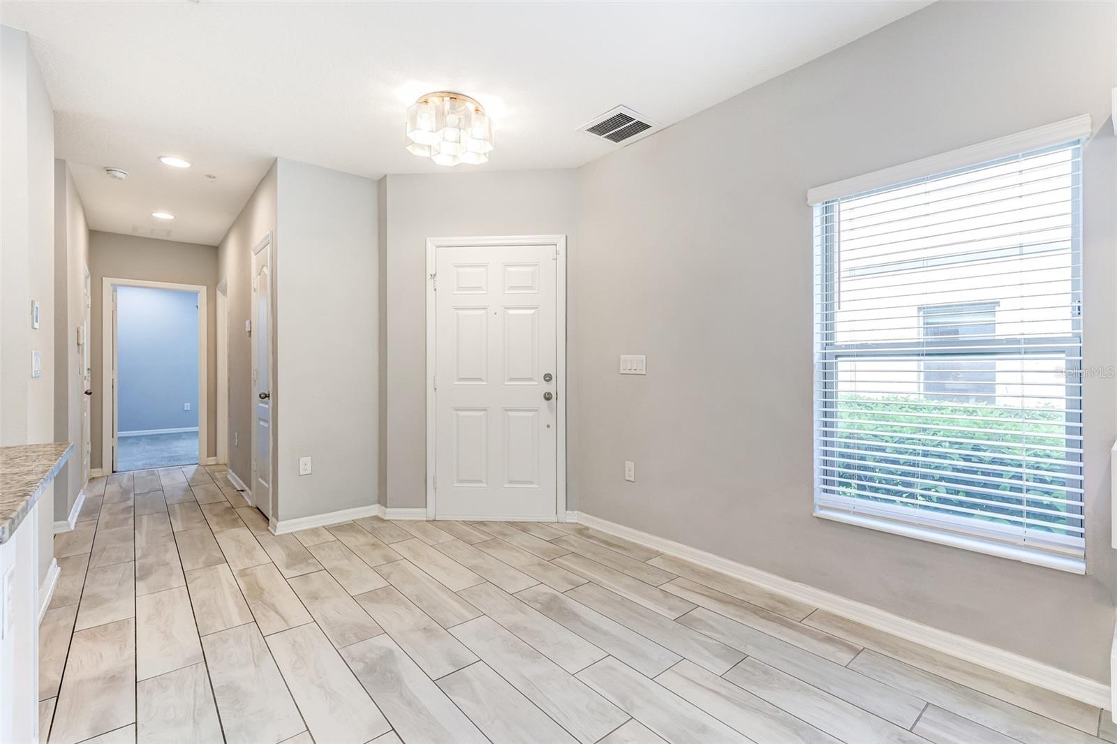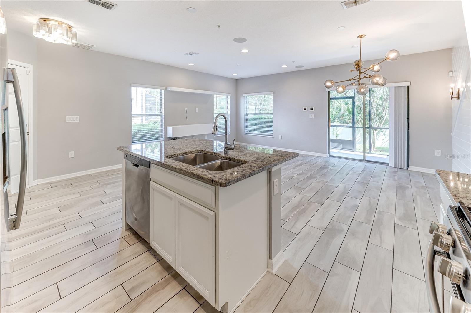 Stunning End-Unit Townhome – Former Model with Upgrades Throughout! This beautifully designed 1,745 sq. ft. end-unit townhome (former model home) offers 4 bedrooms, 3 full baths, a 1-car garage, and a 2-car wide brick-paved driveway. Its end-unit placement provides extra privacy, additional outdoor living space, and the feel of a single-family home. Inside, the open-concept floorplan seamlessly connects the kitchen, dining, and great room. Stylish floating shelves around the TV create a clean, modern look, while a feature trim wall and statement light fixtures—including sconces and a chandelier—add sophistication to the dining area, which comfortably seats six. The chef’s kitchen is a true highlight, featuring granite countertops, a center island with sink and seating, 42” linen cabinetry, subway tile backsplash, and a full suite of GE® stainless steel appliances including a gas range. The screened-in patio extends your living space, perfect for relaxing or entertaining year-round. The first floor also offers a versatile bedroom and full bath, along with wood-look tile flooring for easy care and style. Upstairs, a spacious loft, laundry room, and linen closet provide convenience, while two secondary bedrooms and a hall bath sit toward the back. At the front, the owner’s suite impresses with a massive walk-in closet and a spa-like en-suite featuring dual sinks, a large walk-in shower with subway tile, and plenty of storage. This rare opportunity to own a model-quality home with thoughtful upgrades in a prime location won’t last long. Schedule your private showing today!