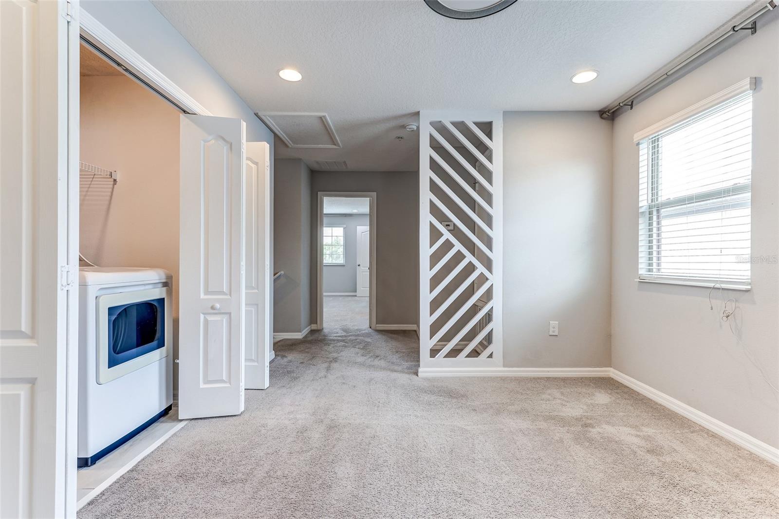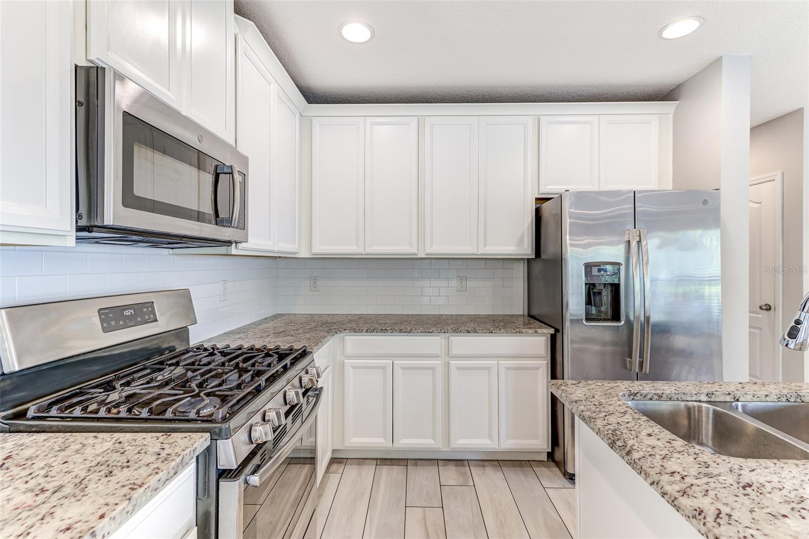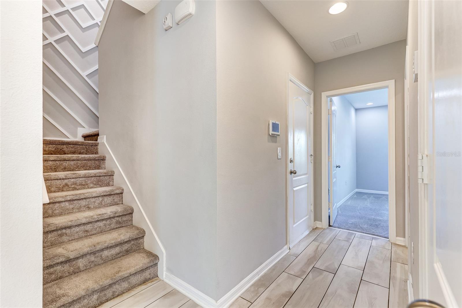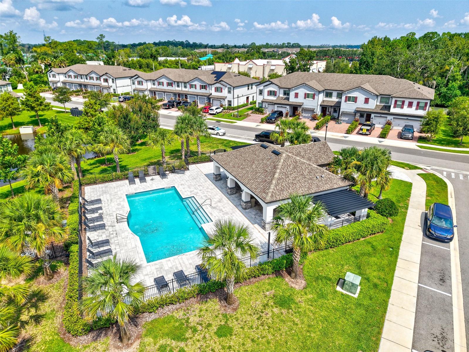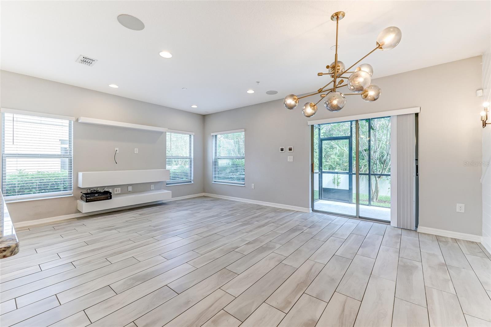Stunning End-Unit Townhome – Former Model with Upgrades Throughout! This beautifully designed 1,745 sq. ft. end-unit townhome (former model home) offers 4 bedrooms, 3 full baths, a 1-car garage, and a 2-car wide brick-paved driveway. Its end-unit placement provides extra privacy, additional outdoor living space, and the feel of a single-family home. Inside, the open-concept floorplan seamlessly connects the kitchen, dining, and great room. Stylish floating shelves around the TV create a clean, modern look, while a feature trim wall and statement light fixtures—including sconces and a chandelier—add sophistication to the dining area, which comfortably seats six. The chef’s kitchen is a true highlight, featuring granite countertops, a center island with sink and seating, 42” linen cabinetry, subway tile backsplash, and a full suite of GE® stainless steel appliances including a gas range. The screened-in patio extends your living space, perfect for relaxing or entertaining year-round. The first floor also offers a versatile bedroom and full bath, along with wood-look tile flooring for easy care and style. Upstairs, a spacious loft, laundry room, and linen closet provide convenience, while two secondary bedrooms and a hall bath sit toward the back. At the front, the owner’s suite impresses with a massive walk-in closet and a spa-like en-suite featuring dual sinks, a large walk-in shower with subway tile, and plenty of storage. This rare opportunity to own a model-quality home with thoughtful upgrades in a prime location won’t last long. Schedule your private showing today!