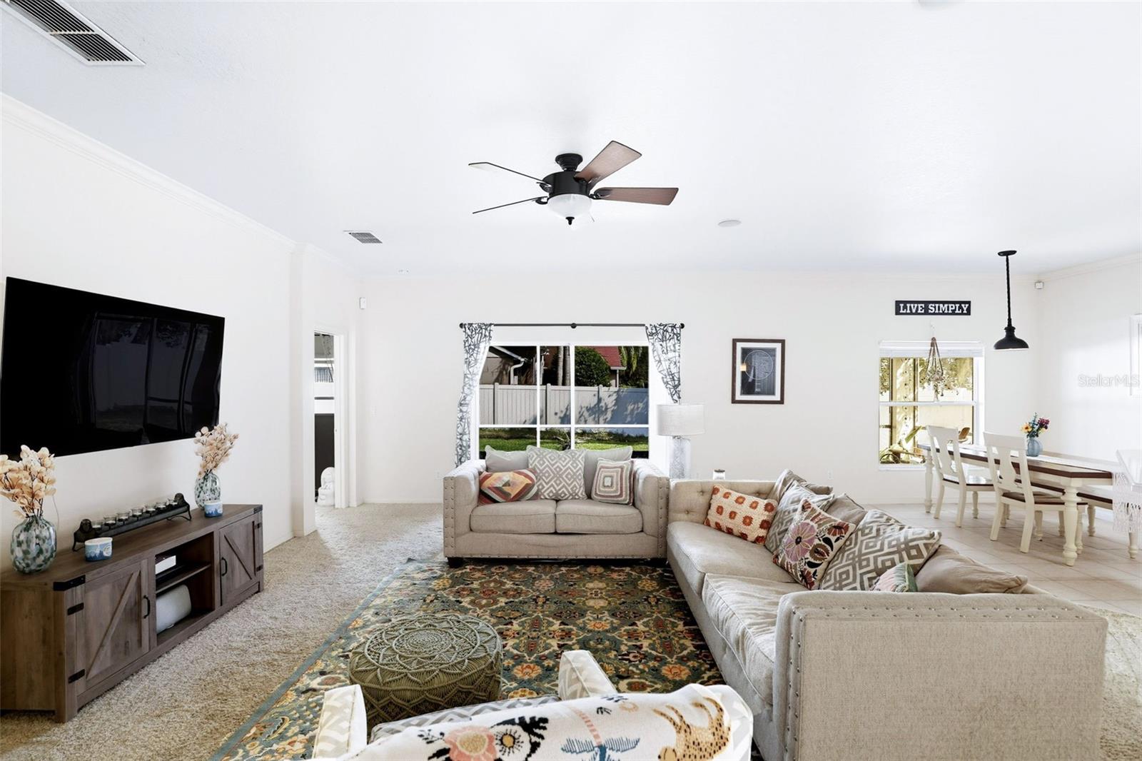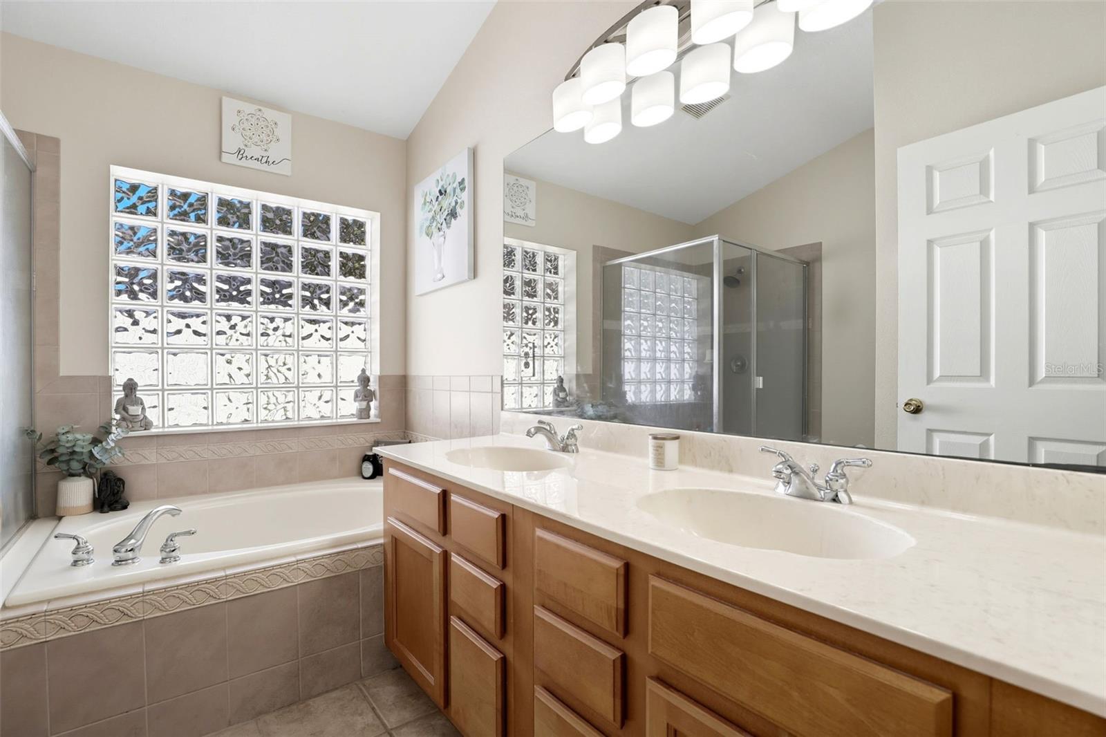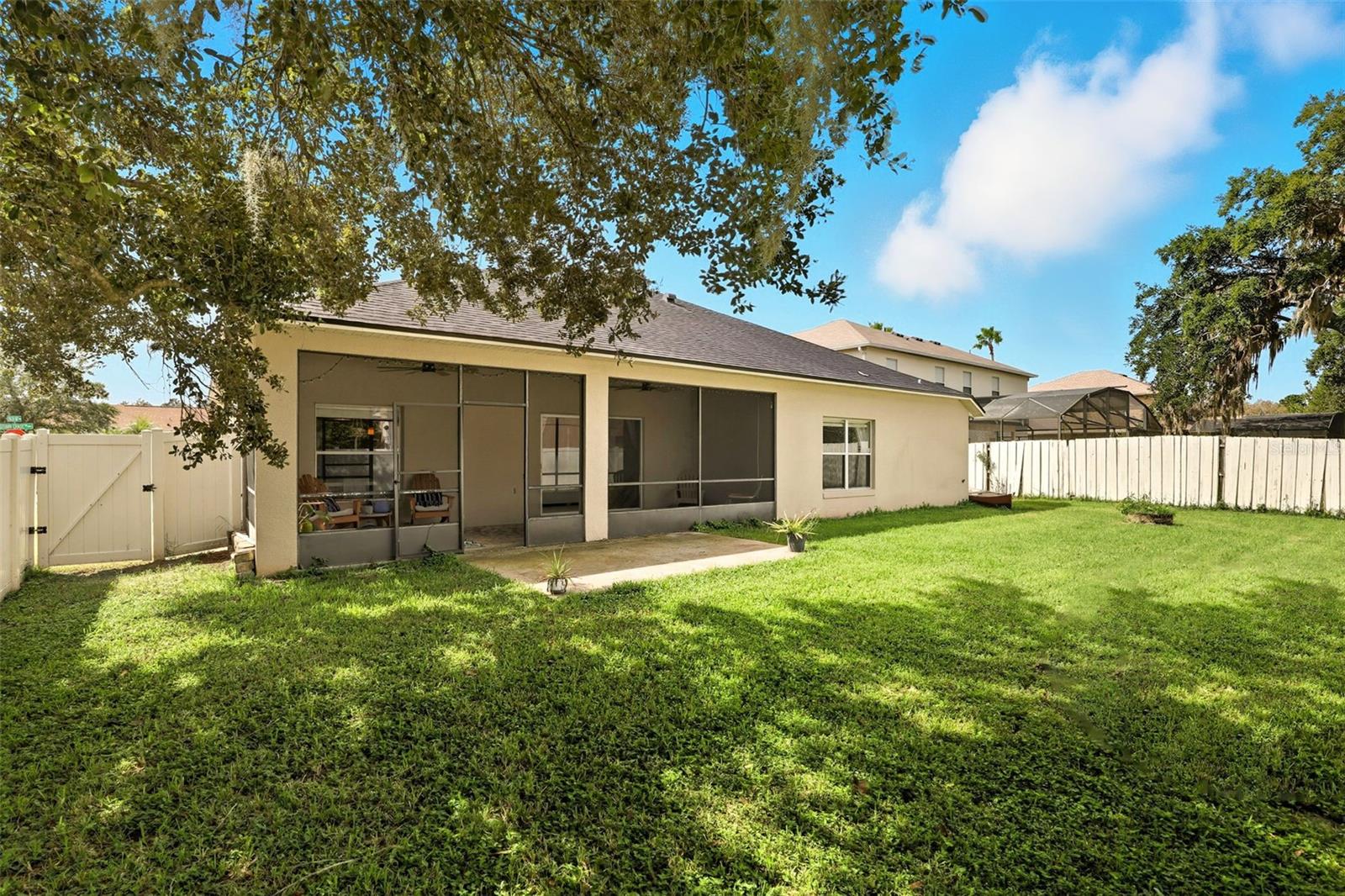 Discover this beautifully cared-for home nestled on a spacious corner lot, surrounded by mature landscaping and secured by a full white vinyl privacy fence. A grand double-door entry welcomes you into a bright formal living room, introducing the home’s airy, open layout. At the center of it all is the expansive eat-in kitchen, featuring a brand-new stainless steel appliance suite—including a 5-door refrigerator/freezer, double oven, microwave, and dishwasher—perfect for everyday living and entertaining. The primary ensuite offers a serene escape with dual vanities, a walk-in shower, and a luxurious soaking tub accented by stylish glass-block windows. Step outside to the oversized, screened-in patio stretching the entire width of the home—an ideal spot for gatherings or simply relaxing while overlooking the fun, fully fenced backyard. With a new water heater (2025) and a 2017 roof, this home delivers both comfort and peace of mind. Truly a must-see!