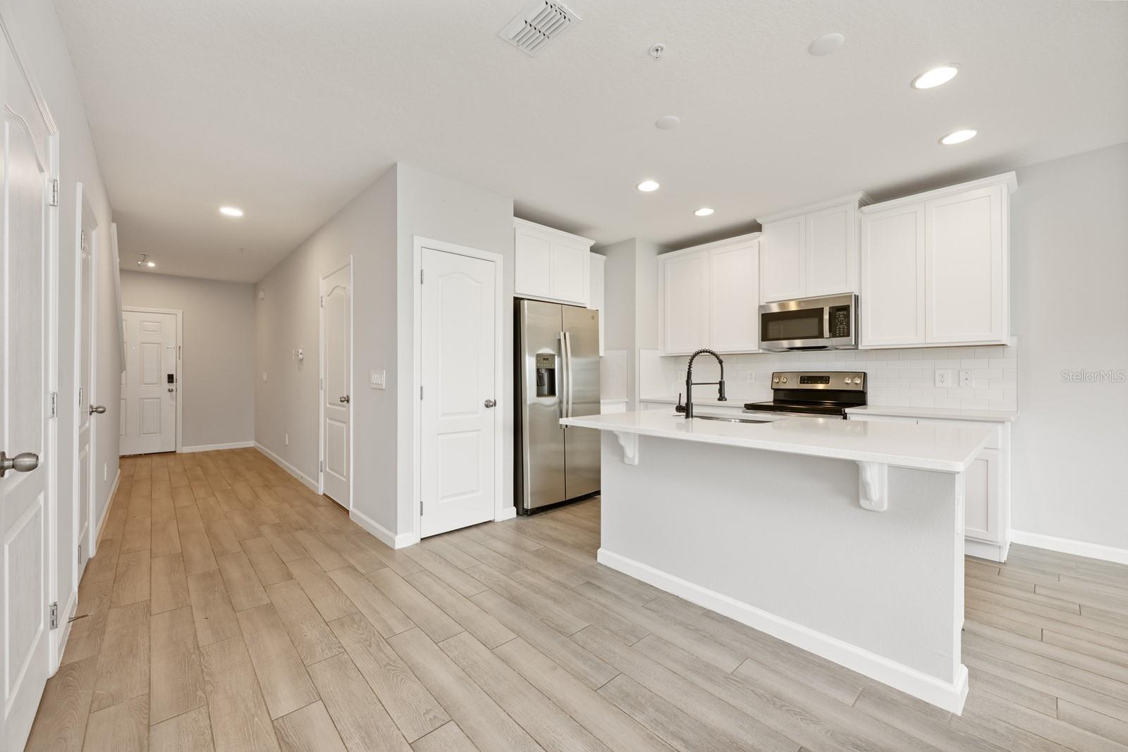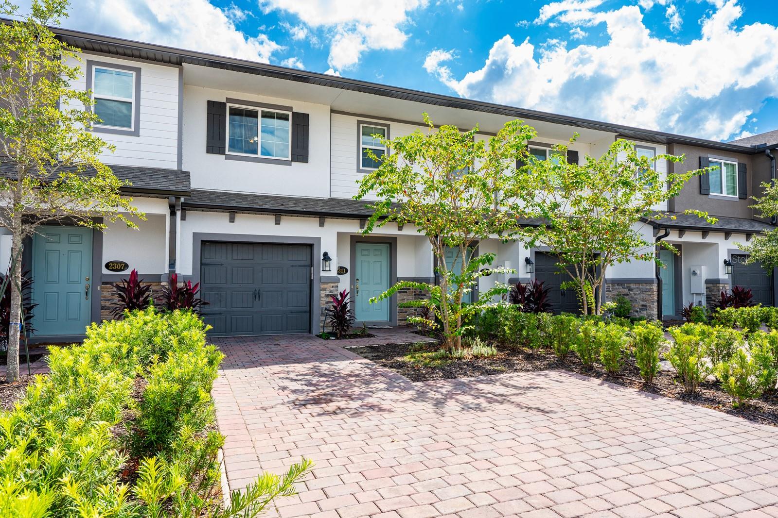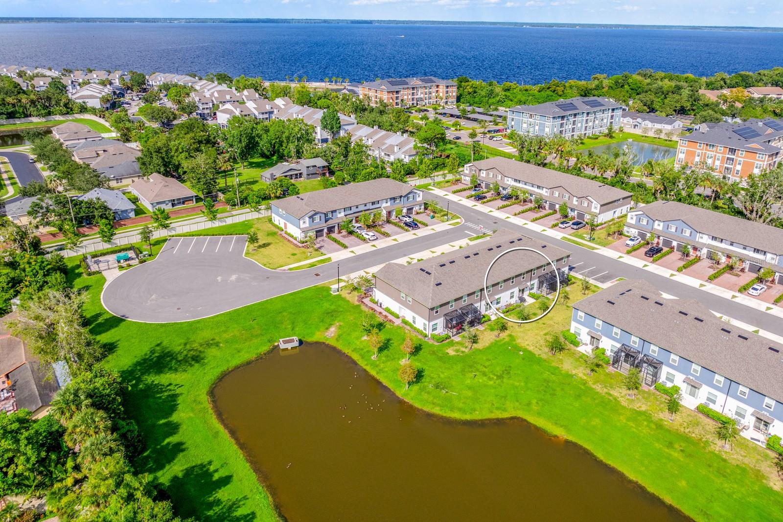 One or more photo(s) has been virtually staged. Short Sale. Ask about a lender provided RATE BUY-DOWN CREDIT on this home! Seller may consider buyer concessions if made in an offer **WELCOME HOME** Built in 2023, this MOVE-IN READY townhome in the desirable Towns at Lake Monroe Commons offers modern comfort, style and convenience in one of Sanford’s newer communities! Meticulously maintained and in excellent condition, this home features thoughtful UPGRADES and a fresh, on-trend design that create instant appeal. From the moment you arrive you will appreciate the attractive CURB APPEAL, enhanced by manicured landscaping, a paver driveway, even the garage was considered and has an epoxy floor! Stepping inside, you will find WOOD LOOK TILE FLOORING throughout your main living areas, paired with plush carpet in the bedrooms for a warm and inviting feel. The OPEN CONCEPT floor plan is filled with natural light thanks to sliding glass doors that frame a relaxing WATER VIEW and open to a patio. The spacious living and dining areas flow seamlessly into a stylish kitchen – complete with STAINLESS STEEL APPLIANCES, a subway tile backsplash, pantry storage, ISLAND with bar seating, upgraded faucet, and recessed lighting. Upstairs, the thoughtful layout places the PRIMARY SUITE at the front of the home for added privacy. Your retreat features a generous WALK-IN CLOSET and well appointed en-suite bath with a dual sink vanity and a walk-in shower, updated in 2024 with new shower glass. At the back of the home the secondary bedrooms share a full guest bath, creating a smart separation of space. A convenient second floor laundry keeps chores simple, while a half bath on the main level makes hosting guests effortless. Amenities include a sparkling COMMUNITY POOL just down the street, and the location can’t be beat. Minutes from the Sanford RiverWalk, Fort Mellon Park, Lake Monroe, Downtown Sanford, and the Central Florida Zoo & Botanical Gardens, you will have endless options for dining, shopping, and recreation. Easy access to SR 417 and I-4 also makes commuting a breeze. This is your opportunity to own a like-new townhome with updates already in place, a water view to enjoy daily, and a LOW MAINTENANCE lifestyle in one of Sanford’s most convenient areas. Every detail has been designed for both comfort and style – clean, bright, and completely move-in ready – call today to schedule a tour!