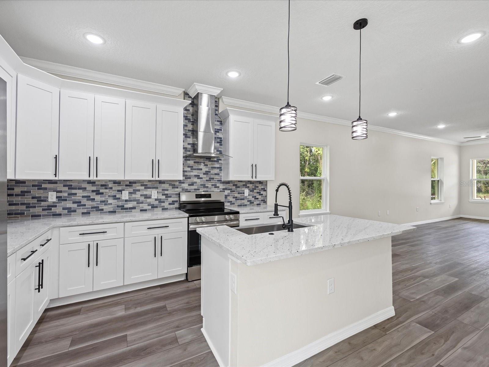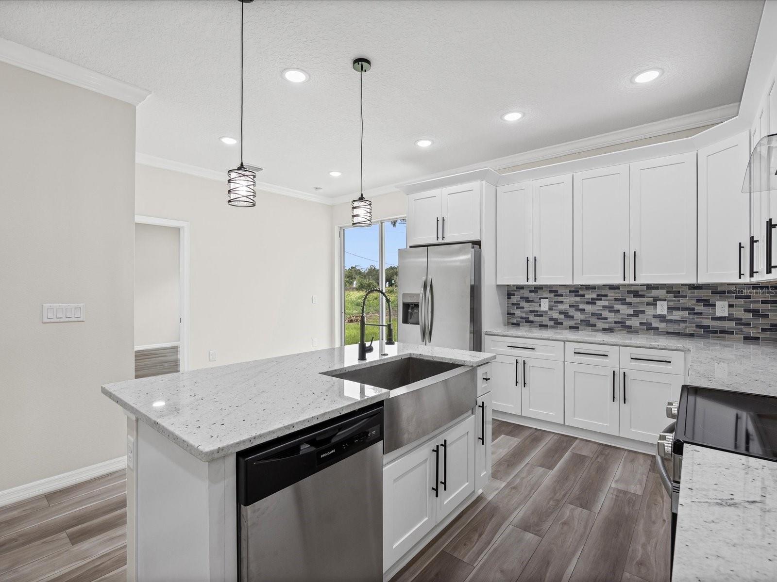 Welcome to 2442 Rightway St, a brand-new construction, two-story residence that pairs clean modern design with thoughtful functionality on a 0.17-acre homesite. The open-concept main level is bright and airy, creating effortless flow for daily living and entertaining. At the heart of the home is a gourmet kitchen with a generous center island—ideal for prep, serving, and casual seating—framed by sleek cabinetry and ample counter space so everything has its place. The dining area opens to the living room for easy conversation, movie nights, or game-day hosting, while installed rain gutters and low-maintenance exterior finishes give everyday practicality a stylish edge. The floor plan is intentionally convenient with the primary suite on the first floor, offering privacy and easy access. You’ll love the walk-in closet and the spa-inspired en-suite bath featuring a double-sink vanity and a step-in rainfall shower—a daily luxury that elevates your morning routine. A designated laundry room keeps chores neatly tucked away, and a nearby powder bath serves guests with ease. The staircase is discreetly tucked off the main living areaand leads to the second floor, where two comfortable secondary bedrooms share a well-appointed full bath; one bedroom includes a walk-in closet and both enjoy proximity to a flex/bonus room—perfect for a home office, media lounge, playroom, fitness space, or occasional guest room. In total: 3 bedrooms plus a flex room, 2.5 baths, and 1,775 sq ft of well-used space, plus an attached two-car garage for parking, storage, and hobby gear. Beyond the walls, the backyard offers room to garden, play, or plan your future patio—an inviting canvas to create your ideal outdoor living. And the location shines: you’re just minutes from Historic Downtown Sanford, celebrated for its riverfront RiverWalk, marina, local shops and boutiques, craft breweries, coffee spots, and a diverse dining scene with year-round festivals and markets. Commuting and travel are straightforward, too—you’re about 5 minutes to Orlando Sanford International Airport (SFB), roughly 30–35 minutes to Downtown Orlando and 35–40 minutes to Orlando International Airport (MCO), and approximately 40–45 minutes to Atlantic beaches like Daytona and New Smyrna (timing varies with traffic and route). Major corridors, parks, and everyday conveniences are all close at hand, making this a compelling blend of new-construction comfort and Central Florida lifestyle.