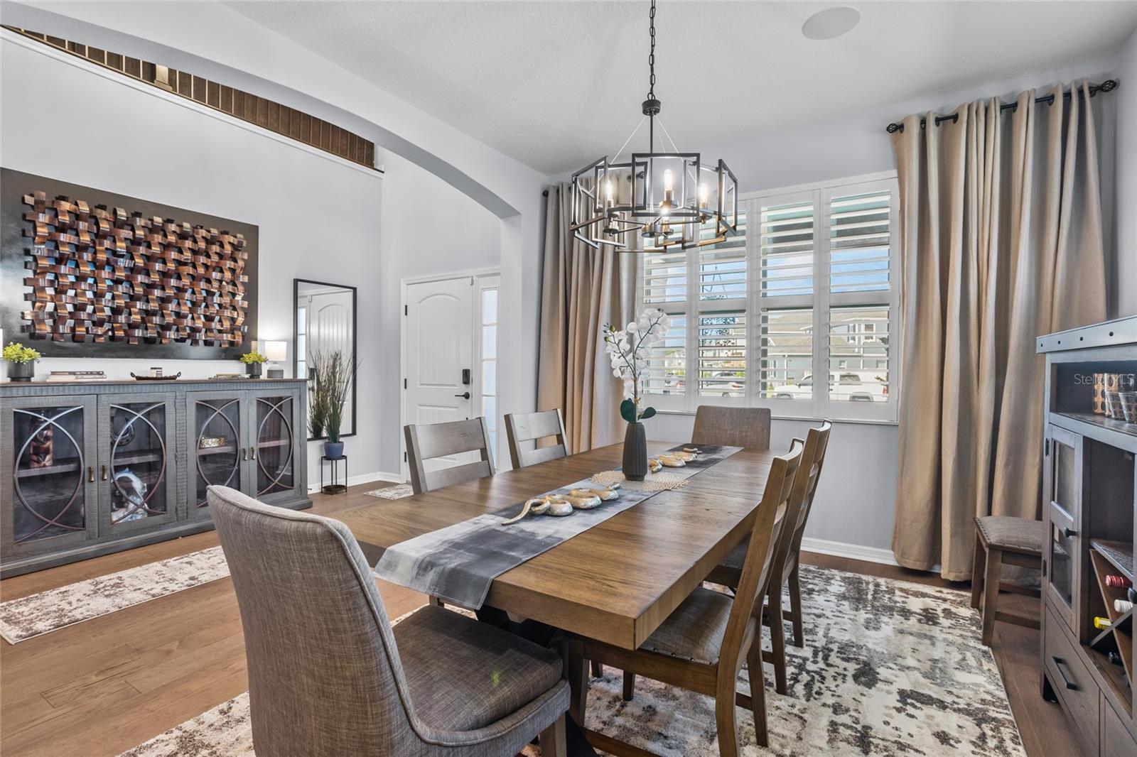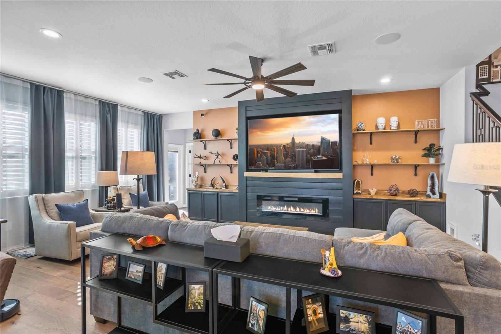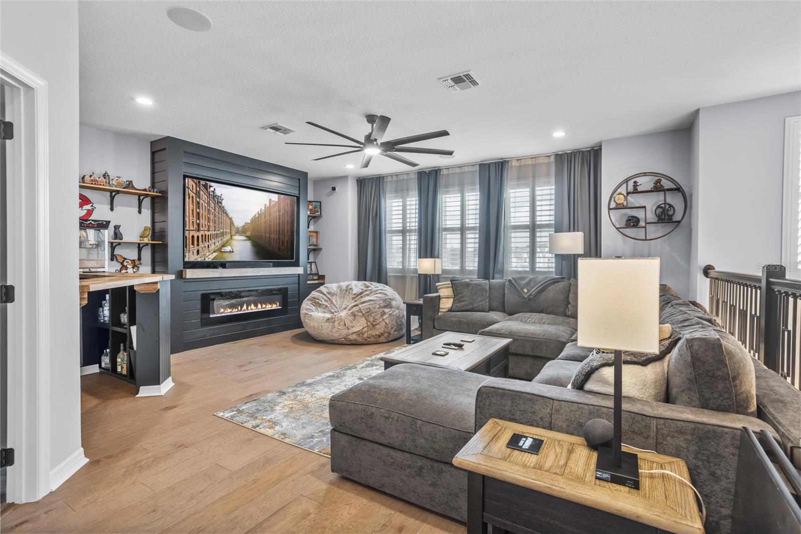 Welcome to 5615 Green Arrow Place in Sanford a stunning 5 bedroom, 4 full bath home loaded with upgrades and thoughtful details throughout! Step inside to discover a one-of-a-kind chef’s kitchen featuring upgraded quartz countertops with beveled edges, a double oven, premium range hood with spice rack and utensil hangers, real wood 42” cabinets with soft-close drawers, specialty spice and silverware drawers, custom pull-out pot and pan racks, and a butler’s pantry with microwave and mini fridge. The elegance continues with premium REAL Engineered Wood flooring, upgraded LED smart lighting, plantation shutters, electric roller blinds, and a built-in ceiling sound system in multiple rooms. Entertain with ease in the living room and loft, each designed with custom built-ins, fireplaces, and included 86” LG TVs. The luxurious owner’s suite offers quartz countertops, dual vanity sinks, dual shower heads, and an upgraded electric toilet with heated bidet, motion sense, auto flush, and heated dryer. A private guest suite with full bath and tub provides comfort and convenience for visitors. Throughout the home, you’ll find thoughtful enhancements such as premium wood and iron staircase banisters, custom laundry with premium tile, cabinetry and shelving, built-in fridge enclosure with upgraded LG refrigerator that makes cocktail ice, and pre-installed permanent holiday lights approved by the HOA. Even the garage and exterior were upgraded with care, offering an EV outlet, epoxy garage flooring, hanging shelving in the third bay, and an extended driveway. The premium corner lot provides a rare side street with no rear neighbors, just peaceful bamboo views. From smart upgrades to elegant finishes, this home truly has it all, blending luxury, comfort, and functionality in every detail.
