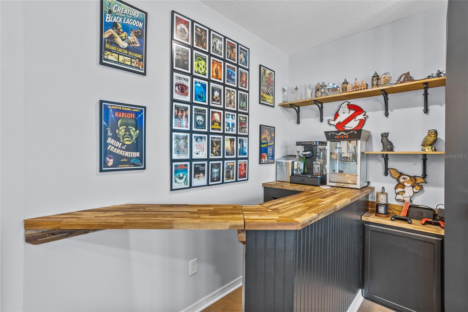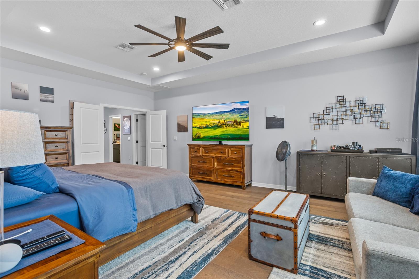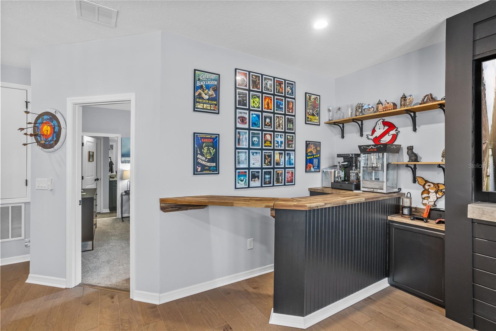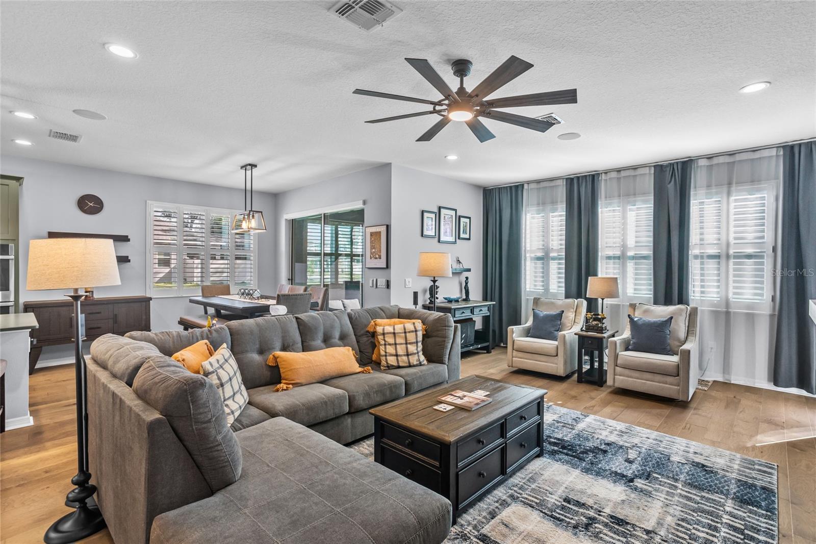 Welcome to 5615 Green Arrow Place in Sanford a stunning 5 bedroom, 4 full bath home loaded with upgrades and thoughtful details throughout! Step inside to discover a one-of-a-kind chef’s kitchen featuring upgraded quartz countertops with beveled edges, a double oven, premium range hood with spice rack and utensil hangers, real wood 42” cabinets with soft-close drawers, specialty spice and silverware drawers, custom pull-out pot and pan racks, and a butler’s pantry with microwave and mini fridge. The elegance continues with premium REAL Engineered Wood flooring, upgraded LED smart lighting, plantation shutters, electric roller blinds, and a built-in ceiling sound system in multiple rooms. Entertain with ease in the living room and loft, each designed with custom built-ins, fireplaces, and included 86” LG TVs. The luxurious owner’s suite offers quartz countertops, dual vanity sinks, dual shower heads, and an upgraded electric toilet with heated bidet, motion sense, auto flush, and heated dryer. A private guest suite with full bath and tub provides comfort and convenience for visitors. Throughout the home, you’ll find thoughtful enhancements such as premium wood and iron staircase banisters, custom laundry with premium tile, cabinetry and shelving, built-in fridge enclosure with upgraded LG refrigerator that makes cocktail ice, and pre-installed permanent holiday lights approved by the HOA. Even the garage and exterior were upgraded with care, offering an EV outlet, epoxy garage flooring, hanging shelving in the third bay, and an extended driveway. The premium corner lot provides a rare side street with no rear neighbors, just peaceful bamboo views. From smart upgrades to elegant finishes, this home truly has it all, blending luxury, comfort, and functionality in every detail.