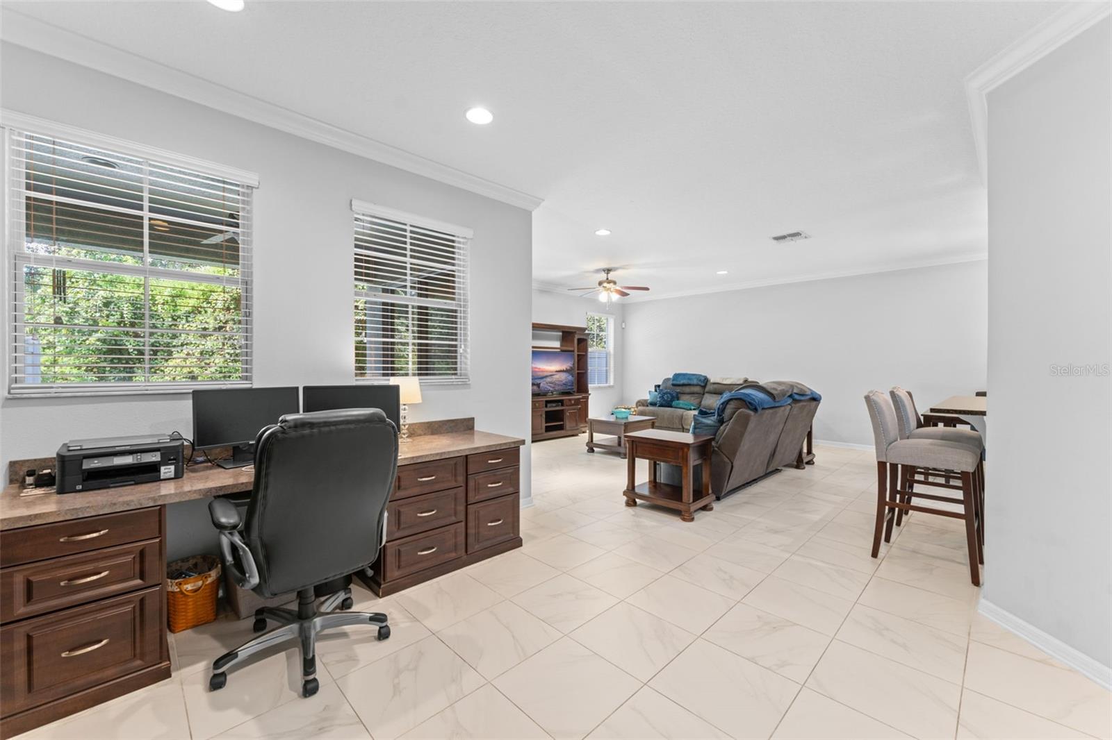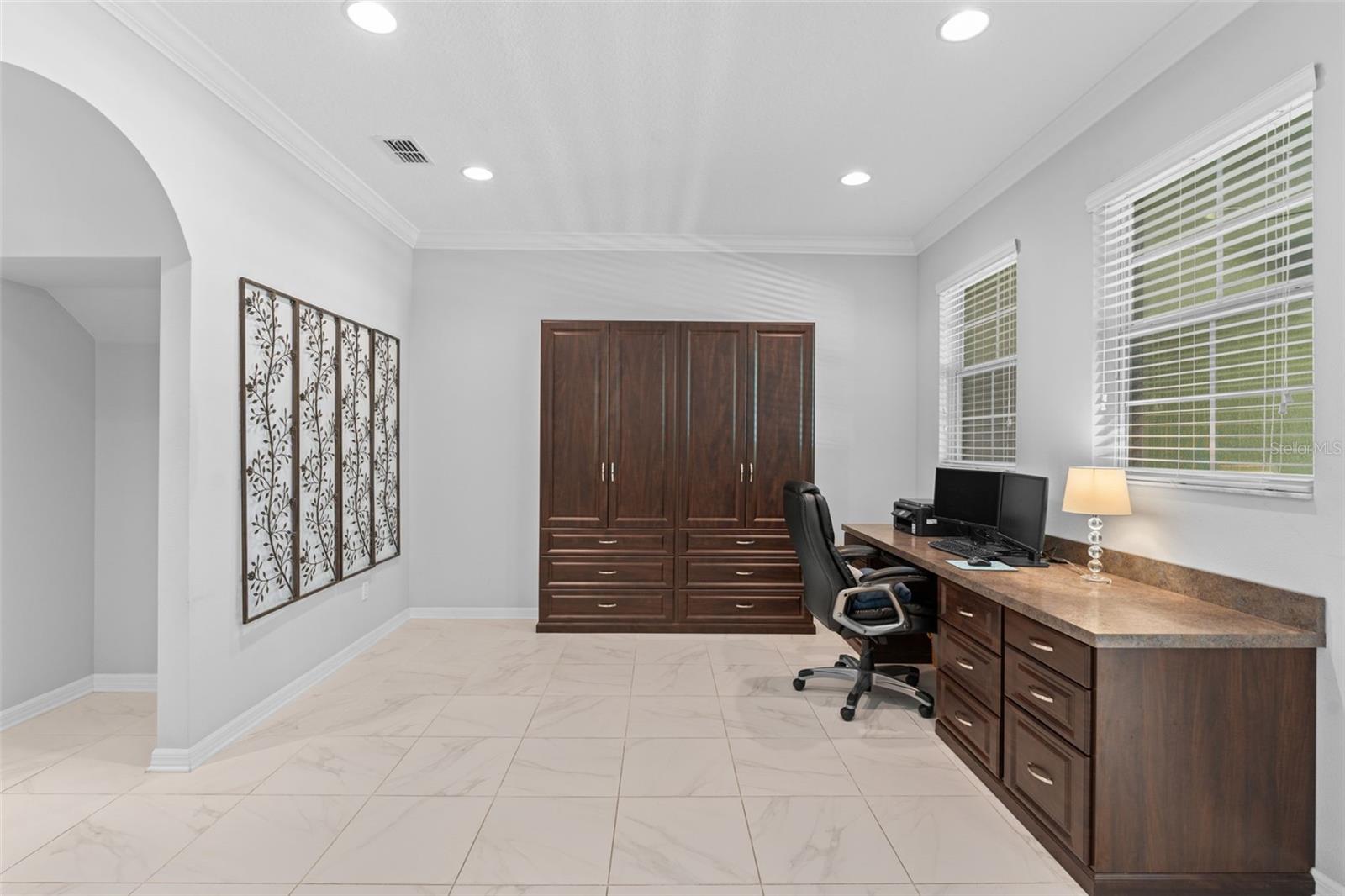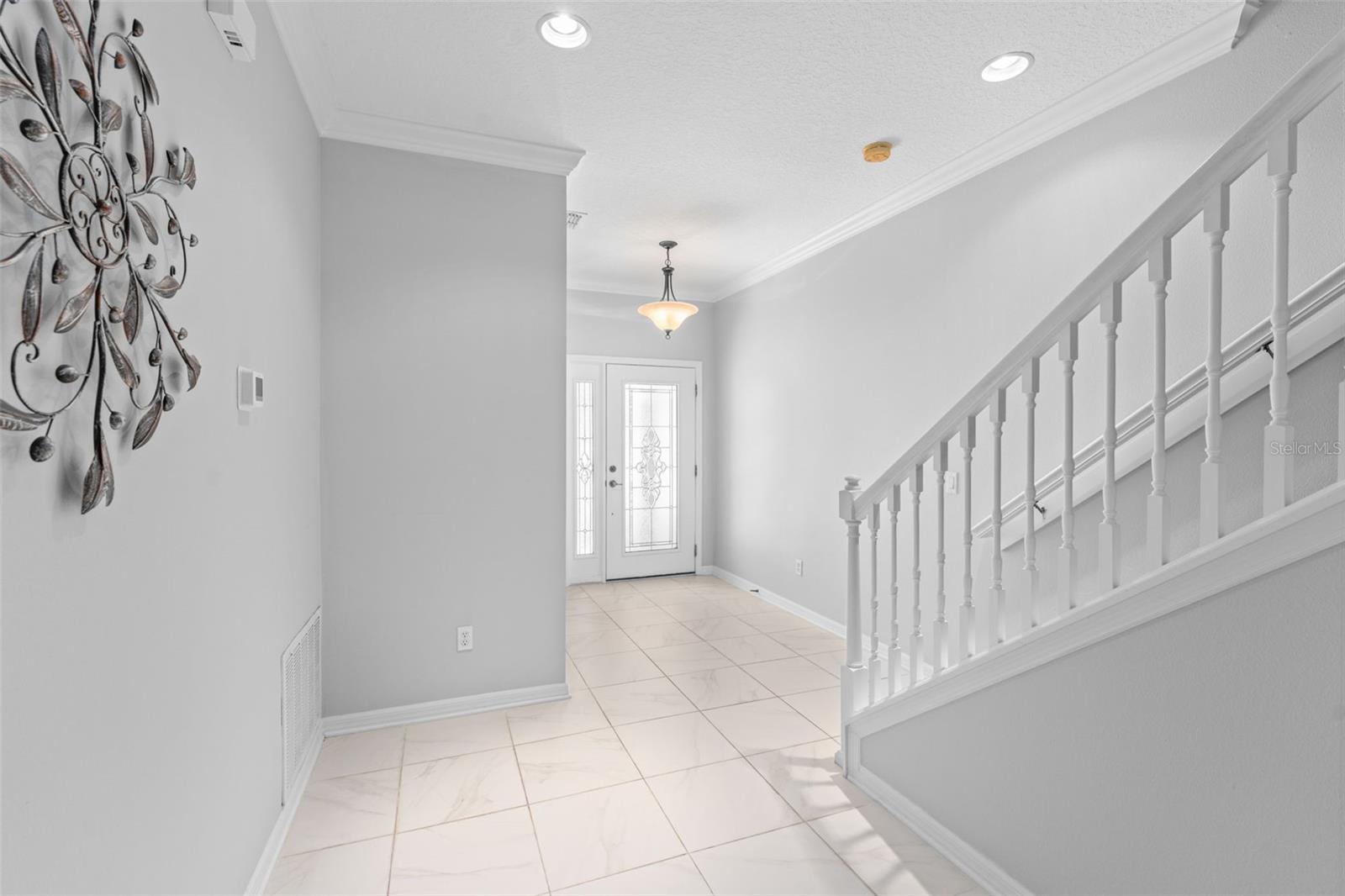 **This house comes with a REDUCED RATE through the seller's preferred lender. This is a lender-paid rate buydown that reduces the buyer's interest rate and monthly payment.** Tucked within a peaceful gated community, 632 Venice Place offers a welcoming ambiance and well-designed spaces perfect for everyday living. This move-in ready residence provides a perfect balance of comfort, function, and modern style, enhanced by a series of quality improvements completed by the current owners. The interior features durable tile flooring on the main level and elegant wood laminate on the stairs and majority of the upper floor, creating a cohesive, low-maintenance design throughout. Freshly painted walls and a refinished stair rail add a clean, modern touch, while a recent exterior repaint by the HOA enhances curb appeal. The kitchen and laundry areas are thoughtfully equipped for convenience, offering a full suite of included appliances. A custom-built office setup with matching desk and cabinetry provides an ideal workspace, and the laundry room includes a utility tub and built-in storage cabinets for added functionality. Additional upgrades include a wireless security system with door and window sensors, an interior motion detector, and a monitored fire alarm for peace of mind. The entire HVAC system (compressor and air handler) was replaced in 2019 and remains under a 10-year parts and labor warranty, ensuring reliable comfort and efficiency. Combining practical upgrades with stylish finishes, this home is ready for its next owners to move in and enjoy a comfortable, well-cared-for space in a convenient Sanford location.