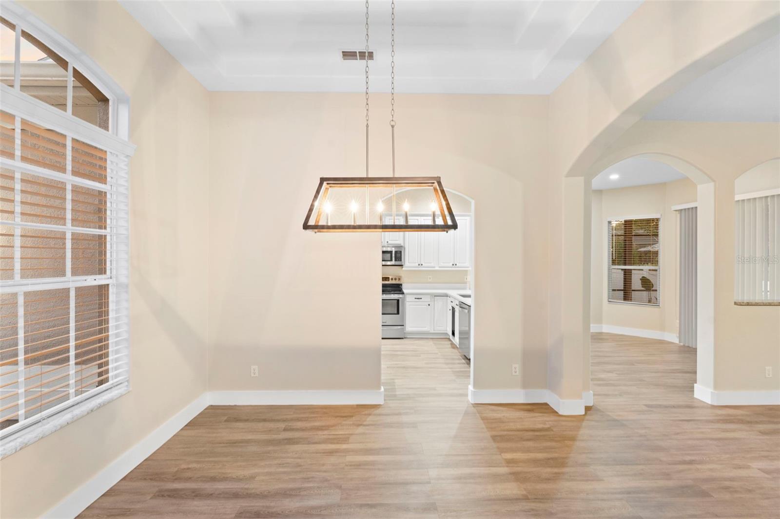 One or more photo(s) has been virtually staged. Elegant. Private. Perfectly Appointed. Make a statement from the moment you arrive. The elegant paver walkway and grand covered entry create an impressive first impression that perfectly compliments this luxury home and sets the stage for the refined interior within. Ideally situated with no front neighbors and no rear neighbors, this stunning property offers both privacy and sophistication—complete with a sparkling screened pool and lushly manicured grounds. The paved driveway and side-entry garage add a touch of elegance and convenience, enhancing the home’s curb appeal. Step inside through the grand entrance, where you’re greeted by 11-foot ceilings that expand the sense of space and light. The arched entryways and graceful hallway openings add a touch of timeless elegance, making every detail of this home feel sophisticated and thoughtfully designed. The formal dining room features an elegant tray ceiling, setting the tone for the home’s upscale design. At the heart of the home lies a chef’s kitchen adorned with 42-inch crown-molded cabinets, brand-new countertops (installed in 2025), a new sink, and a new dishwasher. The kitchen also offers a breakfast bar and flows seamlessly into the informal dining area, which boasts sliding glass doors that open to the pool—perfect for casual family meals with a view. Throughout the home, brand-new luxury vinyl plank flooring (updated in 2024) creates a cohesive, modern aesthetic. The expansive living area is filled with natural light from multiple windows, enhancing the home’s warm and inviting ambiance. This home features a versatile bonus room, ideal for a home office or as a fourth bedroom. With three full bathrooms and an additional half bath for guests, convenience and comfort are built in. A dedicated pool bathroom provides easy access from the lanai—perfect for outdoor entertaining. Each bathroom showcases new vanities and brand-new toilets for a fresh, modern look. The primary suite offers a true retreat with elegant tray ceilings, an ensuite bathroom featuring a garden tub, standalone shower, dual vanity sinks with modern LED lighting, and plenty of space to unwind. Additional highlights include a laundry room with a utility sink for added convenience and a smart Nest thermostat, allowing you to control the home’s temperature with ease. Step outside to your private backyard oasis—a beautifully paved lanai with a ceiling fan, ideal for relaxing or entertaining. The backyard overlooks a tranquil conservation area, providing peaceful views and complete privacy. Two sets of sliding glass doors—one from the informal dining room and another from the living room—offer effortless access to the patio and pool area. The landscaping and new sod (2025) have been freshly manicured, completing this picture-perfect property. Located in one of Sanford’s most desirable communities, this home offers proximity to top-rated Seminole County schools, local parks, nature preserves, and crystal-clear springs. You’ll enjoy easy access to I-4, SR-417, and SR-46, placing you just minutes from shopping, dining, and entertainment.