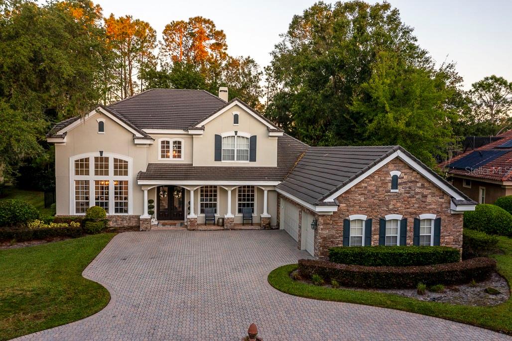 Fully remodeled executive home in the highly coveted community of Lake Forest with 4 bedrooms, 3.5 baths, office, bonus room, pool and 3 car side entry garage. Located on a quiet cul-de-sac lakefront lot. Travertine floors, soaring ceilings and a graceful curved staircase greet you upon entering. The kitchen was reconfigured for better functionality with all new cabinetry, a large center island with second full sink, GE Monogram six burner gas stove, built-in fridge, oven and microwave, walk-in pantry with wood shelves and quartzite counters. The family room renovations include a fireplace with floor to ceiling stone mantle, remote controlled blinds and alcoves with lower cabinets, wooden shelving and quartzite counters. Primary bedroom is downstairs and features a completely renovated bathroom with enormous shower (with multiple shower heads/jets), free standing tub, new vanities and storage cabinets, high end light fixtures and a private water closet with Toto commode. Connected to the bathroom is a very large walk-in closet with built-ins and center island for additional storage. A second door connects the closet to the fully remodeled laundry room. The living room, dining room and office are also located on the first floor. The generous sized office with hardwood floors and French doors could be converted into a fifth bedroom. The second floor consists of three bedrooms, two bathrooms plus a bonus room, all with wood floors. Two of the bedrooms share a remodeled bathroom with separate vanities. Enjoy the expansive lanai year round- heated saltwater pool, paver patio, large covered area, fire pit, and lake view! One AC replaced 2021, other two replaced 2025. Lake Forest offers a 24-hr guard-gated entry with resort style amenities: 10,000 sq ft clubhouse w/ newly remodeled fitness center, Jr. Olympic-sized swimming pool, heated spa, kiddie pool, playground, 55-acre private spring-fed lake, fishing pier, new lighted tennis and pickleball courts & a sports court. The community has been designated as a National Wildlife Habitat. Lake Forest is zoned for Seminole County schools and is close to beaches, attractions and all that Central Florida has to offer! Easy access to I-4, 417 and 429.
