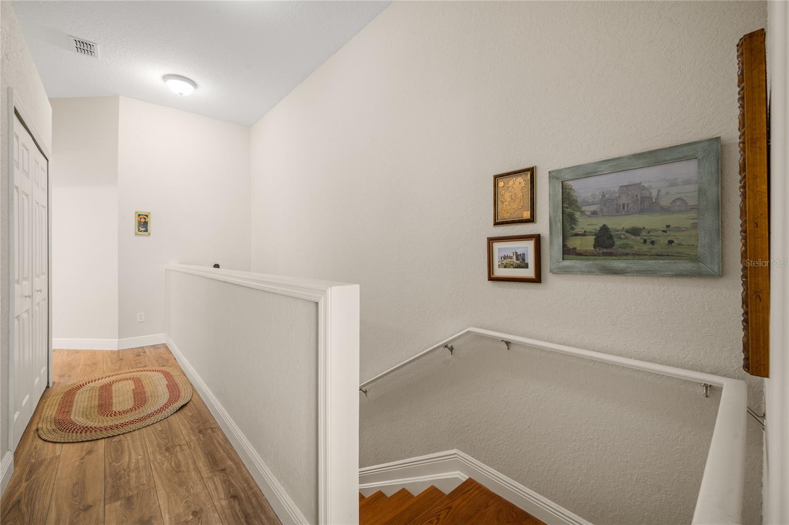 Discover this adorable 3-bedroom, 2.5-bath townhome located in the beautiful, gated community of Regency Oaks in Sanford, FL just minutes from I-4 and SR-417 for easy commuting. As you arrive, you’ll be greeted by lush tropical landscaping and a charming taupe front door that sets the tone for the inviting interior. Inside, an open-concept floor plan filled with natural light offers both comfort and privacy. The eat-in kitchen features raised-panel maple cabinetry with elegant 30” uppers, a sleek stainless steel appliance package, and a serene view of the private, tree-lined backyard. The kitchen opens to a spacious family room, creating a perfect flow for entertaining. Tile flooring throughout the foyer, kitchen, and baths ensures easy maintenance, while neutral tones and high baseboards in the main living areas and bedrooms add warmth and sophistication. Custom lighting fixtures and ceiling fans throughout enhance comfort and energy efficiency. Step through the sliding doors to your screened-in back porch, a peaceful retreat ideal for morning coffee or evening relaxation. A locked storage room provides extra space for your outdoor essentials. Upstairs, you’ll find two expansive master suites, each with a private en-suite bath and generous closet space. The primary suite impresses with laminate wood flooring, a spacious walk-through closet, and a beautifully upgraded bathroom featuring a rain shower fixture and elegant tile work. A convenient upstairs laundry area is perfectly positioned near both bedrooms. Enjoy a low-maintenance lifestyle with the HOA covering exterior maintenance and landscaping. You’ll also love being just a short walk from the resort-style community pool, dog park and pavilion, mailboxes, and overflow parking—all overlooking a scenic pond. Additional highlights include a recently replaced roof and A/C system for peace of mind and a spacious one-car garage with overhead storage racks. This prime location provides quick access to Lake Mary, Orlando, and Daytona Beach, as well as nearby restaurants, shopping, parks, trails, the Central Florida Zoo, Lake Monroe, and the Sanford Riverwalk. This move-in ready townhome perfectly blends comfort, convenience, and style in one of Sanford’s most desirable communities. Don’t miss your chance to call this beautiful townhome your own. Please schedule your private showing today!