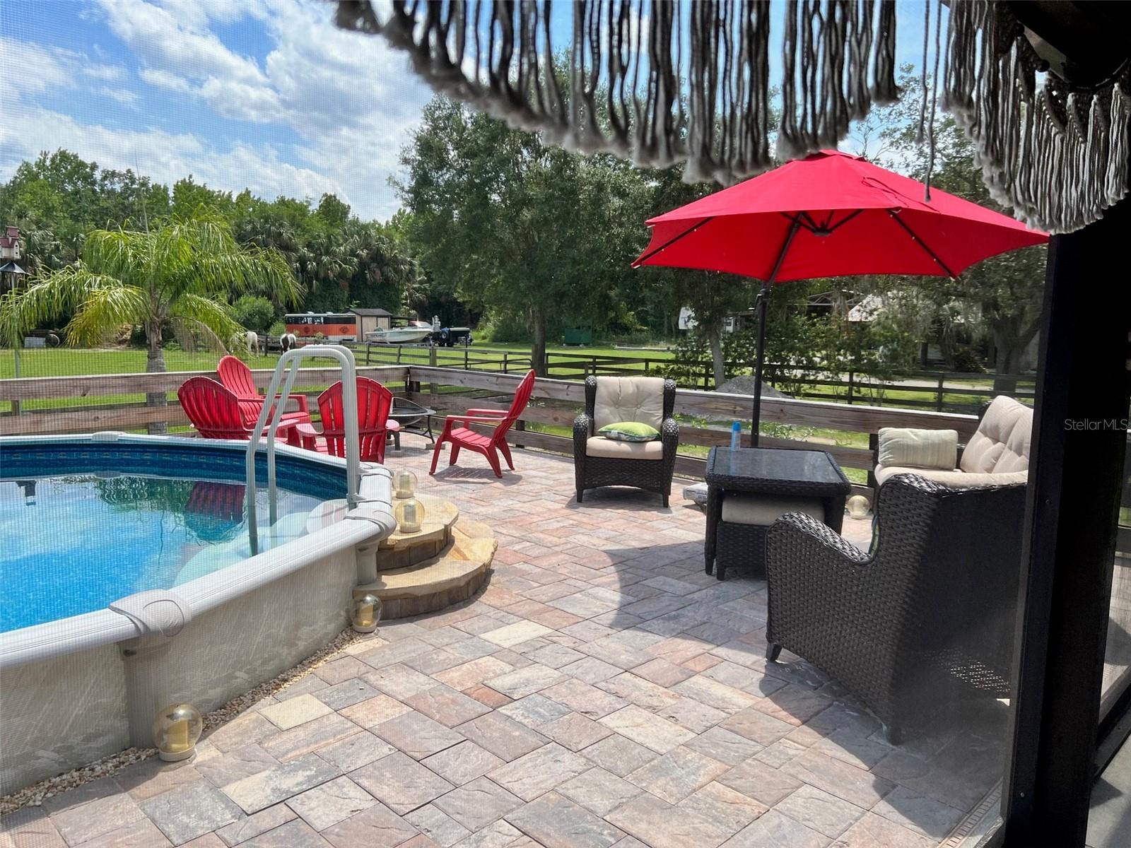 Equestrian Dream Property in East Sanford Near Lake Jesup! Set on 2.5 fully fenced and cross-fenced acres, this exceptional East Sanford property is perfectly designed for horse lovers seeking space, functionality, and direct access to miles of riding trails. The land features front and rear pastures, two paddocks, and a center-aisle horse barn currently configured with two stalls and easily expandable to four. A solar-powered fan system helps keep horses comfortable year-round. Just a short ride away, enjoy free access to the Marl Bed Flats Tract, part of the expansive 1,279-acre Lake Jesup Conservation Area, offering endless opportunities for trail riding and outdoor enjoyment. The 1,488 sq. ft. manufactured home offers a practical split-bedroom layout with 2 bedrooms and 2 baths, ideal for owners and guests. Inside, the open living space features a wood-burning fireplace, new carpet in the bedrooms, and durable wood-look vinyl flooring in the main living areas. The large kitchen provides a breakfast bar, generous cabinet and counter space, and a Whirlpool Polara refrigerated range—perfect for everyday living after a day at work! Expansive front and rear screened porches, including a 46’ x 12’ rear porch, create wonderful spaces to relax while overlooking the property. This property is well-equipped for equestrian operations and storage with a 2.5-car oversized garage offering room for vehicles, tack, tools, and a workshop. A 30’ x 40’ air-conditioned and insulated metal building with a 12-foot overhead door is ideal for trailers, equipment, feed storage, or a dedicated work space. Additional outdoor highlights include a sunken above-ground saltwater pool with paver deck and a beautiful palm-lined driveway that welcomes you home. Combining ride-out access, functional equestrian facilities, and peaceful country living, this property is a rare opportunity for horse enthusiasts who want room to roam while remaining close to town and nature. Call today to schedule your private showing!