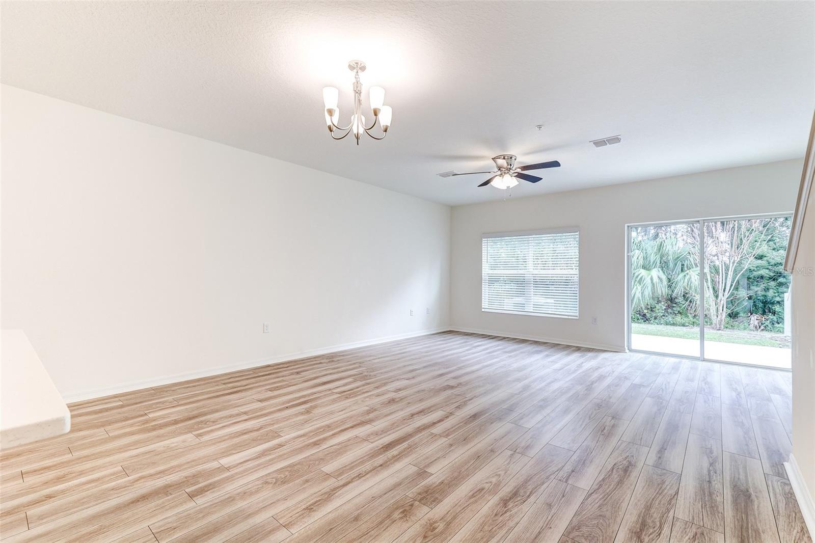 Built in 2023, this 1575 sq ft 3-bedroom, 2.5-bath townhome is located in the highly desirable Landings at Riverbend community in beautiful Sanford, Florida. The home is filled with natural light and offers peaceful wooded views from the living room, backyard, and primary bedroom—plus no rear neighbors for added privacy. The open-concept main level features a modern kitchen with granite countertops, stainless steel appliances, soft-close cabinetry, and a convenient breakfast bar, making it perfect for everyday living and entertaining. All bedrooms are located upstairs and are generously sized with closets and ceiling fans with integrated lighting. The primary suite and secondary bathrooms are finished with granite countertops and chrome fixtures. A separate upstairs laundry room adds everyday convenience. Residents enjoy access to community amenities, including a resort-style swimming pool with cabanas. The HOA covers all exterior maintenance, offering low-stress living. Conveniently located just minutes from Hwy 46, I-4, SR-417, Sanford International Airport, the Central Florida Zoo & Botanical Gardens, historic downtown Sanford, Seminole Towne Center, and Sanford Boat Works & Marina with access to the St. Johns River.