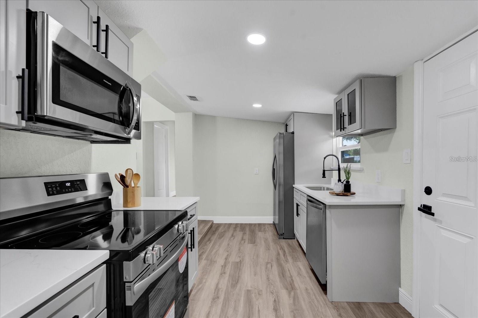 One or more photo(s) has been virtually staged. Welcome to this beautifully updated home, where modern style and everyday comfort come together seamlessly. With a brand-new roof installed in 2024 and a 2024 HVAC system, you’ll have peace of mind and enjoy year-round comfort. The fully remodeled bathroom and open-concept living area create a bright, welcoming, and cozy atmosphere. New flooring throughout adds both sophistication and durability, while the renovated kitchen features brand-new appliances, quartz countertops, and fresh cabinetry. Newer windows and all-new fixtures complete the home’s modern feel. Additional features include a one-car garage, offering easy access and extra convenience. With all major updates already completed, this home is truly turnkey and ready for you to move in and start making memories.