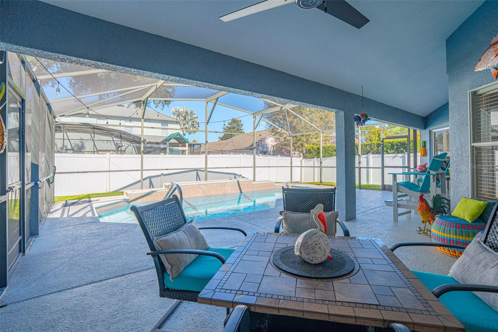 Welcome home to 5714 Autumn Chase Circle—where comfort, space, and Florida living come together beautifully. This updated, one-story home offers 4 bedrooms, 3 full baths, and 2,467 square feet of thoughtfully designed living space, all nestled on a large fenced yard perfect for relaxing or entertaining. Step inside to an open, airy foyer with soaring ceilings. To the right, a formal dining room features elegant laminate flooring and plenty of space for hosting memorable gatherings. To the left, a versatile bonus room—currently used as an office—can easily serve as a formal living room, den, playroom, or game room. The heart of the home opens to a spacious family room, kitchen, and breakfast nook, all designed with entertaining in mind. The oversized kitchen is a dream, complete with wood cabinetry, granite countertops, stainless steel appliances, a large pantry, and expansive counter space with seating for four, plus a sunny breakfast nook. The family room impresses with high ceilings, ceramic tile flooring, and a custom wood accent wall—perfect for showcasing your flat-screen TV. Sliding glass doors lead to your own private Florida oasis: a covered, screened-in inground pool and expansive patio, ideal for outdoor dining, weekend gatherings, or simply unwinding year-round. One of the three full bathrooms provides direct pool access, making entertaining effortless. Three additional generously sized bedrooms, a two-car garage, and a convenient one-level layout complete the package. Located close to major highways and Sanford International Airport, this home truly offers the perfect Florida lifestyle. This home has it all—space, style, and sunshine. Don’t miss your chance to make Autumn Chase your new address.