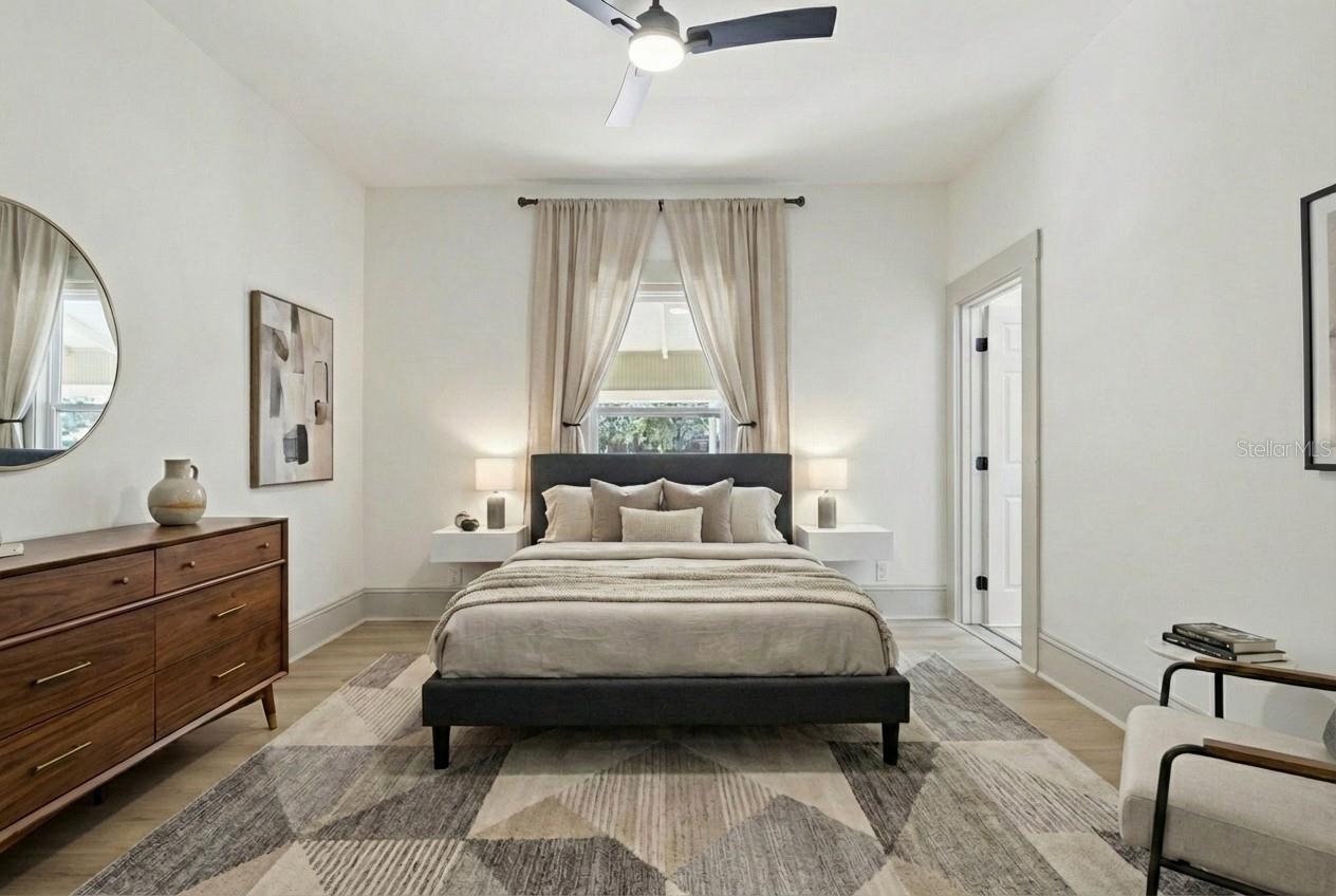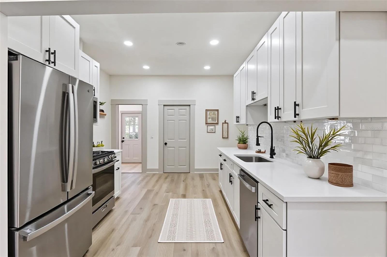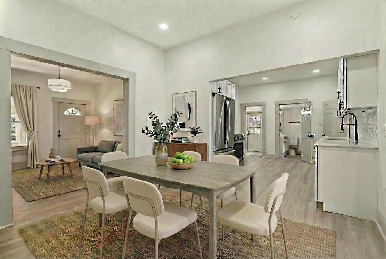 One or more photo(s) has been virtually staged. Step into history, charm, and vibrant downtown living at 314 West 6th Street, Sanford, Florida — a beautifully reimagined 1933 historic home that has been completely renovated while preserving the character that makes downtown Sanford so beloved. This is your opportunity to own a piece of history for those who appreciate historic charm blended with modern luxury, all while enjoying the energy of downtown city life and the peaceful, calming views of pet-friendly George Touhy Park directly across the street. Perfectly positioned on a corner lot in Old Historic Downtown Sanford, this home places you less than a 10-minute walk from the heart of downtown restaurants, breweries, shops, and nightlife, including Sanford’s famous Hollerbach’s German Restaurant. You’re also just minutes away on foot from the Sanford Marina and scenic Lake Monroe, offering the ultimate walkable Florida lifestyle. Relax on the beautiful front porch featuring brand-new wood decking, the perfect spot to enjoy the park views and gentle Florida breezes. The home welcomes you with brand-new front windows, filling the space with abundant natural light and enhancing the bright, airy feel throughout. The property also features: Brand-new roof with ridge vent and new plywood added, Brand-new AC system, Brand-new electric water heater, one-car garage with remote & the convenience of NO HOA!! Inside, the home showcases luxury vinyl flooring throughout, modern recessed lighting, and impressive 10-foot ceilings that enhance the open, airy atmosphere. As you walk in, you’re greeted by a bright family room that flows seamlessly into the dining area, which features a door leading out to the patio—perfect for entertaining or indoor-outdoor living. The chef-inspired kitchen has been fully updated with: Brand-new stainless steel appliances, gas stove, quartz countertops throughout & beautiful modern backsplash. Natural light pours into every room, creating a warm and inviting ambiance throughout the home. This home offers 3 bedrooms, 2 bathrooms, plus a versatile BONUS ROOM that can be used as a sunroom, office, or media room. The primary suite features an energy-efficient ceiling fan with remote, an ensuite bathroom with large walk-in shower with a modern LED touchscreen mirror vanity. Both guest bedrooms feature elegant crown molding, adding a refined finishing touch. Step outside into a beautiful fenced courtyard-style backyard, designed for relaxation and functionality: Paved outdoor space with a shaded pavilion area, ample storage shed a CHICKEN COOP and plenty of room to entertain, garden, or unwind!! This is truly your chance to own a fully renovated historic gem in the heart of vibrant downtown Sanford, where charm, walkability, and modern comfort meet. Your downtown Sanford lifestyle starts here.