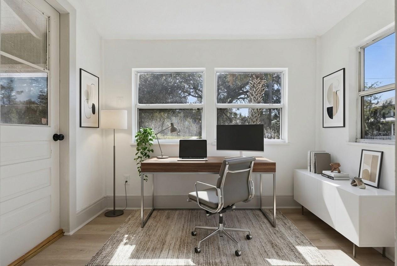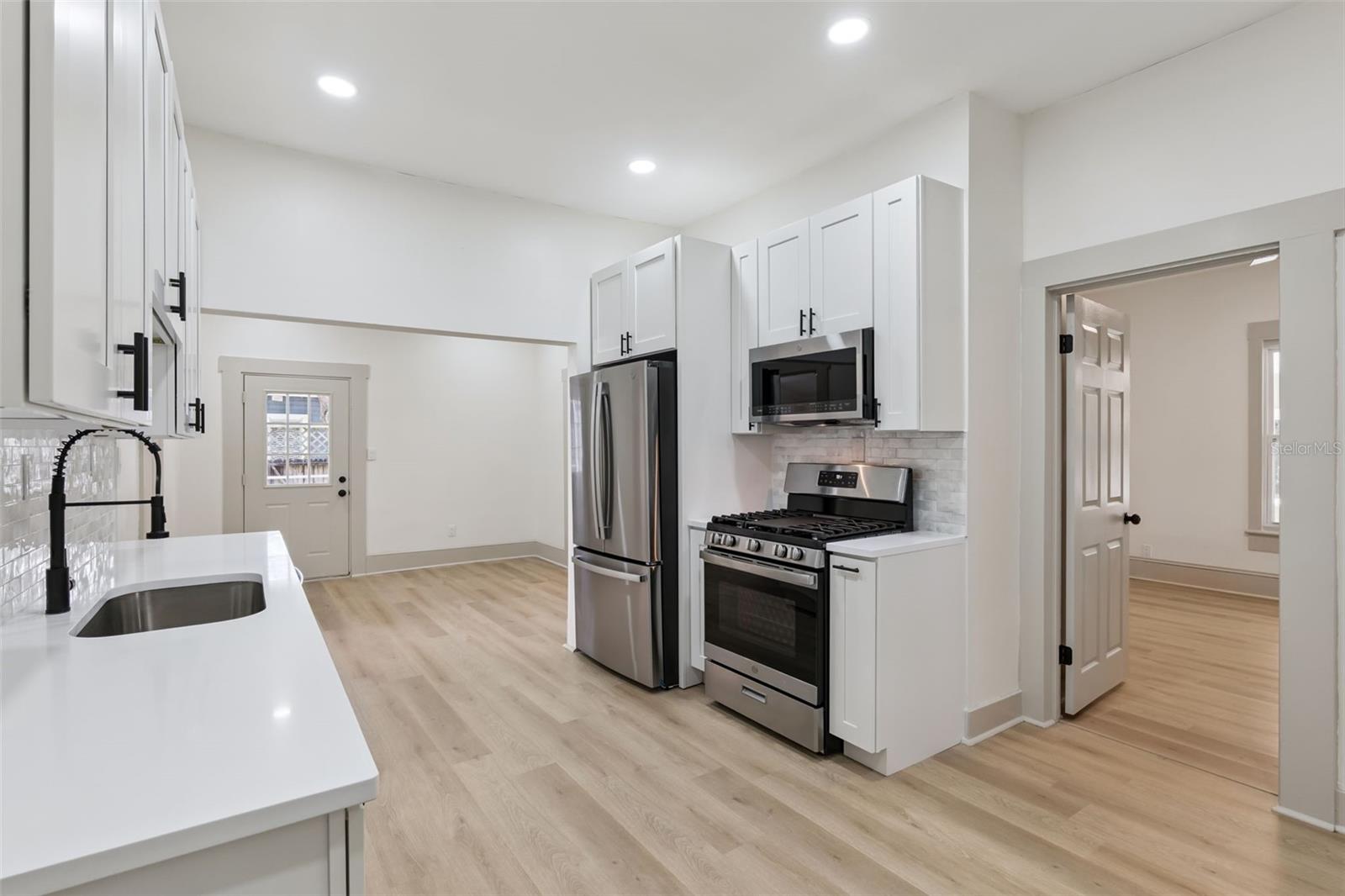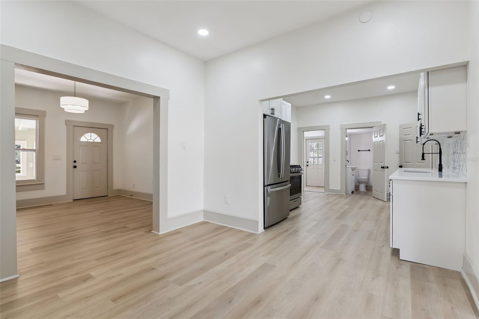 One or more photo(s) has been virtually staged. Step into history, charm, and vibrant downtown living at 314 West 6th Street, Sanford, Florida — a beautifully reimagined 1933 historic home that has been completely renovated while preserving the character that makes downtown Sanford so beloved. This is your opportunity to own a piece of history for those who appreciate historic charm blended with modern luxury, all while enjoying the energy of downtown city life and the peaceful, calming views of pet-friendly George Touhy Park directly across the street. Perfectly positioned on a corner lot in Old Historic Downtown Sanford, this home places you less than a 10-minute walk from the heart of downtown restaurants, breweries, shops, and nightlife, including Sanford’s famous Hollerbach’s German Restaurant. You’re also just minutes away on foot from the Sanford Marina and scenic Lake Monroe, offering the ultimate walkable Florida lifestyle. Relax on the beautiful front porch featuring brand-new wood decking, the perfect spot to enjoy the park views and gentle Florida breezes. The home welcomes you with brand-new front windows, filling the space with abundant natural light and enhancing the bright, airy feel throughout. The property also features: Brand-new roof with ridge vent and new plywood added, Brand-new AC system, Brand-new electric water heater, one-car garage with remote & the convenience of NO HOA!! Inside, the home showcases luxury vinyl flooring throughout, modern recessed lighting, and impressive 10-foot ceilings that enhance the open, airy atmosphere. As you walk in, you’re greeted by a bright family room that flows seamlessly into the dining area, which features a door leading out to the patio—perfect for entertaining or indoor-outdoor living. The chef-inspired kitchen has been fully updated with: Brand-new stainless steel appliances, gas stove, quartz countertops throughout & beautiful modern backsplash. Natural light pours into every room, creating a warm and inviting ambiance throughout the home. This home offers 3 bedrooms, 2 bathrooms, plus a versatile BONUS ROOM that can be used as a sunroom, office, or media room. The primary suite features an energy-efficient ceiling fan with remote, an ensuite bathroom with large walk-in shower with a modern LED touchscreen mirror vanity. Both guest bedrooms feature elegant crown molding, adding a refined finishing touch. Step outside into a beautiful fenced courtyard-style backyard, designed for relaxation and functionality: Paved outdoor space with a shaded pavilion area, ample storage shed a CHICKEN COOP and plenty of room to entertain, garden, or unwind!! This is truly your chance to own a fully renovated historic gem in the heart of vibrant downtown Sanford, where charm, walkability, and modern comfort meet. Your downtown Sanford lifestyle starts here.